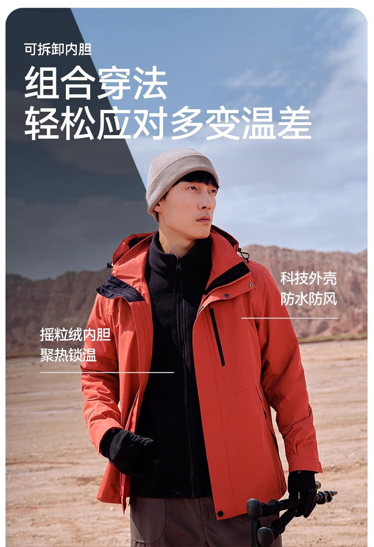 东方骆驼冲锋衣户外防风防水新款春秋款硬壳软壳三合一 丹霞红 4XL