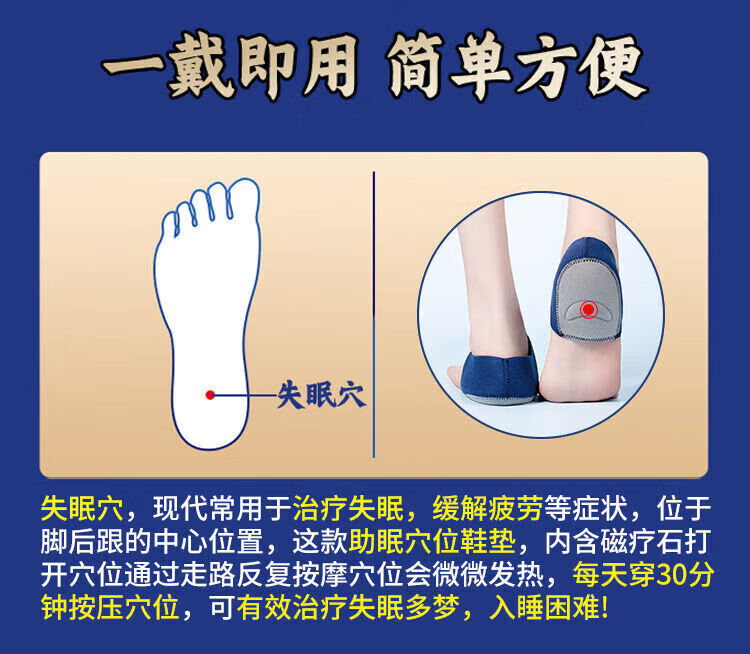 通用失眠穴位鞋垫助睡眠失眠多梦易醒助眠足跟垫绷带 买2送1共3双[建 一双标准款[不]