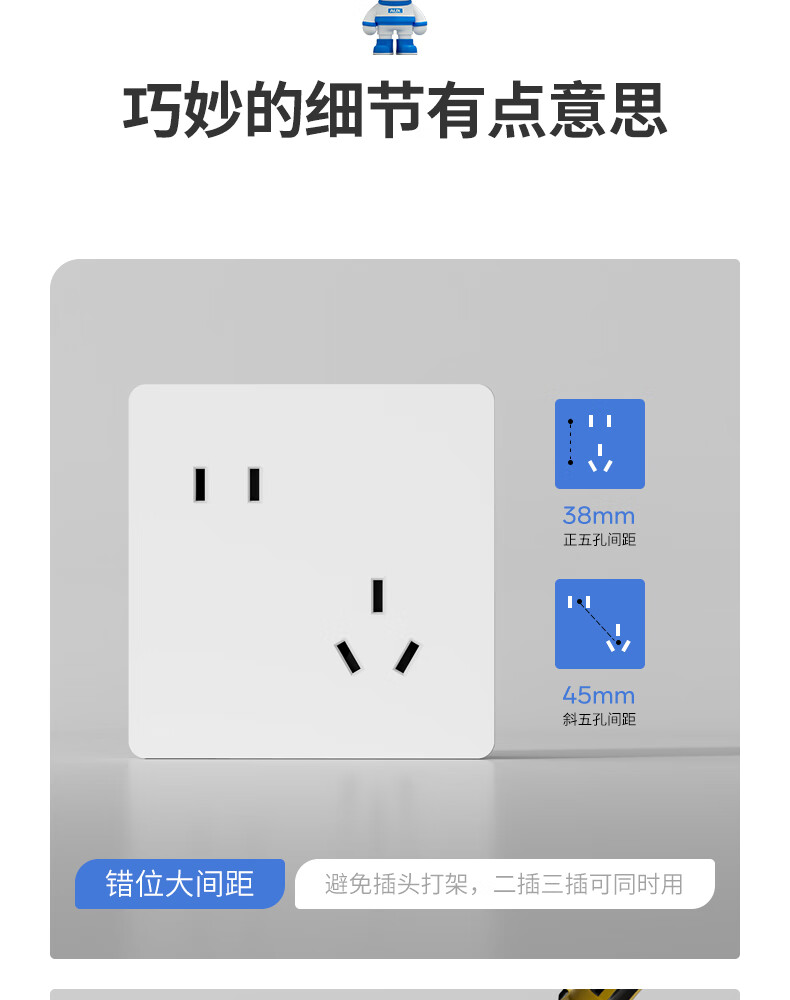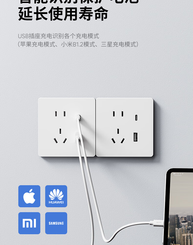 奥克斯开关插座面板10A斜五孔插座纤薄哑光二三插86型家用暗装墙壁5孔 五孔USB+Type-c20W快充-奶油白