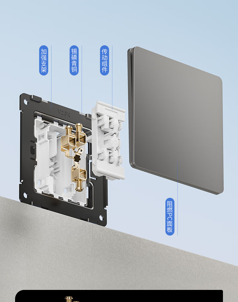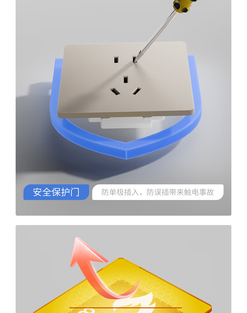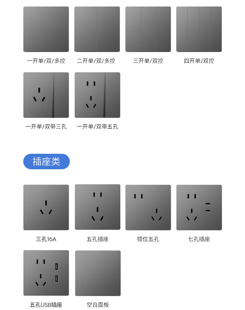 7M国际电工开关插座面板家用86型暗装大板金色USB五孔双控墙壁电源空调插座 五孔USB插座