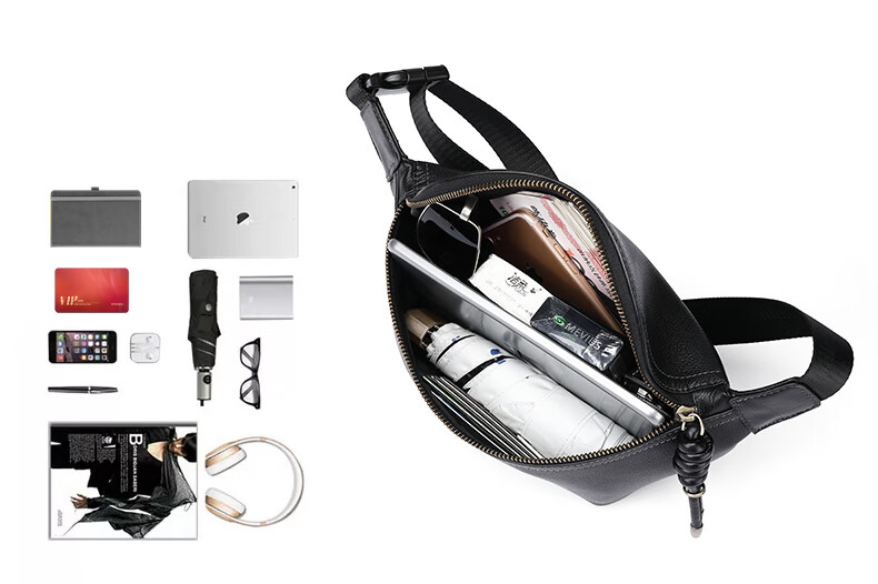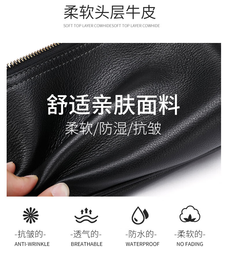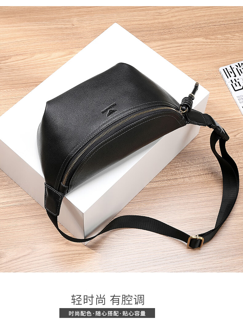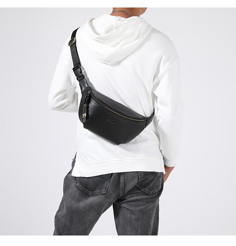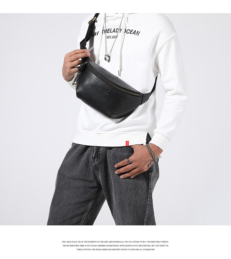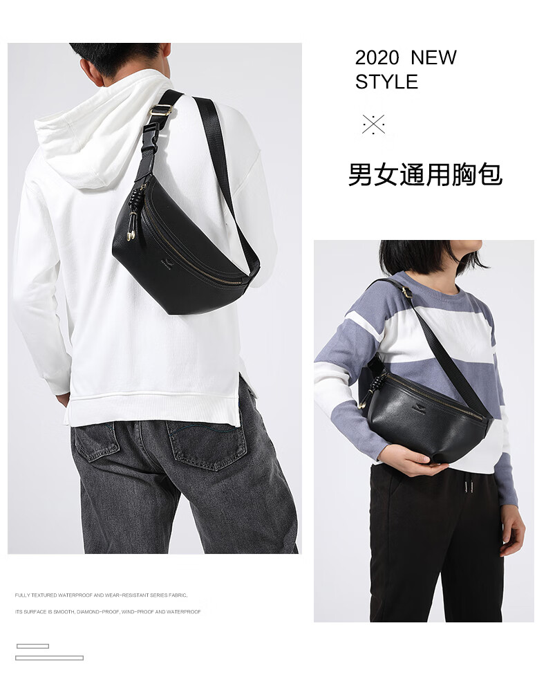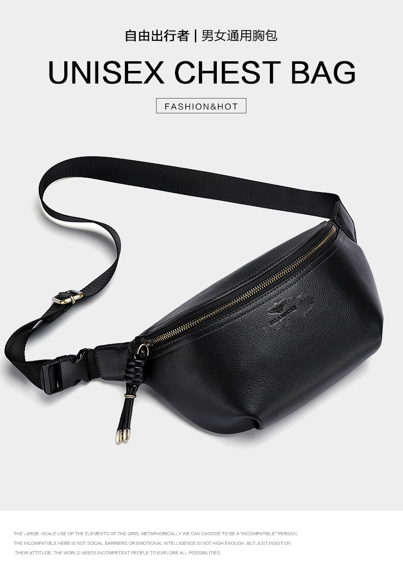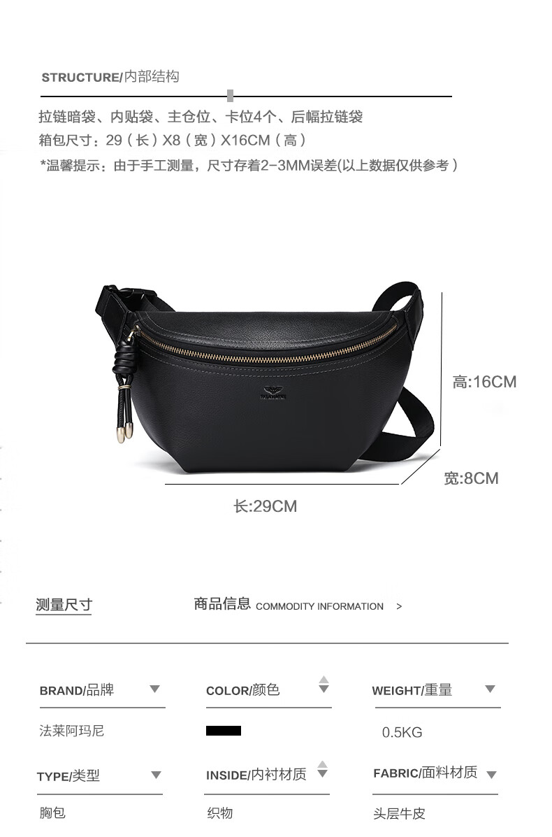 法莱阿玛尼正品时尚真皮男士斜挎包潮流头层牛皮胸包男包 黑色203