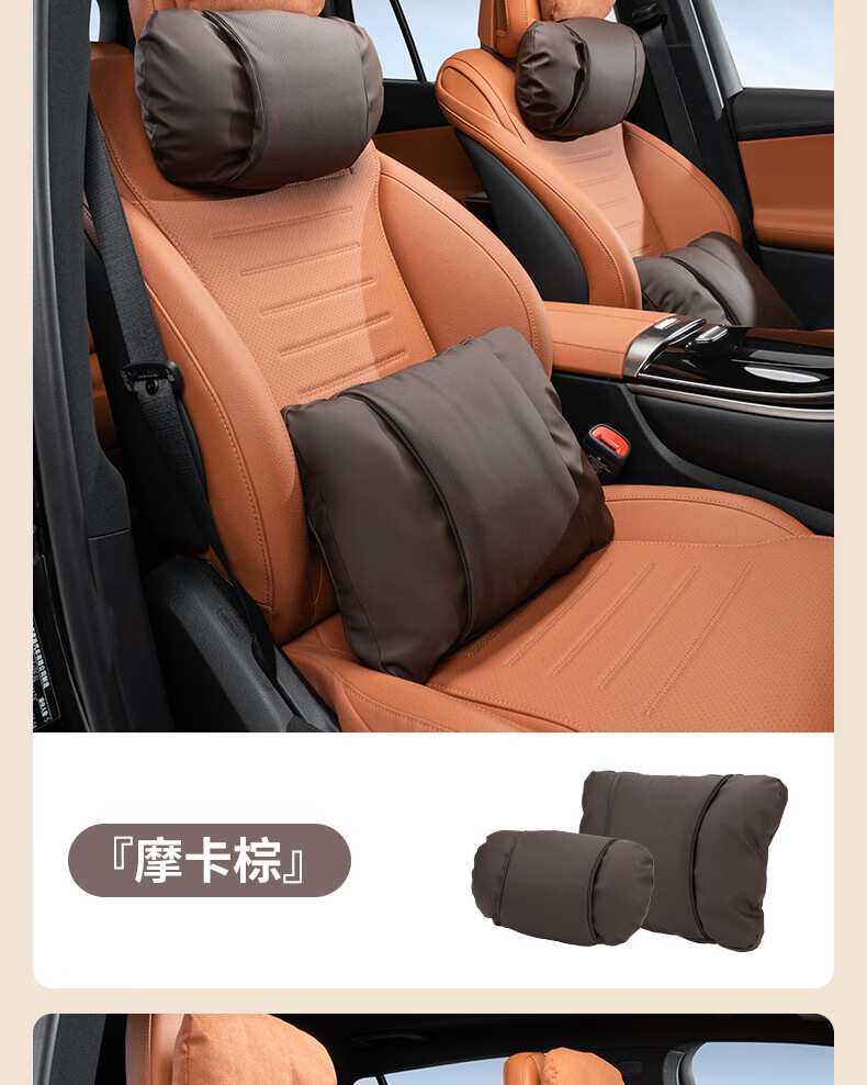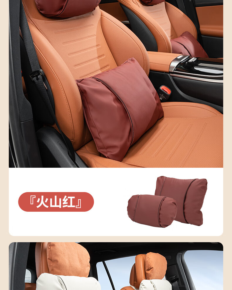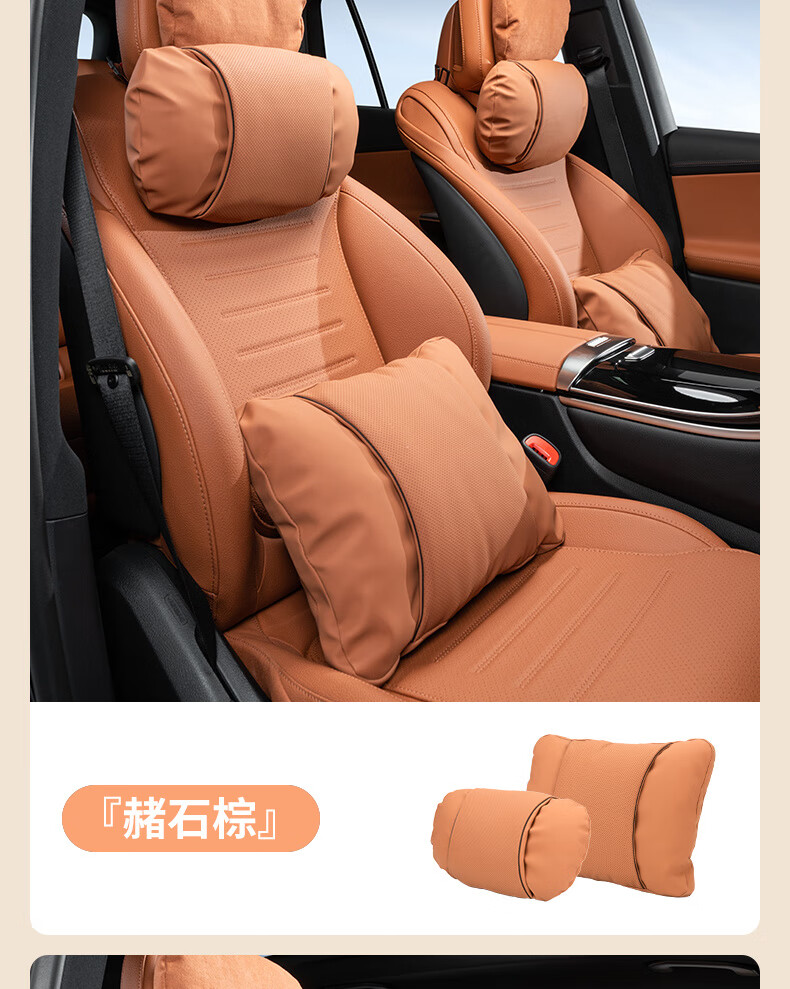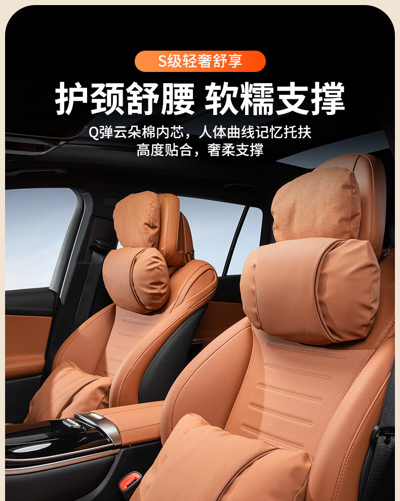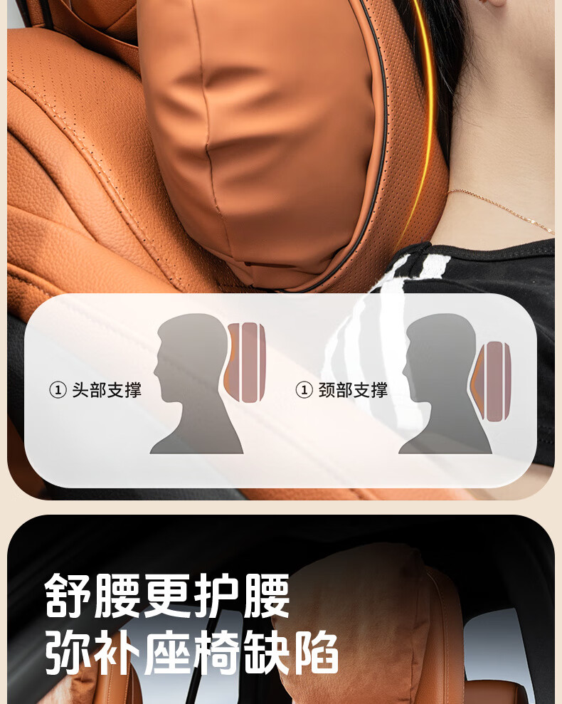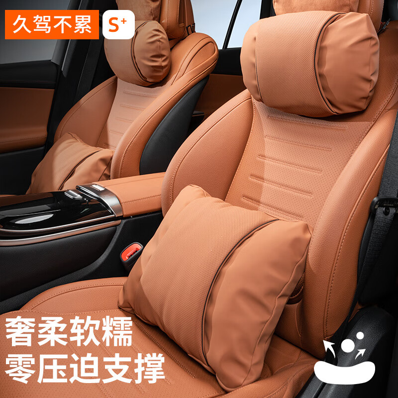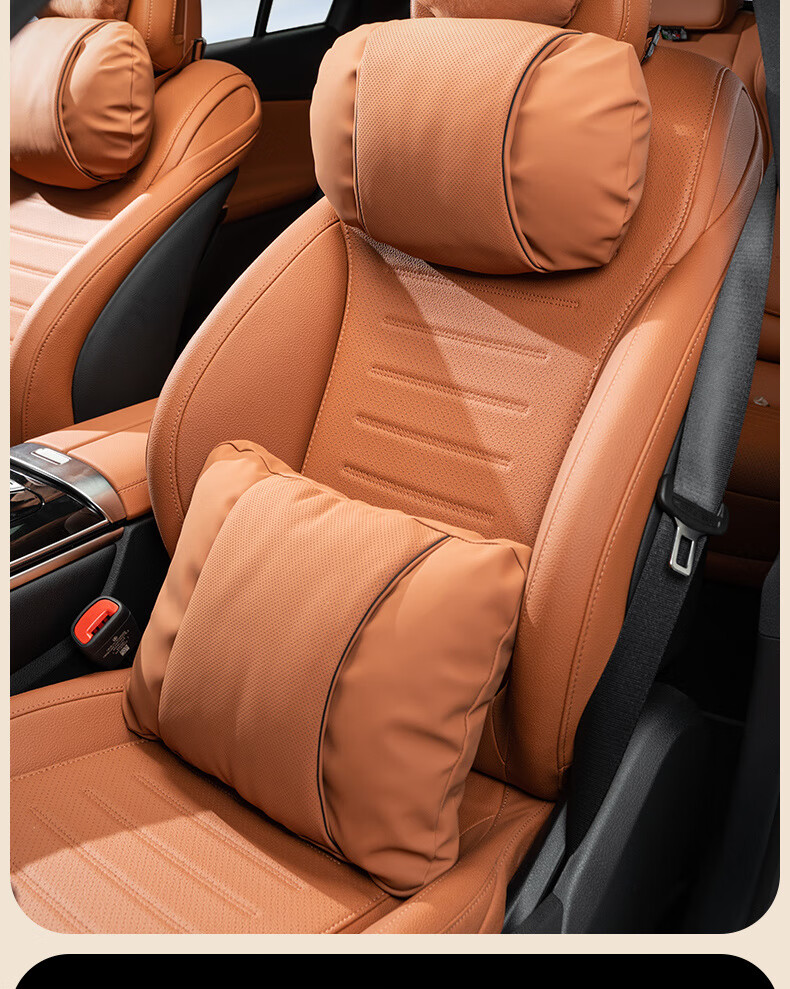 LZJV2025新款汽车头枕护颈枕奥迪奔驰大众座椅靠枕腰靠套装四季通用 优惠套餐【爱马橙(头枕+靠枕)】