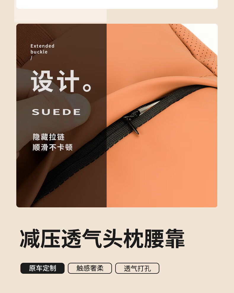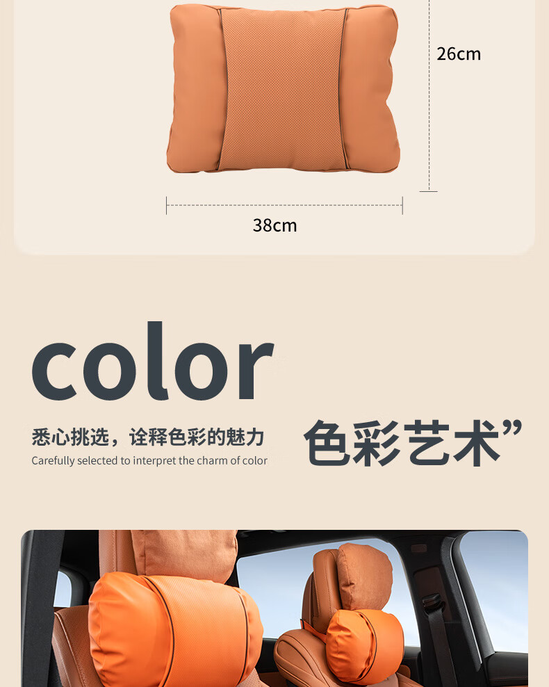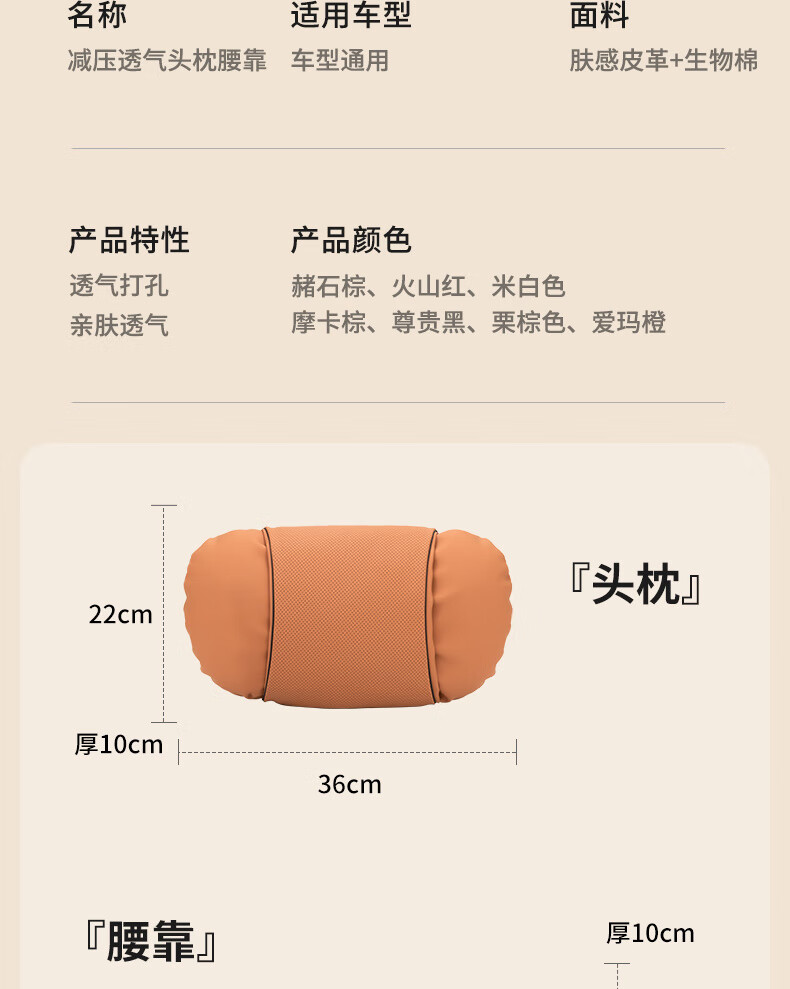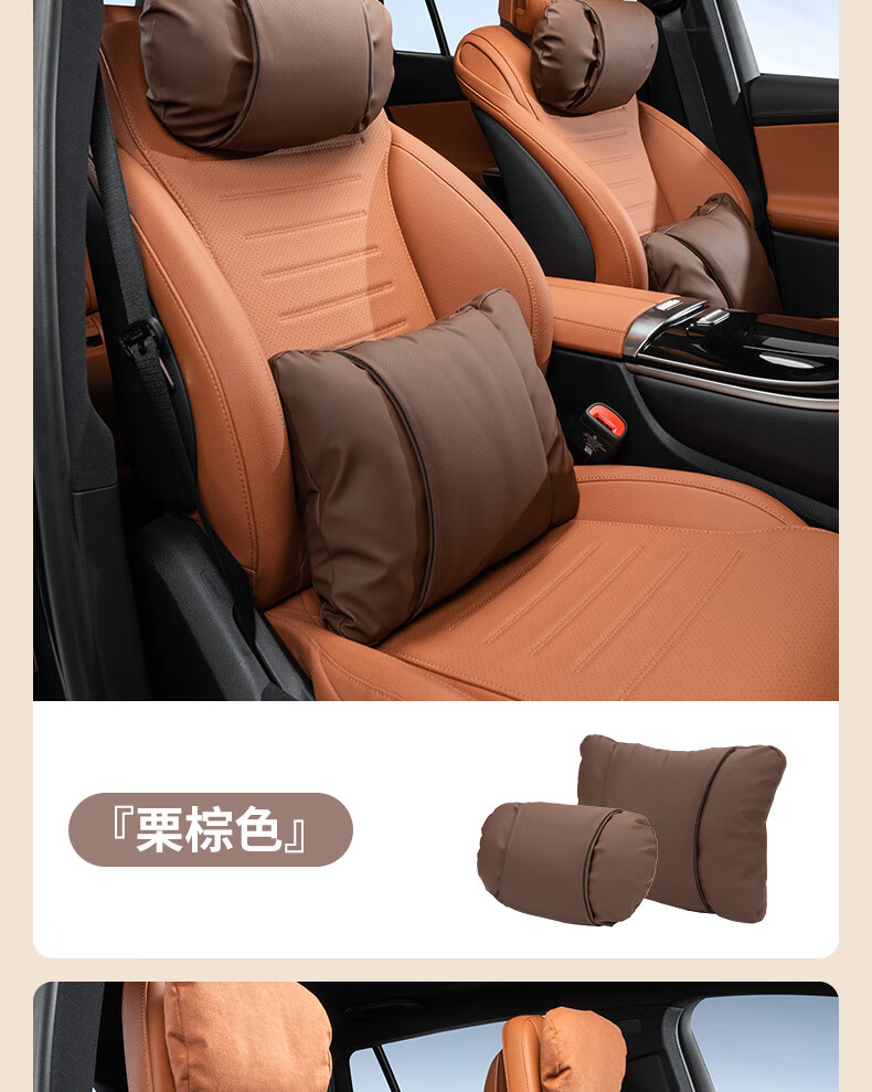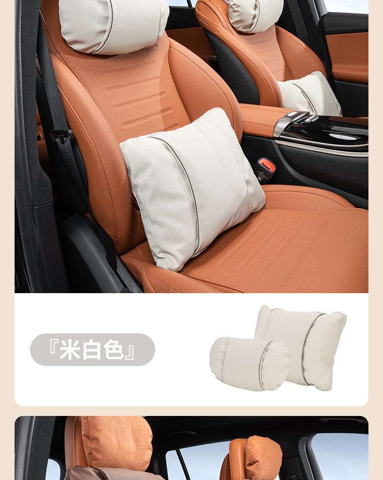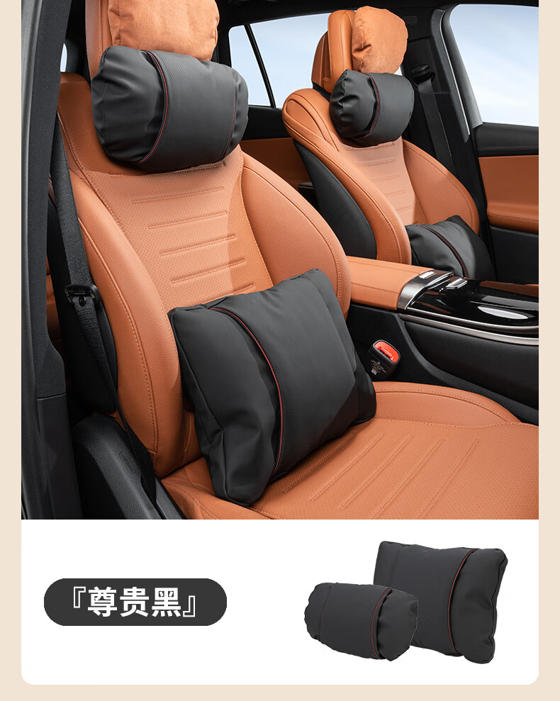 LZJV2025新款汽车头枕护颈枕奥迪奔驰大众座椅靠枕腰靠套装四季通用 优惠套餐【爱马橙(头枕+靠枕)】