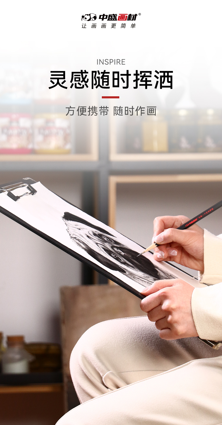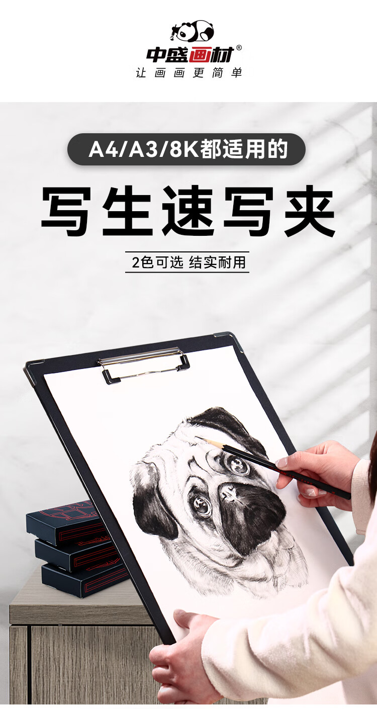 中盛画材8k速写夹画板素描速写画板8开写生书写板夹画具画材美术用品速写马克笔绘画