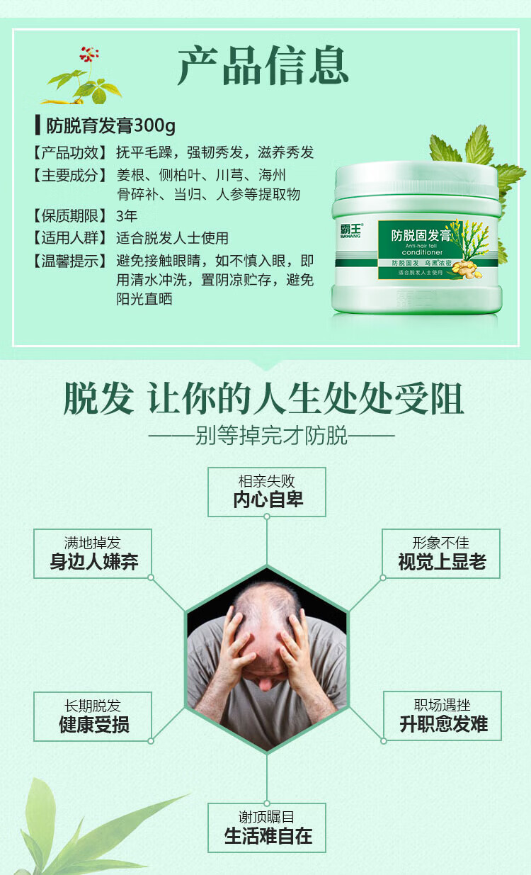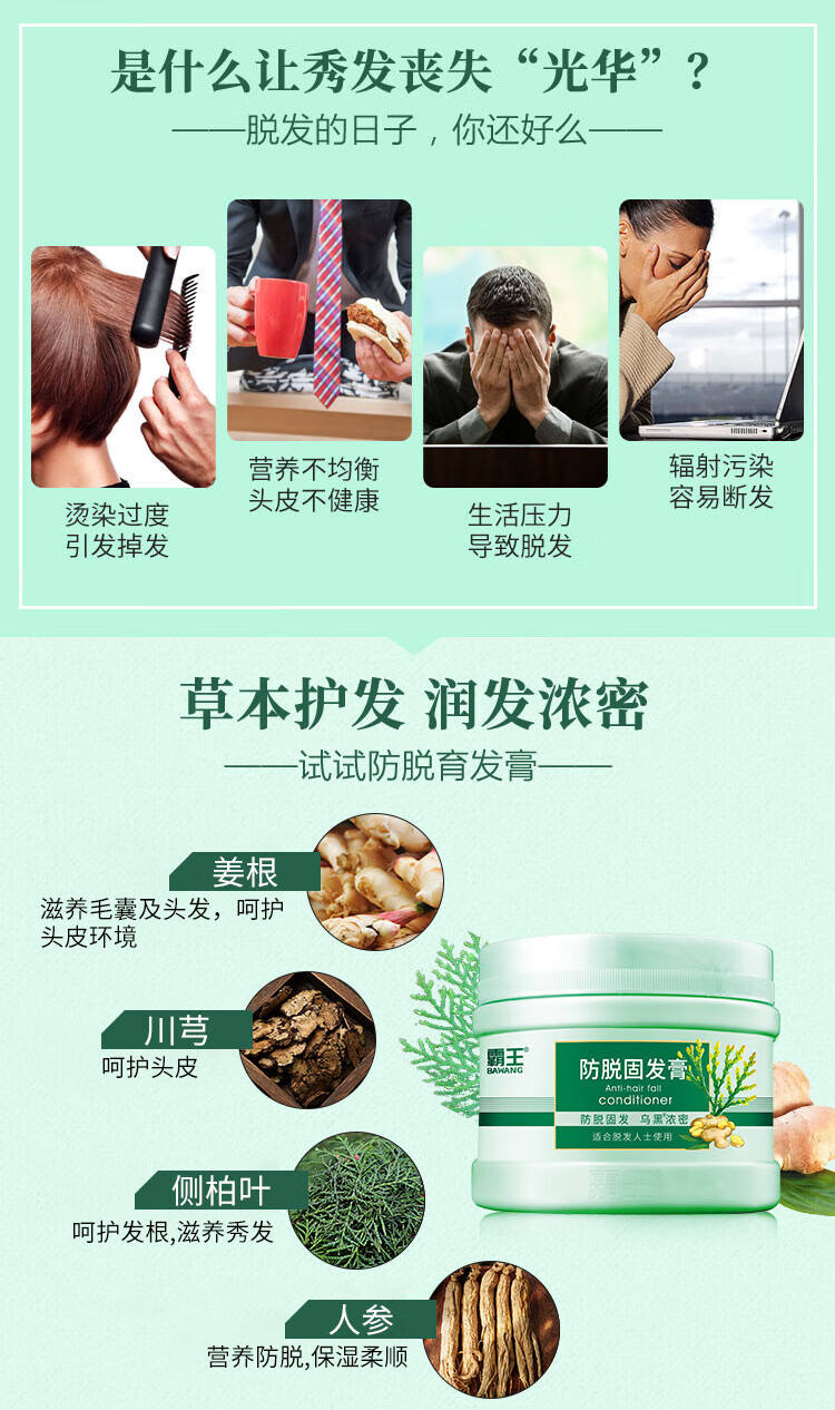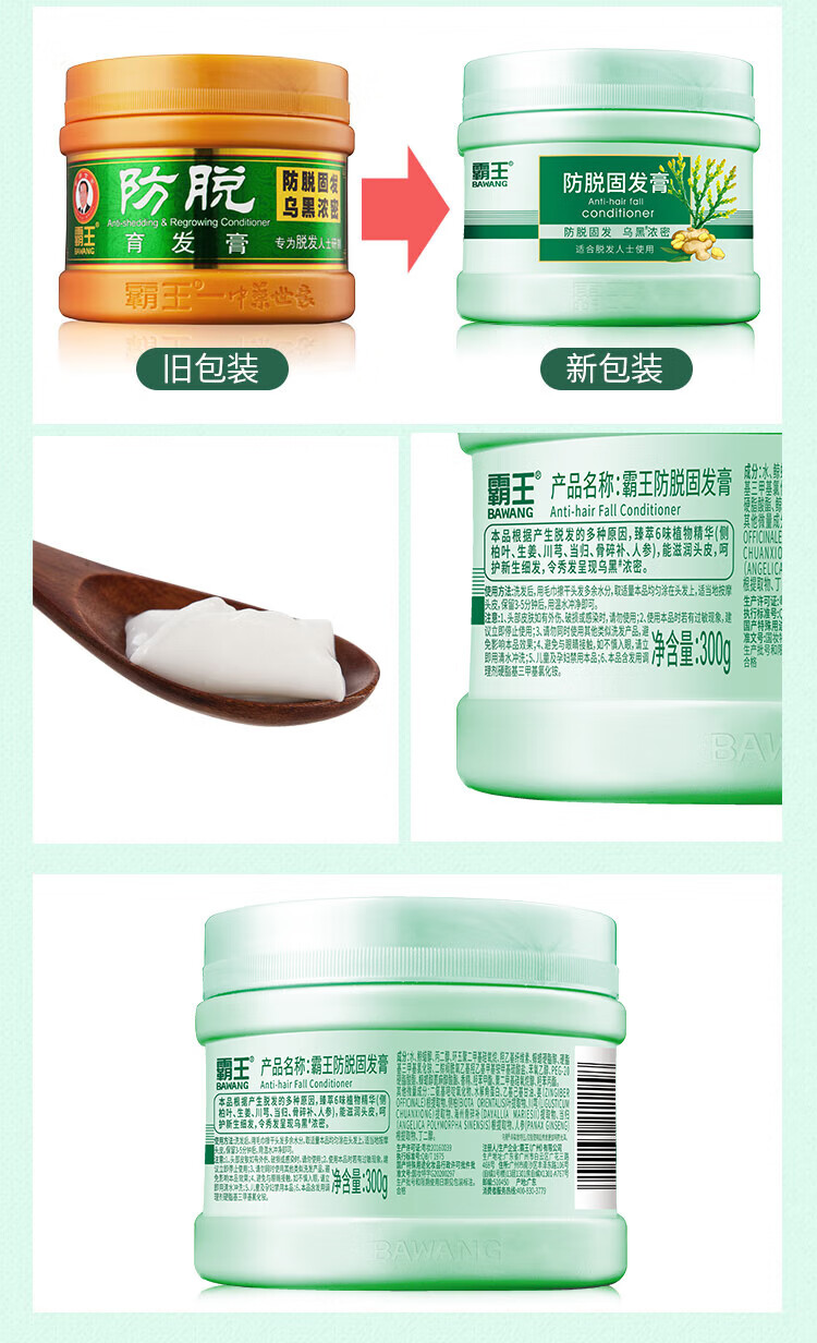 霸王防脱育发膏发膜固发柔顺亮泽生姜护发素护发乳液 防脱调理发膜 280gx3瓶