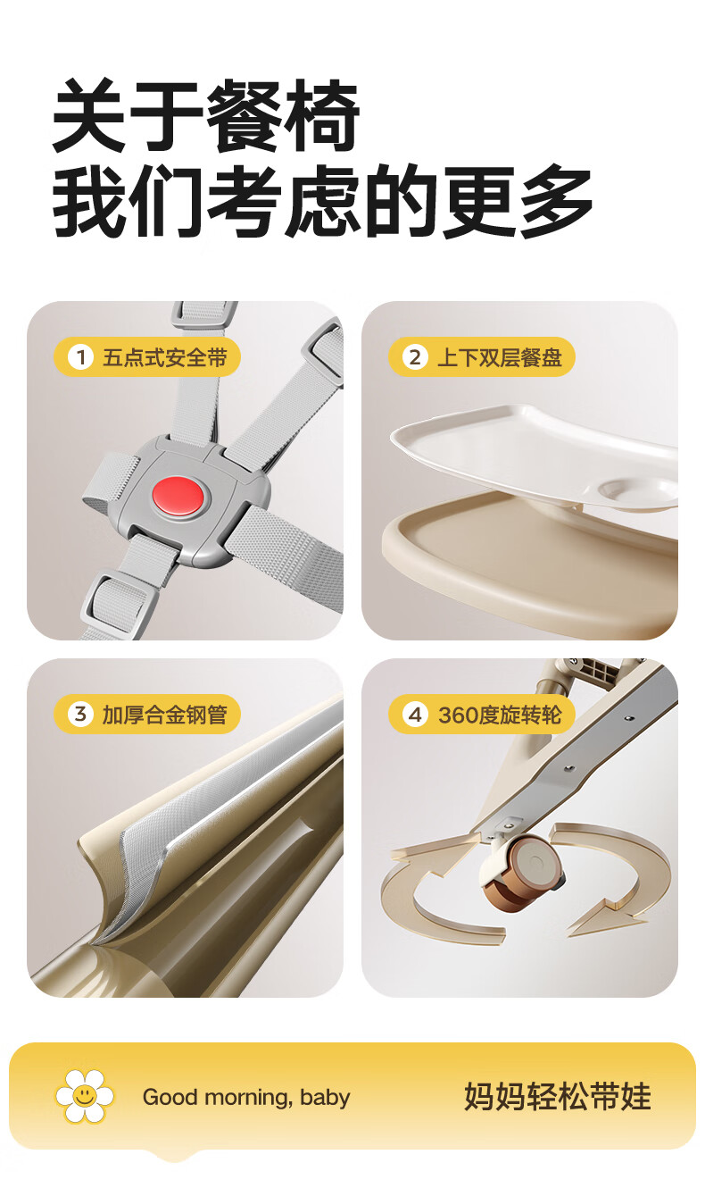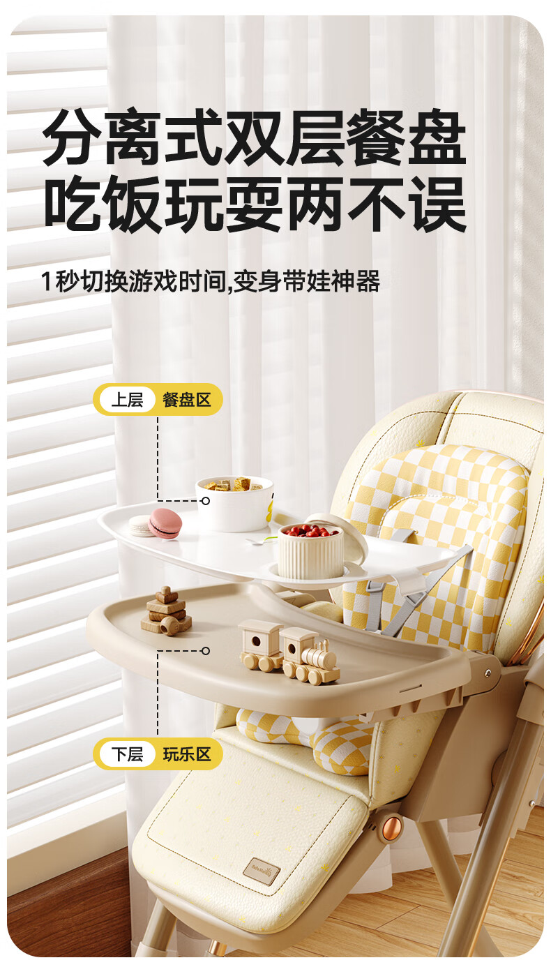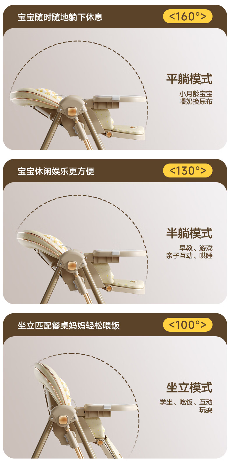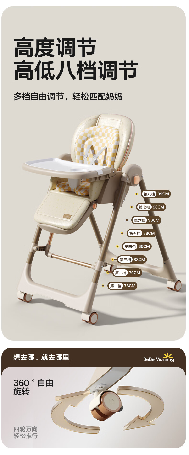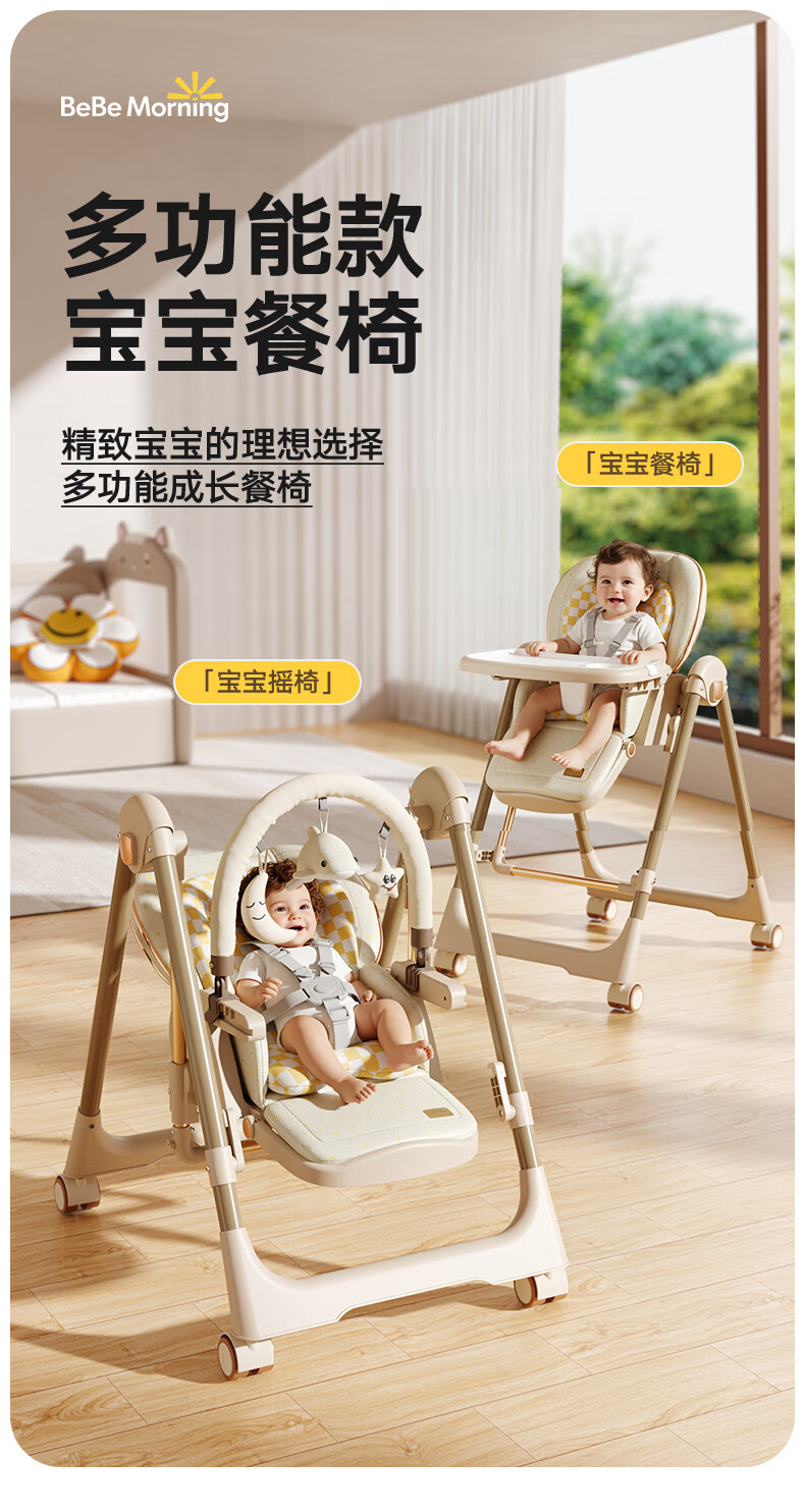 小主早安(BeBeMorning)宝宝餐椅婴儿吃饭椅子可坐躺折叠餐桌椅家用轻便椅子