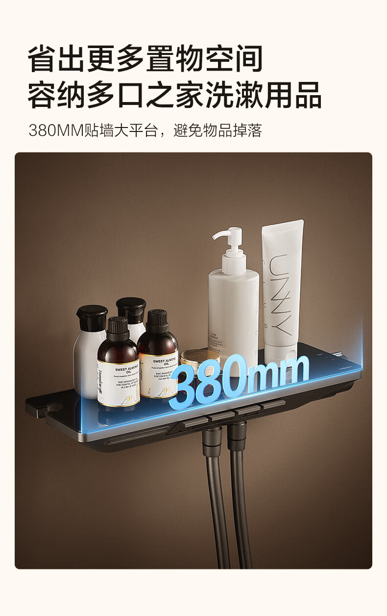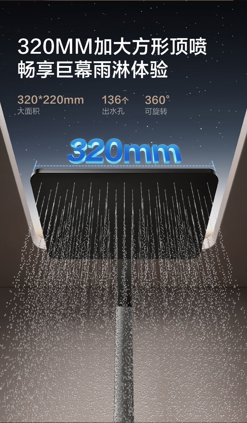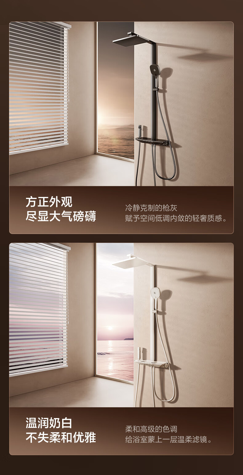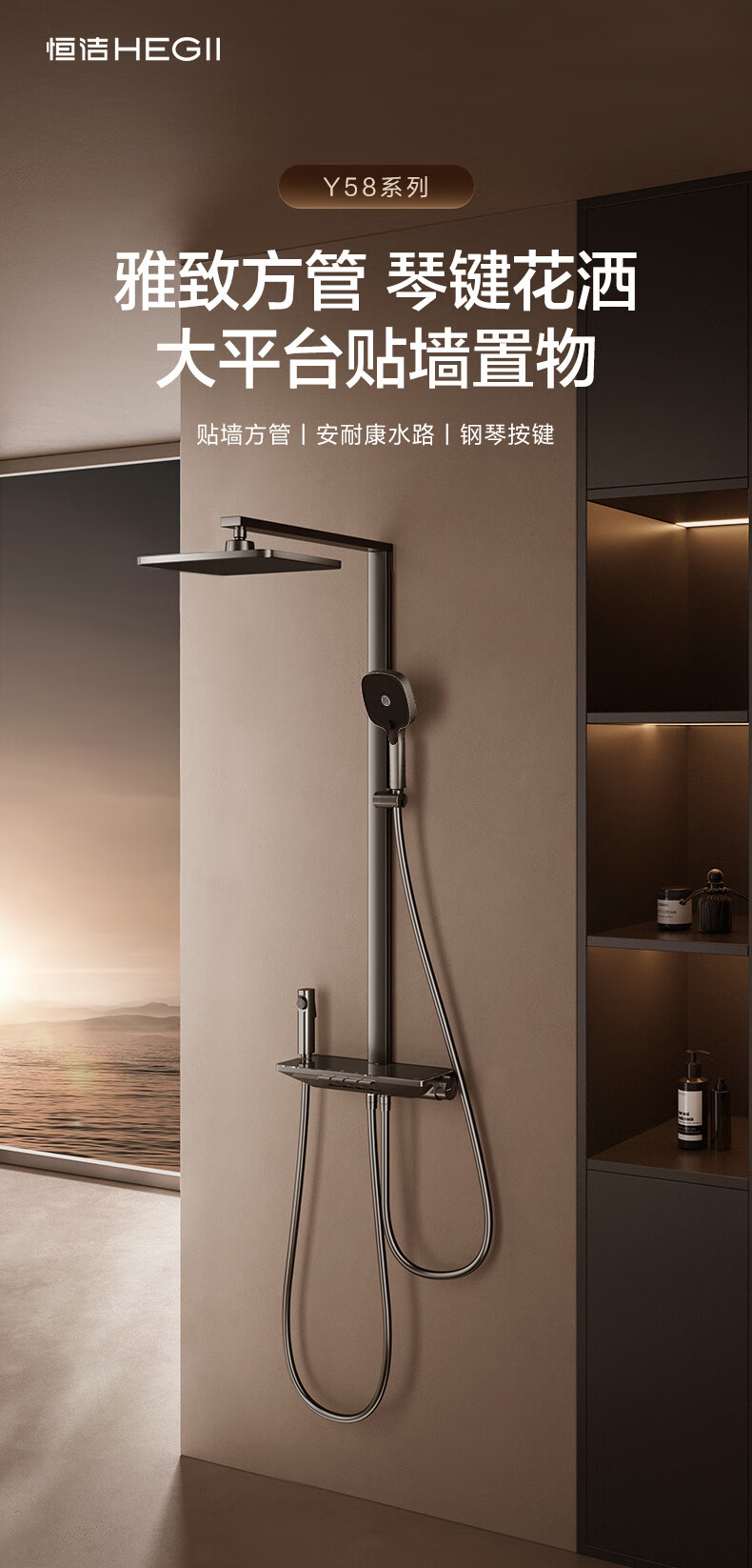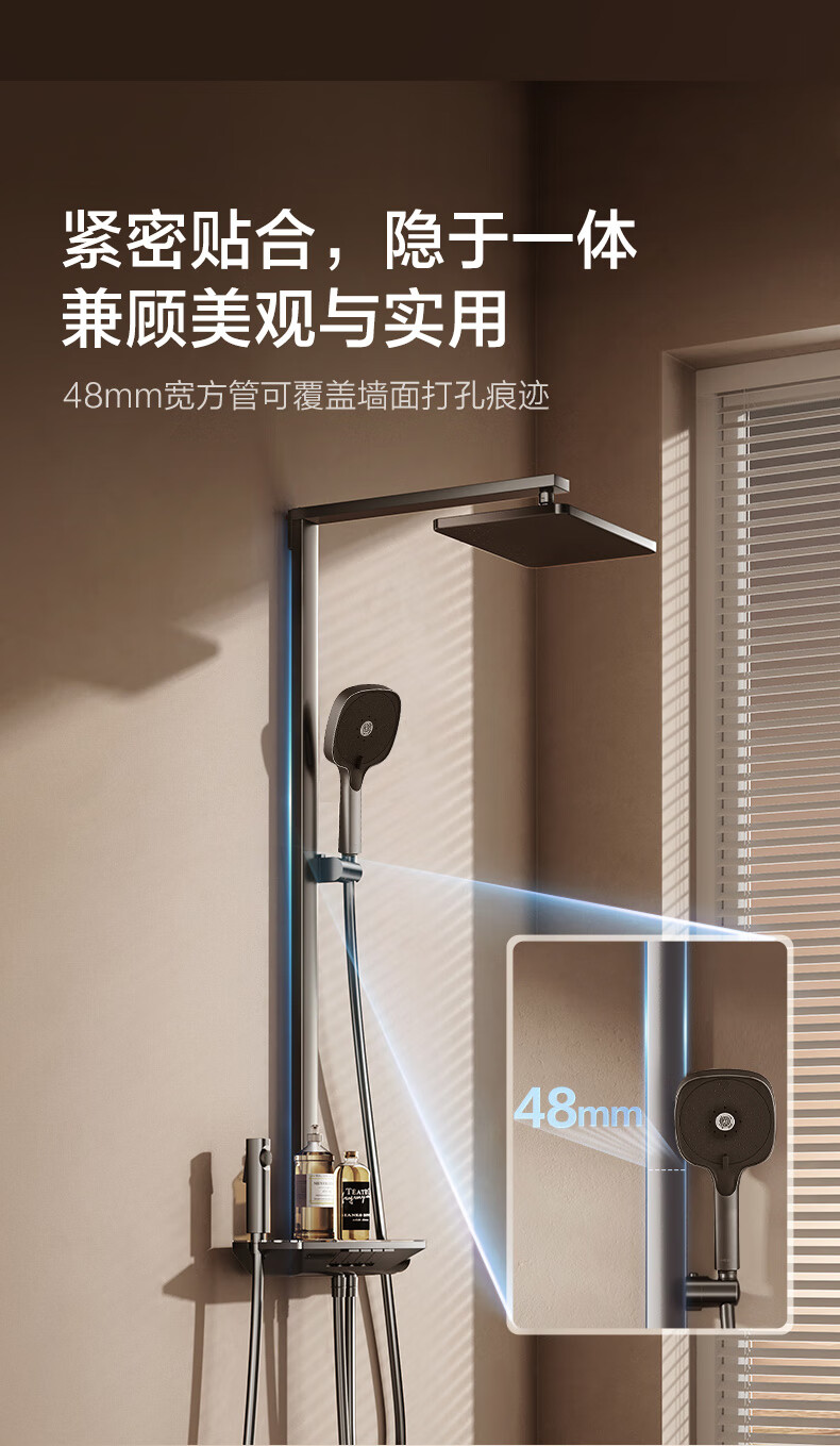 恒洁(HEGII)淋浴花洒套装Y58 星耀系列方管贴墙花洒全套DMF956B-334C-SH