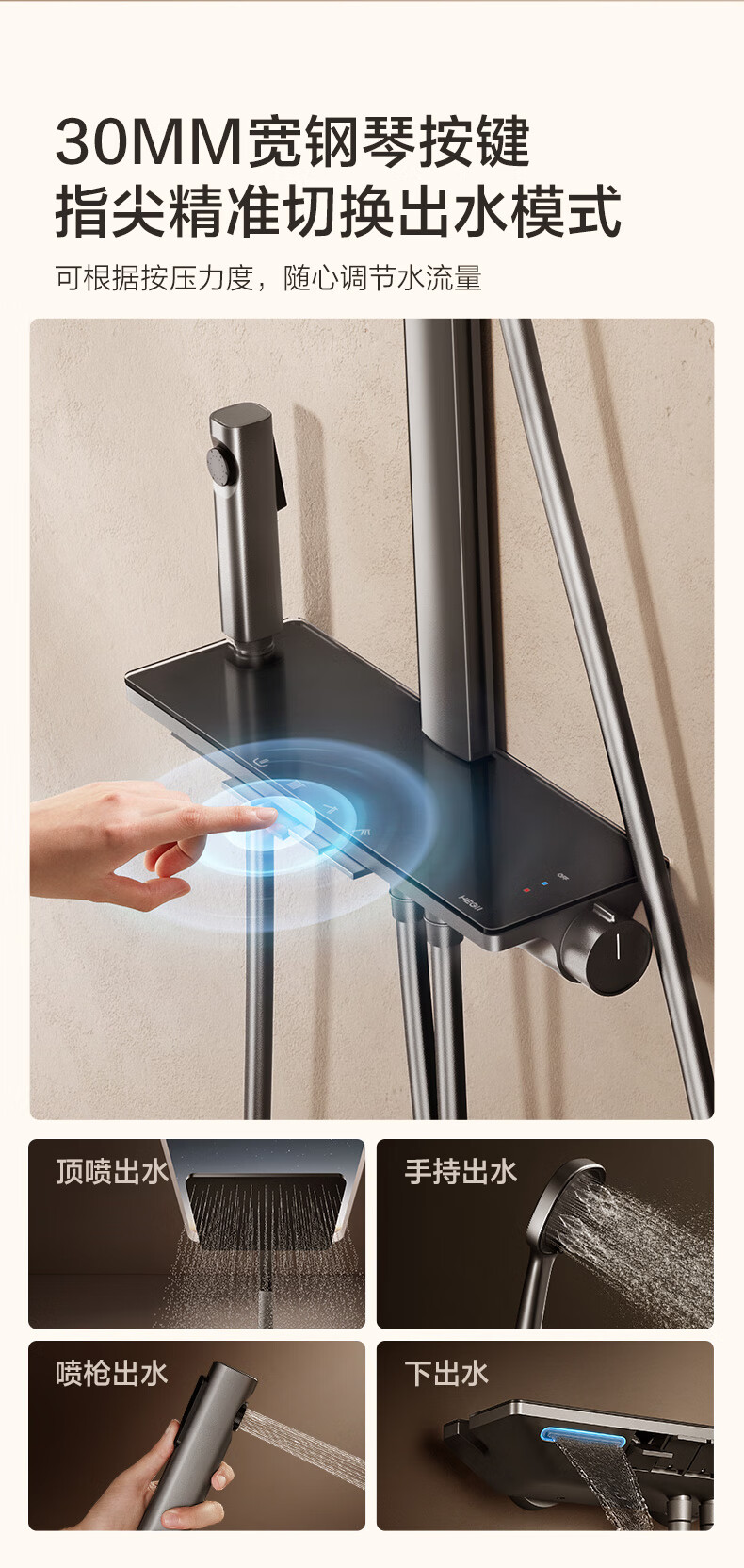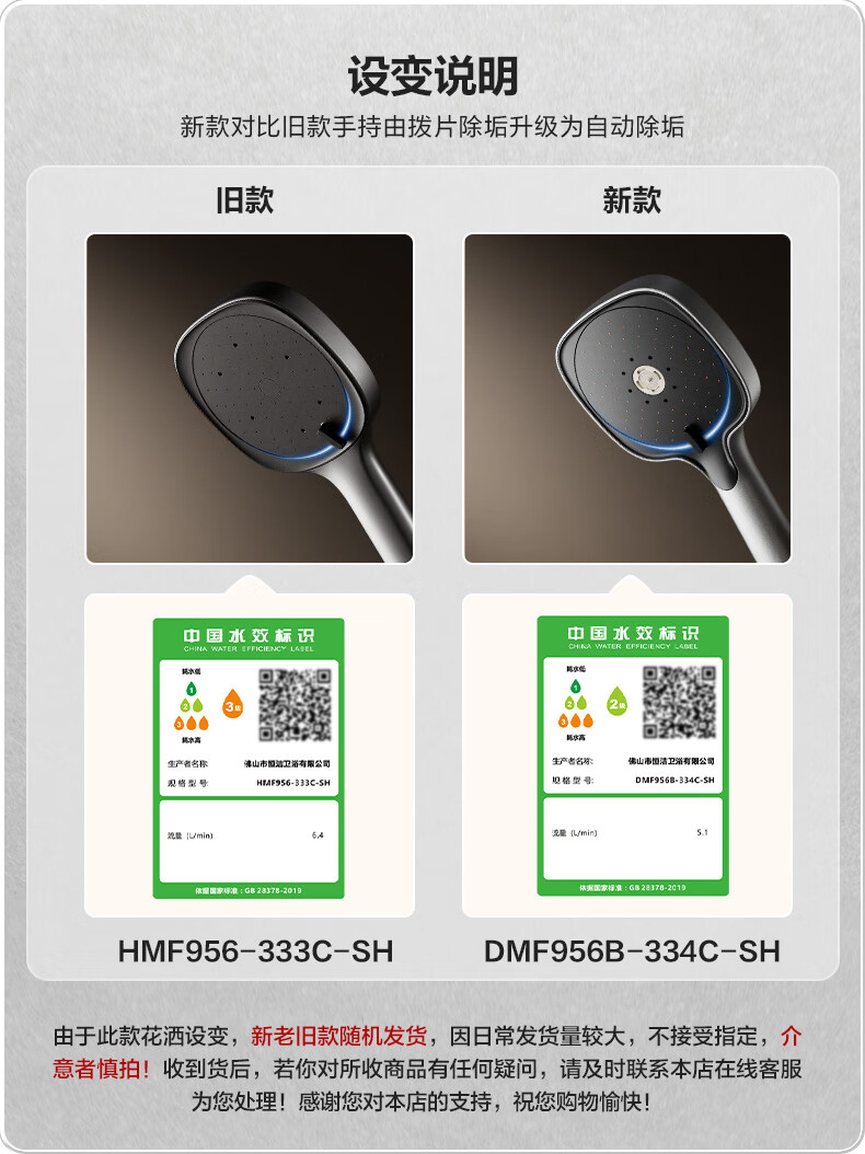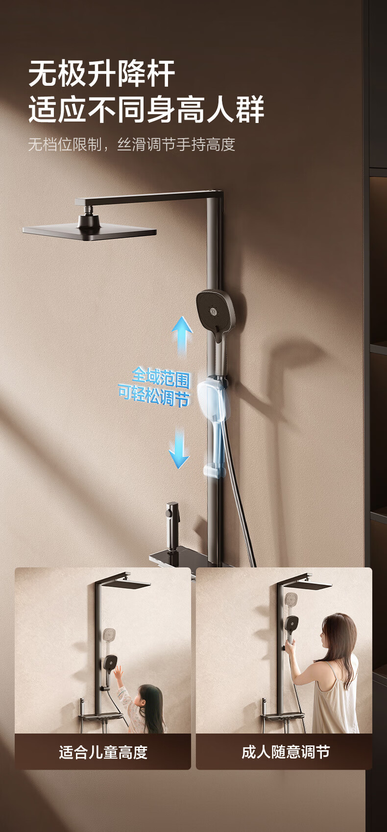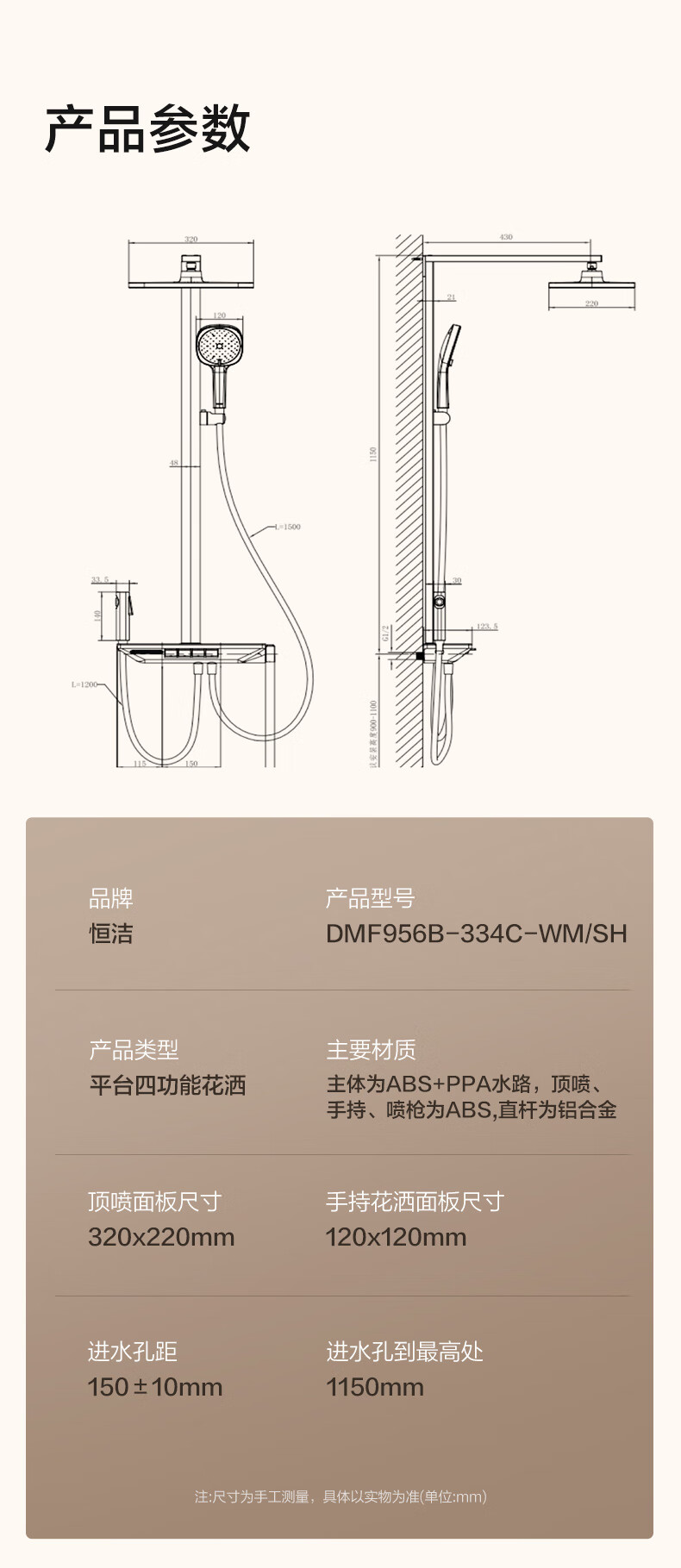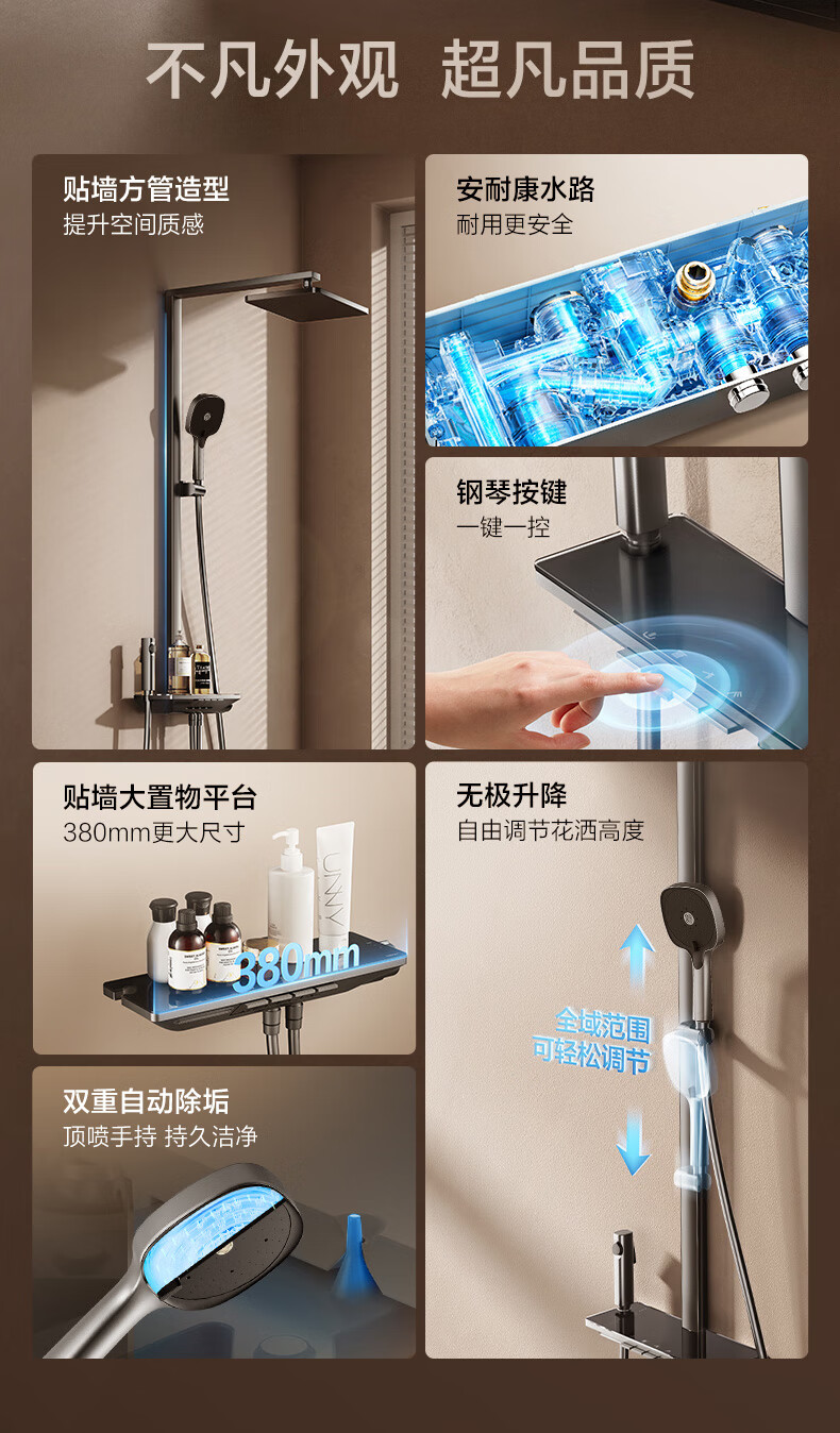 恒洁(HEGII)淋浴花洒套装Y58 星耀系列方管贴墙花洒全套DMF956B-334C-SH