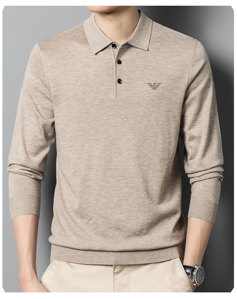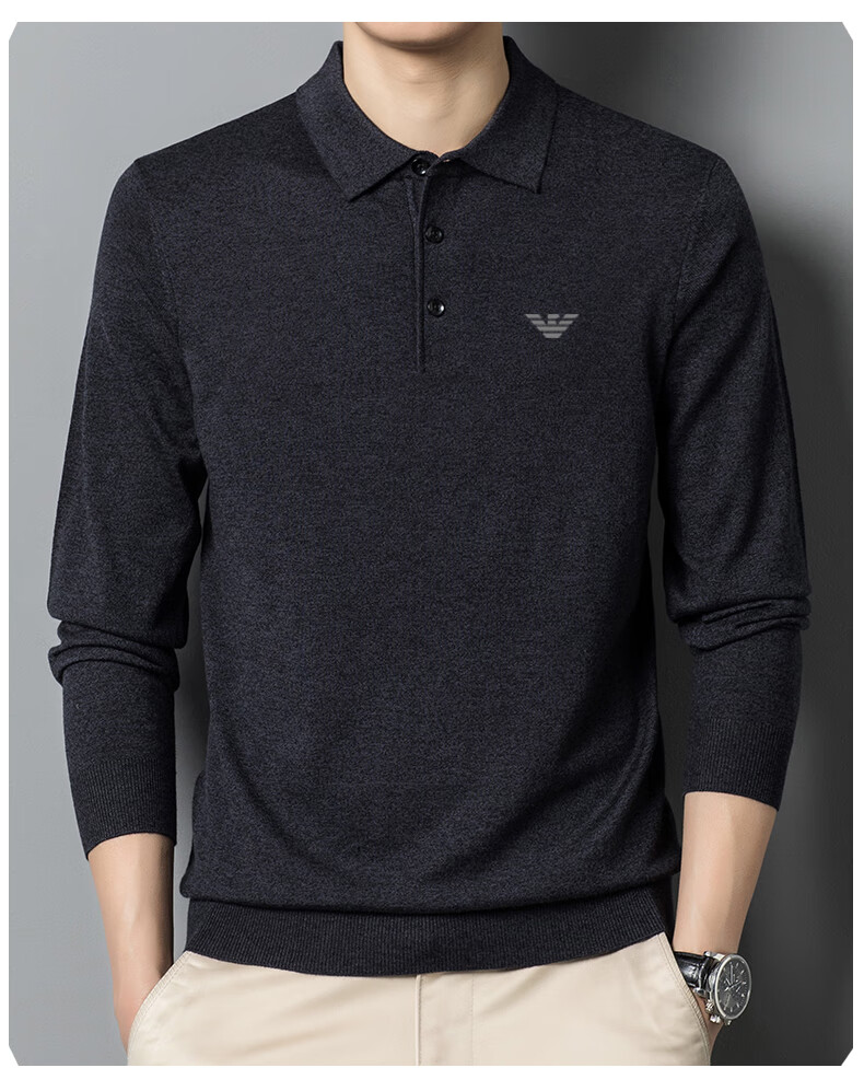 AX 阿玛尼 高端品牌翻领纯羊.毛衫男春秋长袖针织Polo衫中男装 黑色(款) 约400克纯羊毛 常规 M 165(适合90-120斤左右)