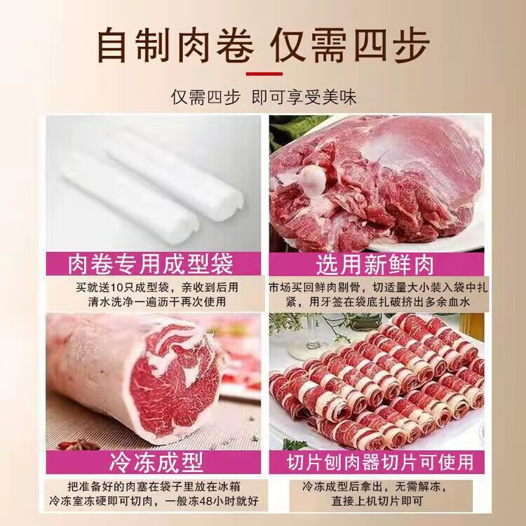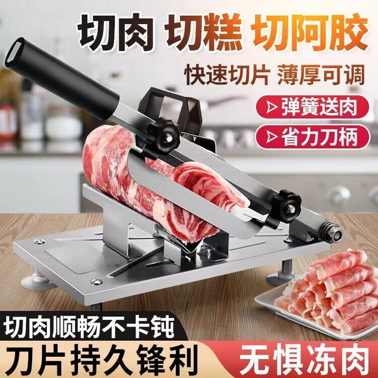 LZJV不锈钢切片机304鲜牛肉家用商用冻肉切肉片刨肉机切片神器 加厚升级+10袋+1刀片