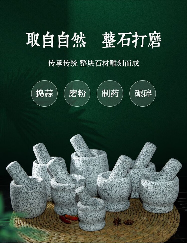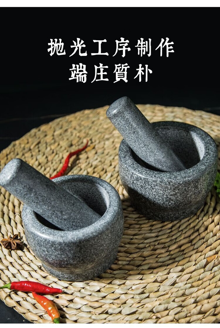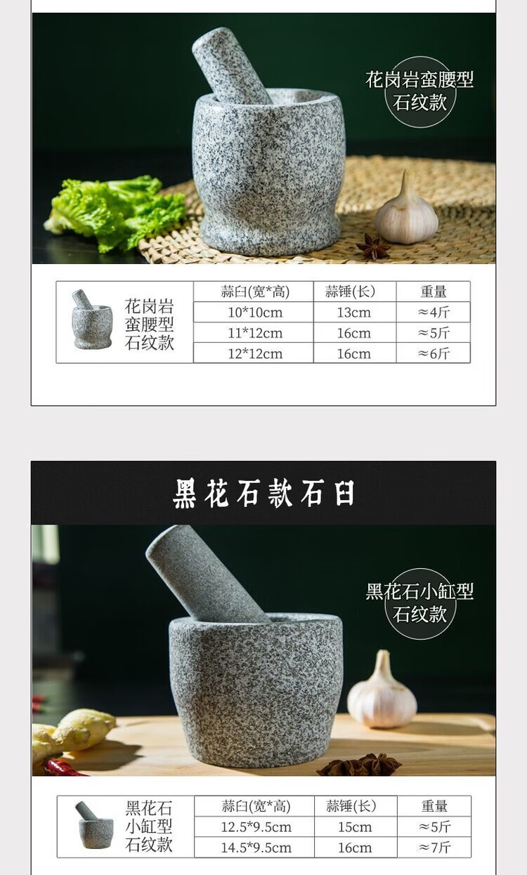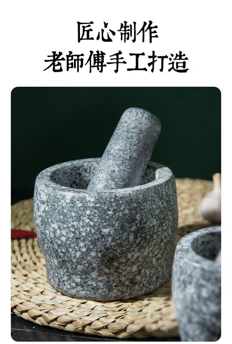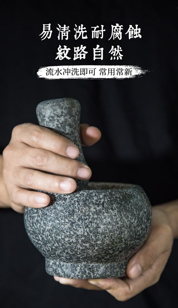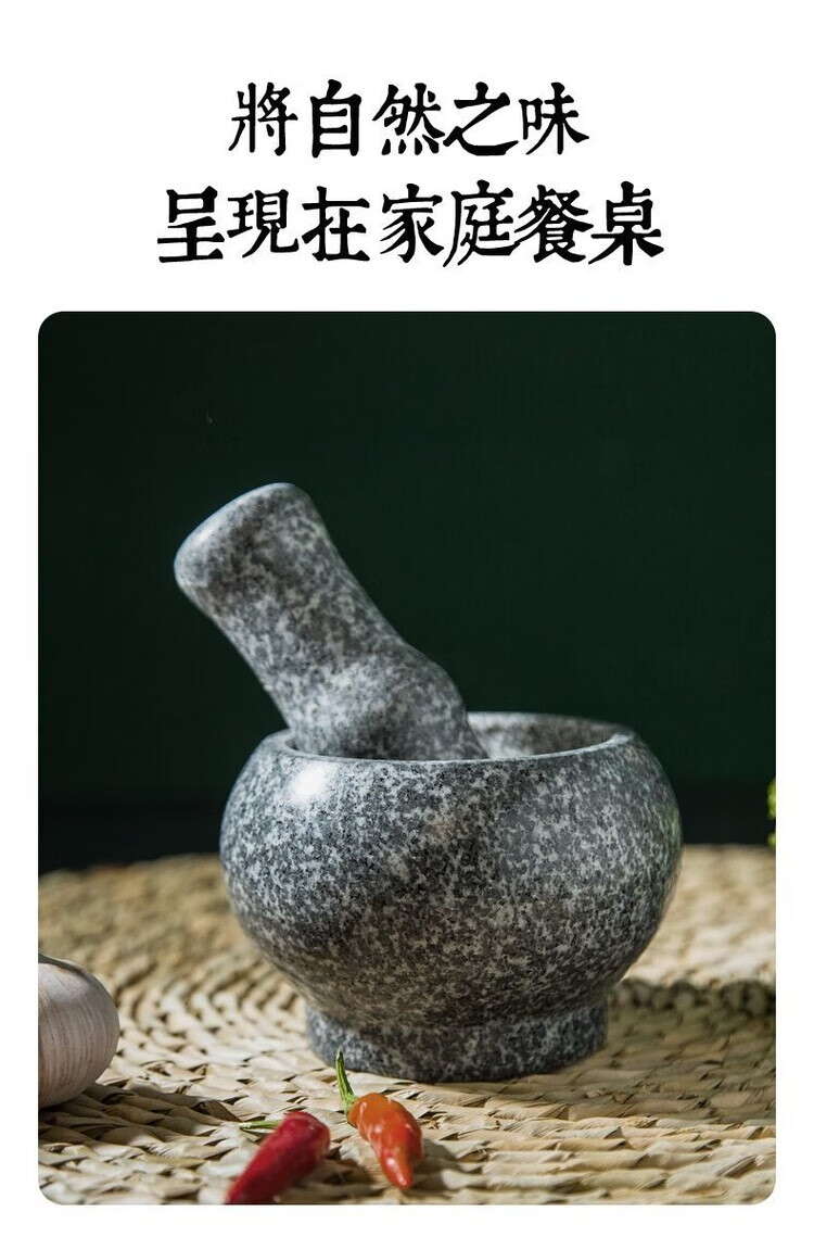 GIOIO纯天然石头锅捣蒜器石臼中药研磨器青石压蒜器蒜臼子家用蒜泥 精品黑花石碗型【中号抛光款】