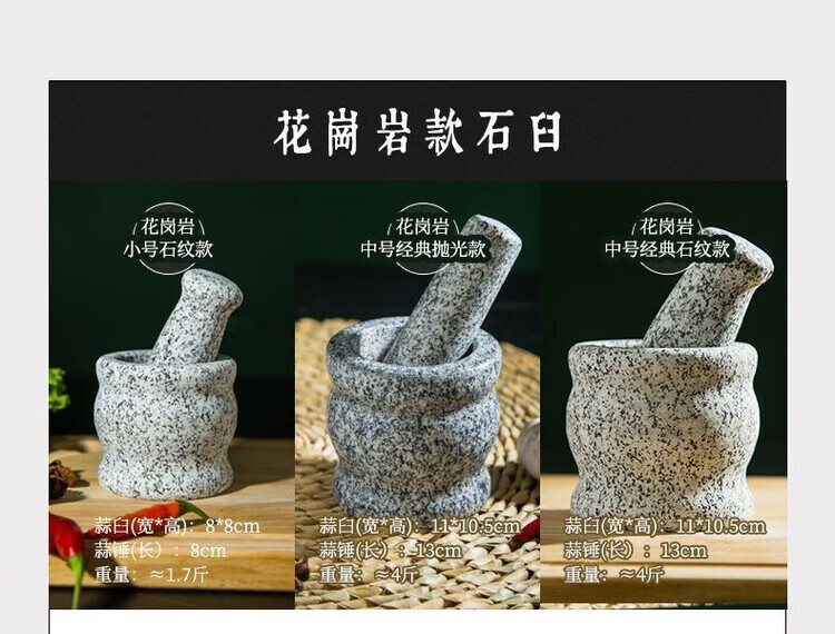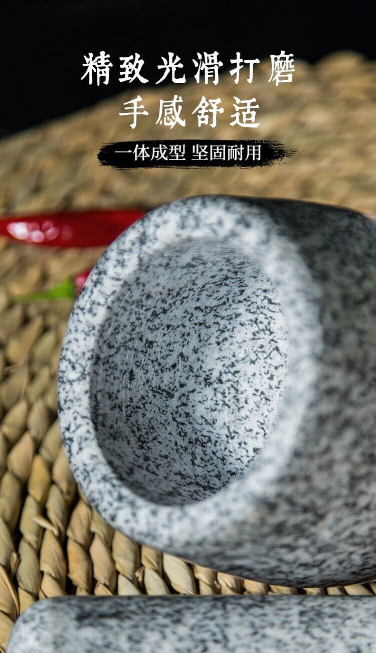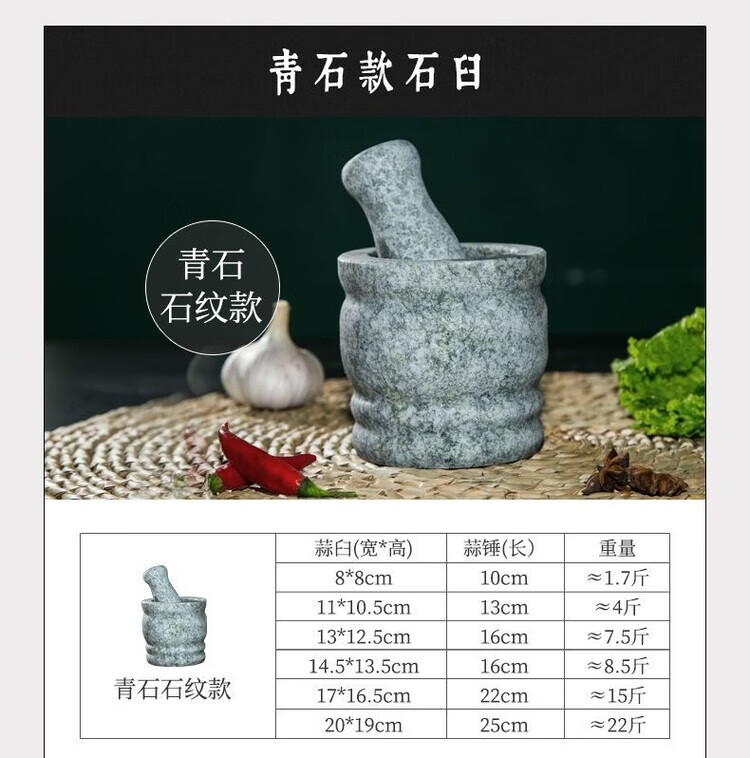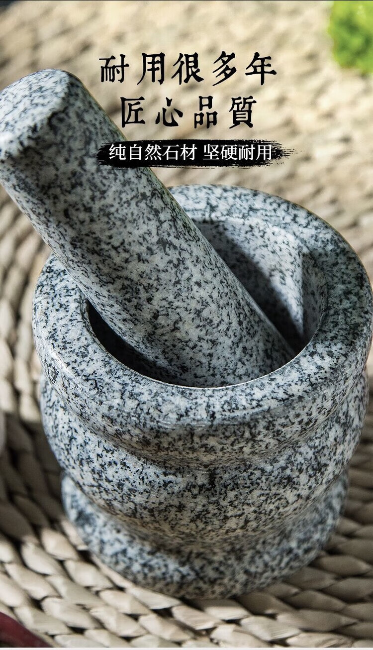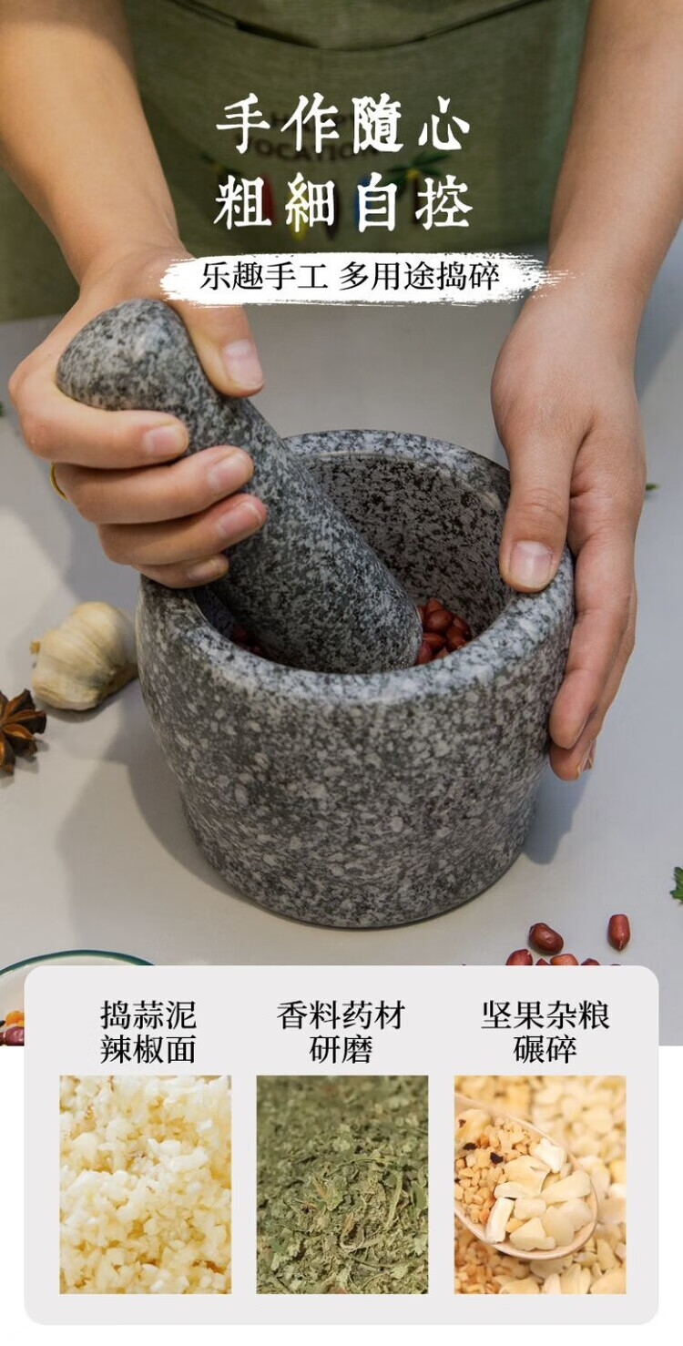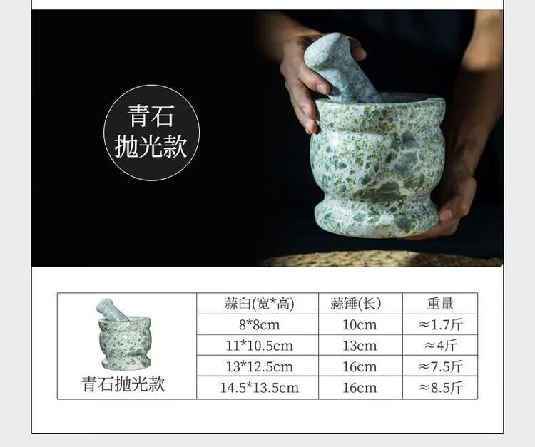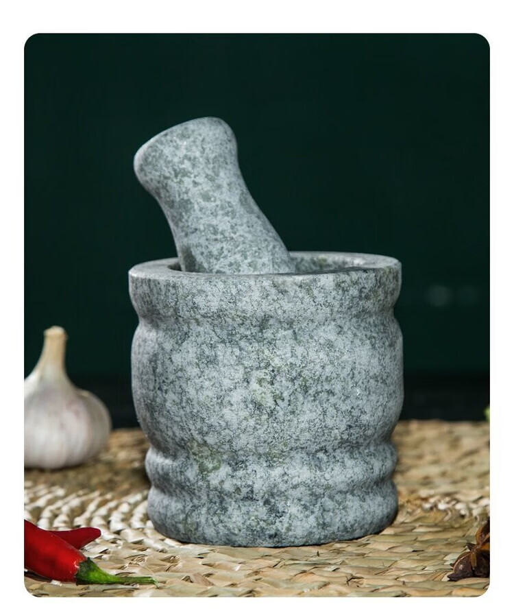 GIOIO纯天然石头锅捣蒜器石臼中药研磨器青石压蒜器蒜臼子家用蒜泥 精品黑花石碗型【中号抛光款】
