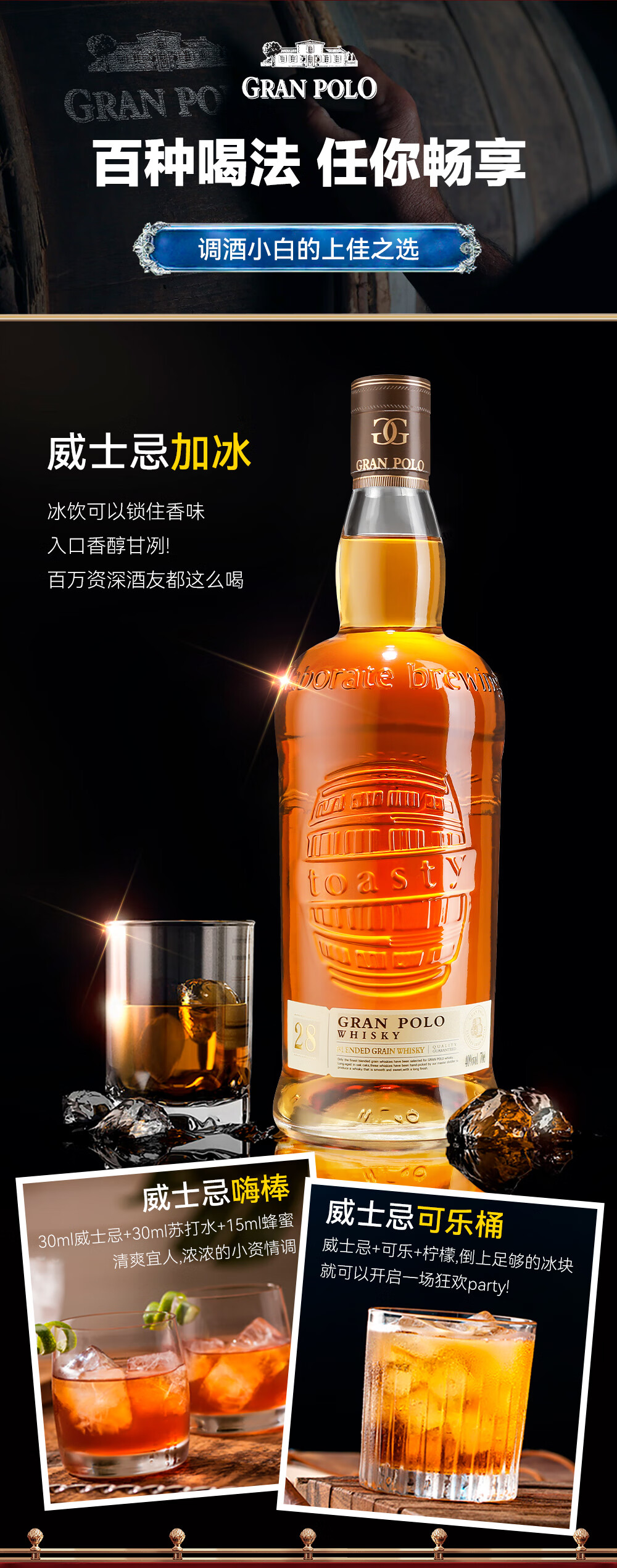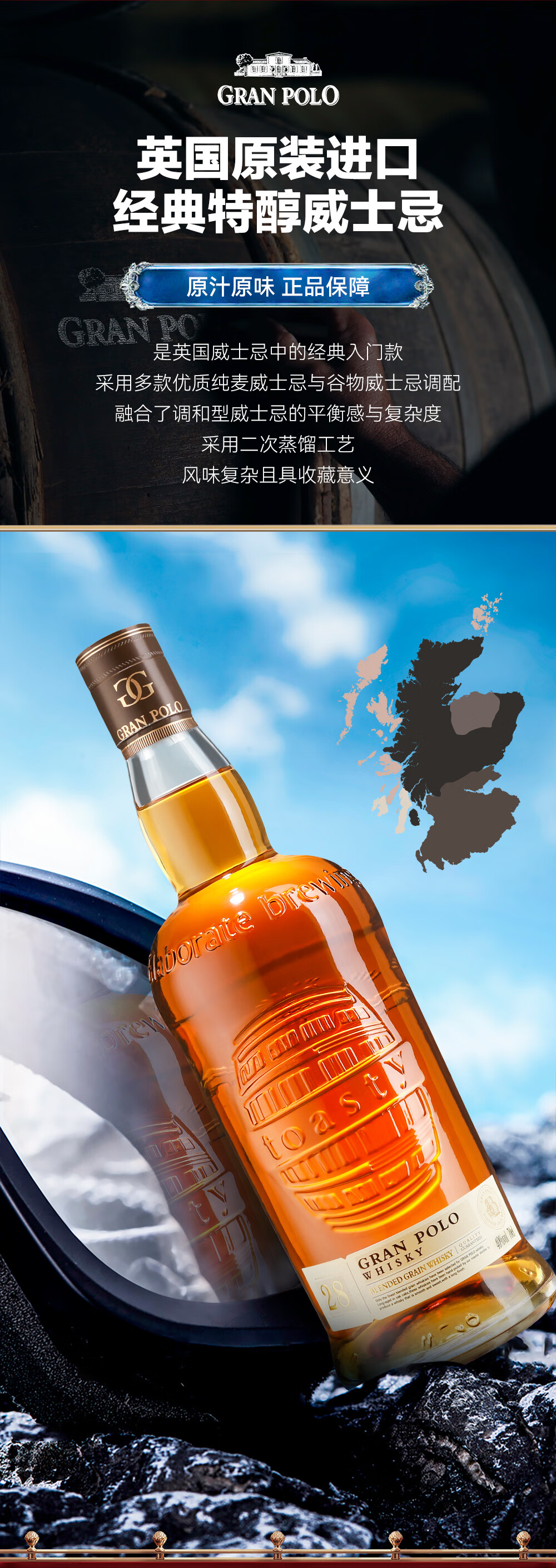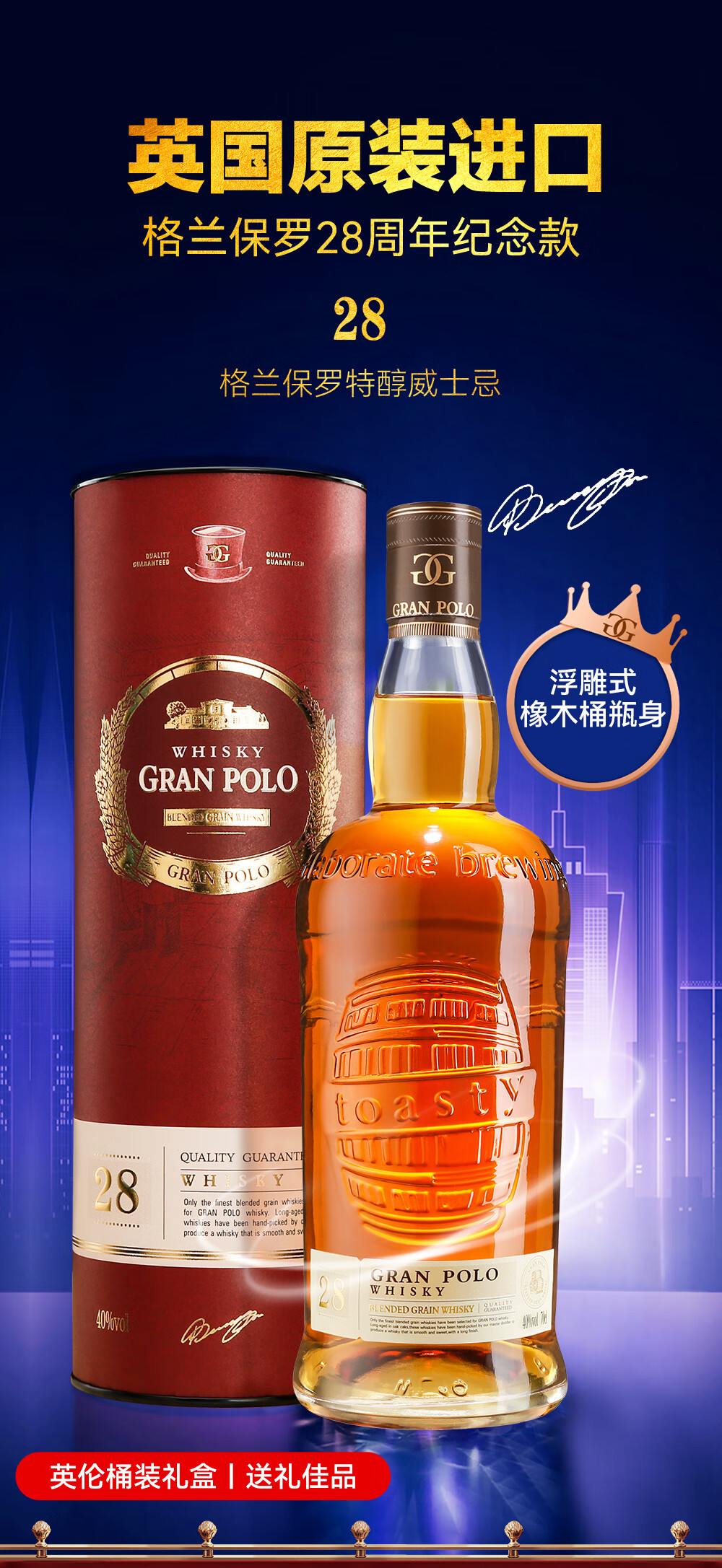 MARECAIKS进口 酒 洋酒 英国原酒进口40度格兰保罗雪莉桶威士忌1L*2瓶