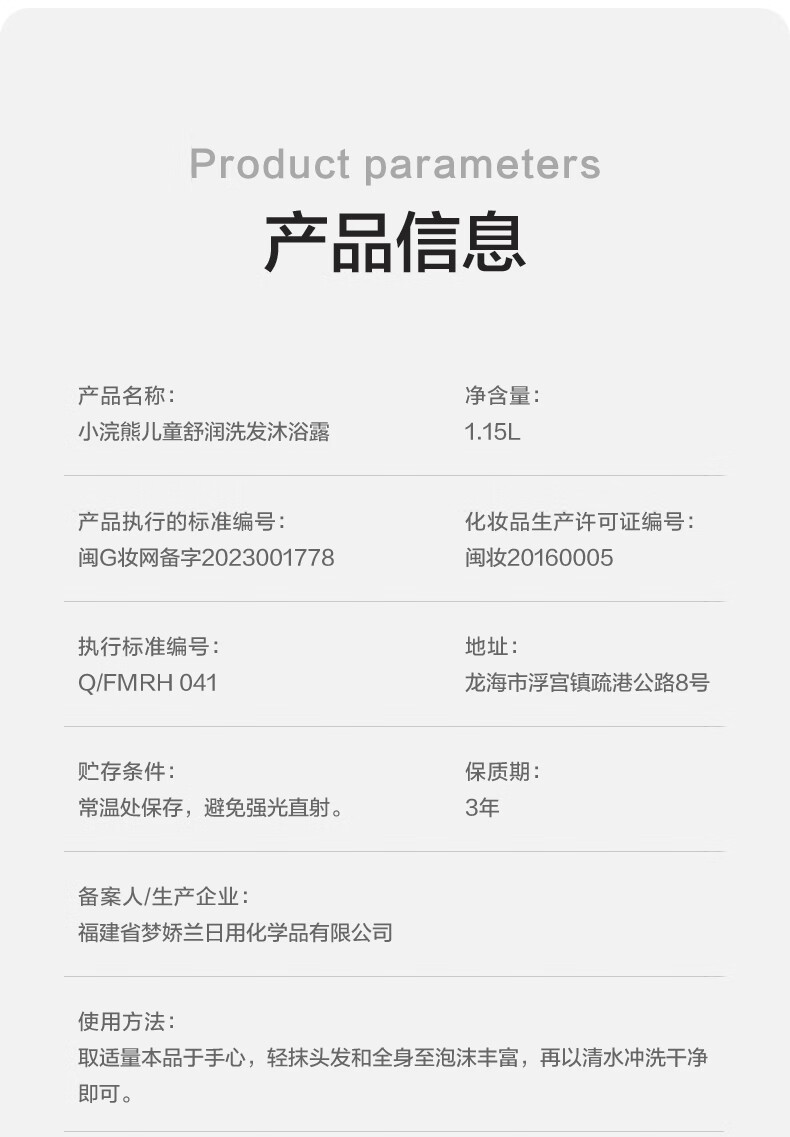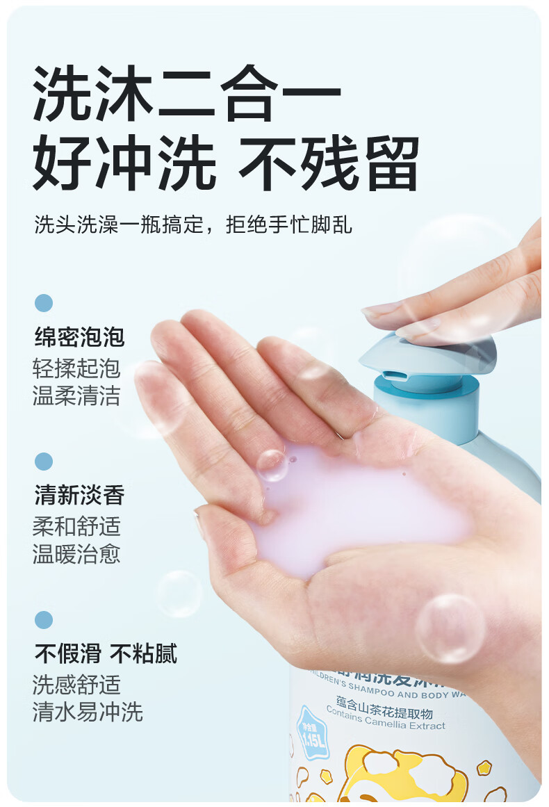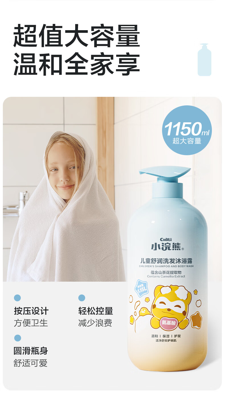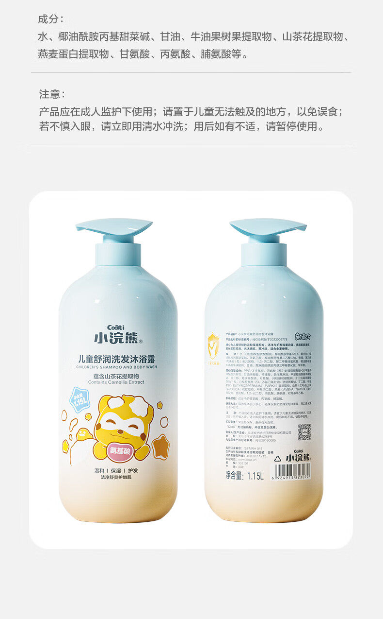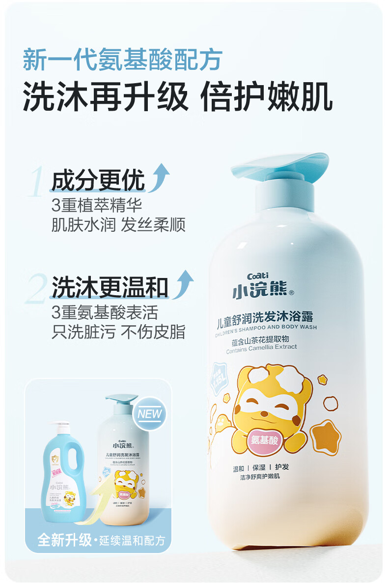 小浣熊儿童洗发沐浴露氨基酸洗发水幼婴儿宝宝洗发沐浴乳二合一洗护 【保湿舒缓 清洁护发】洗发沐浴露1.15L
