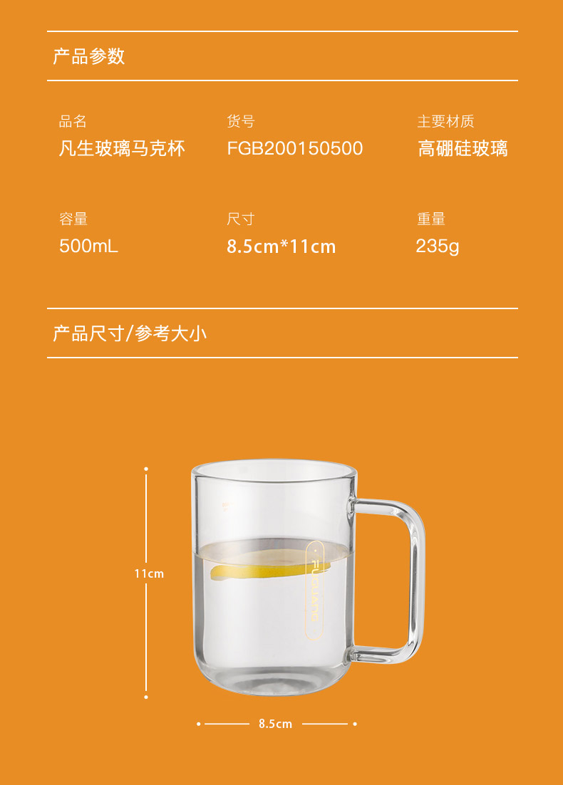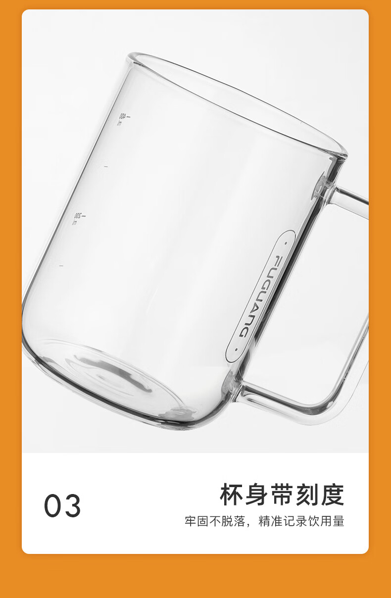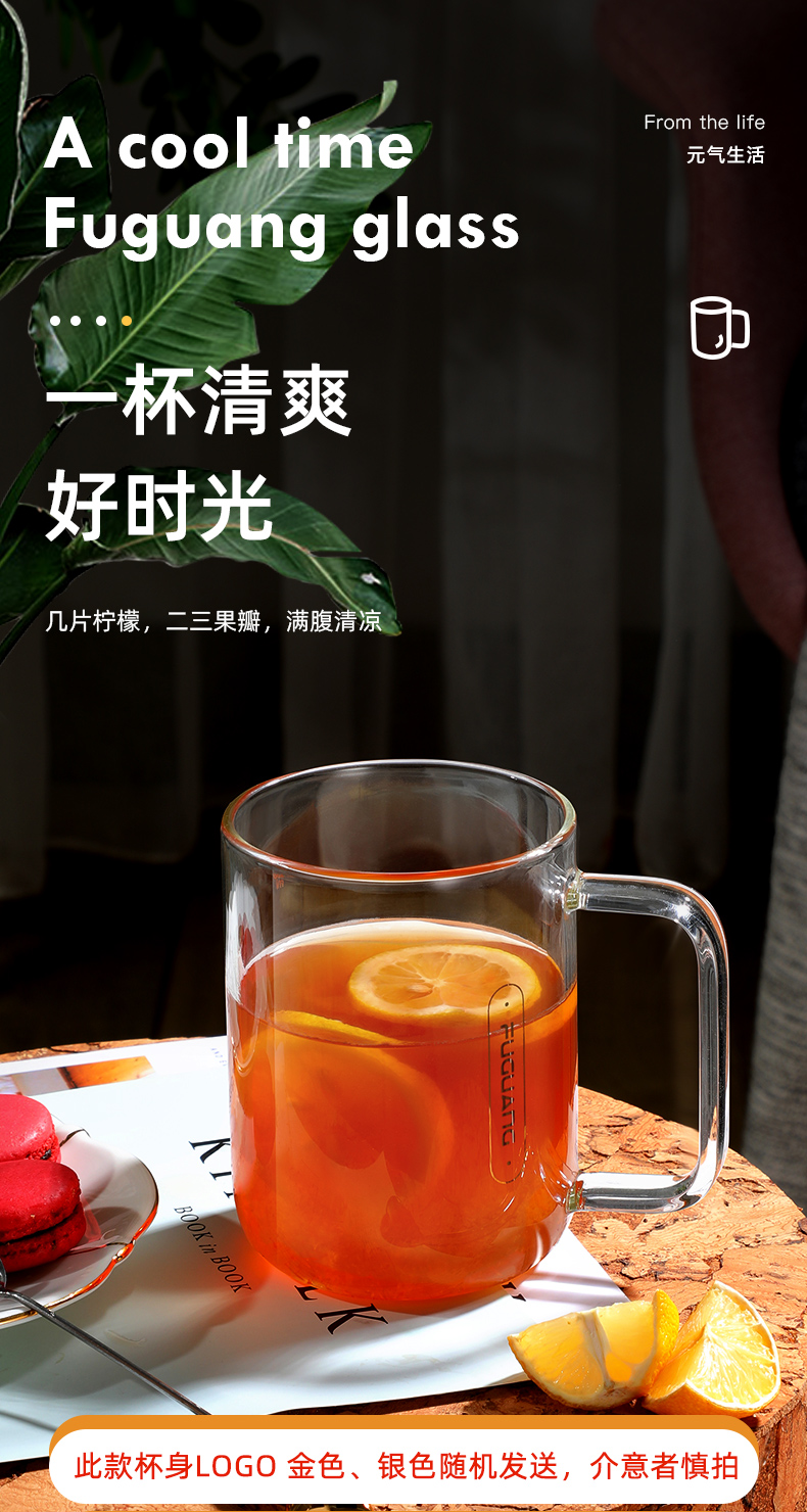 富光高硼硅玻璃杯花茶杯子单层果汁杯牛奶杯带把带刻度水杯男女