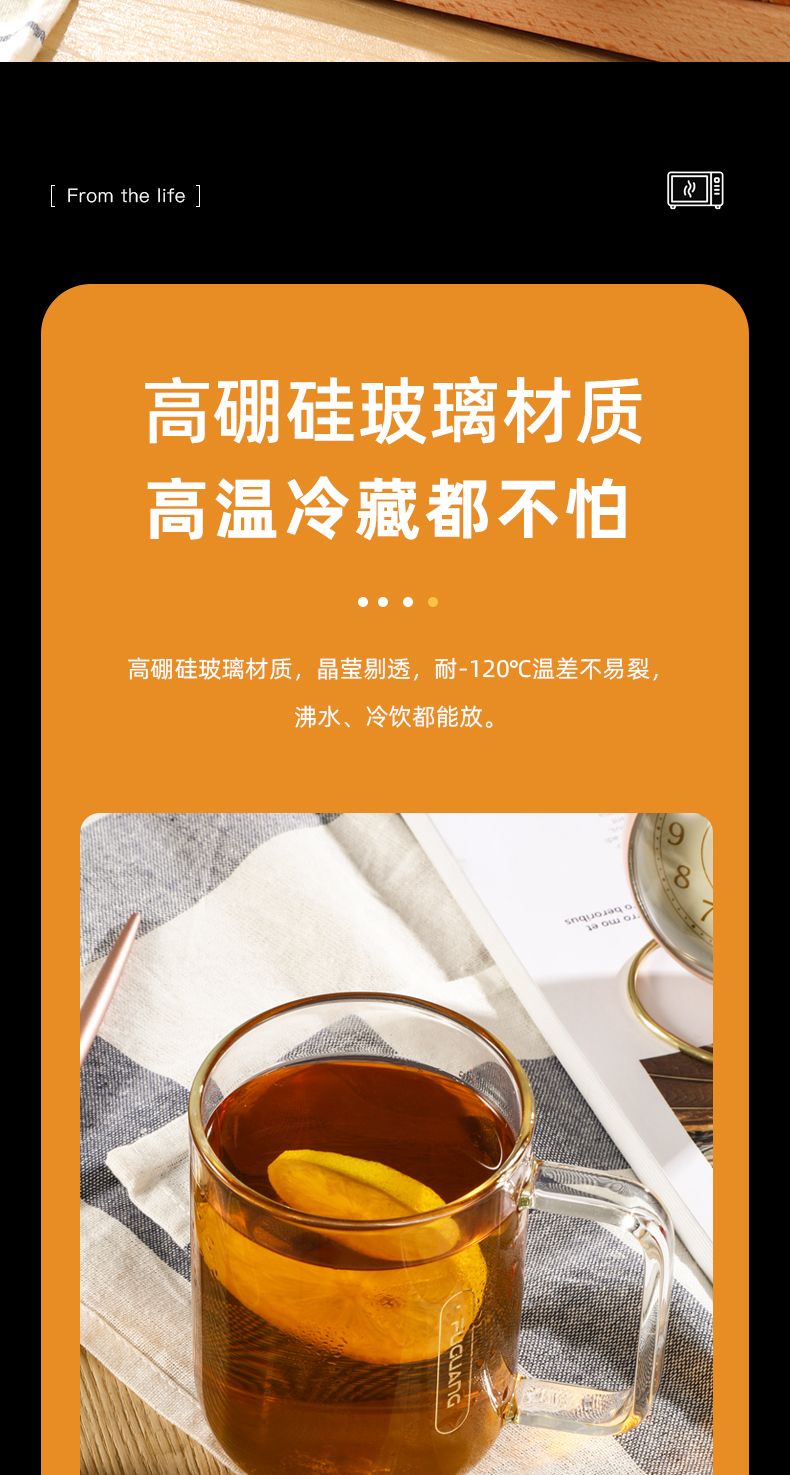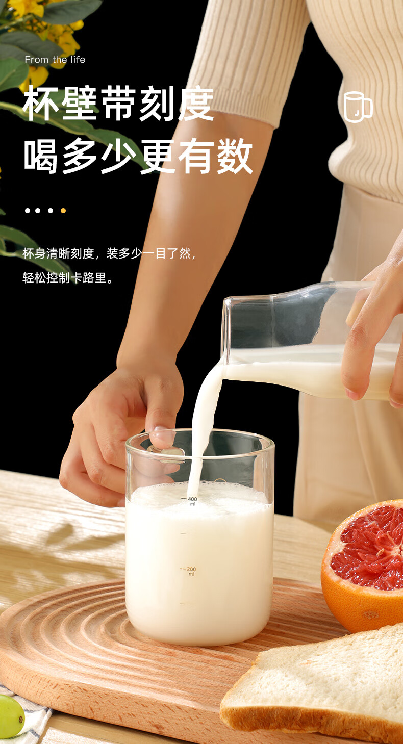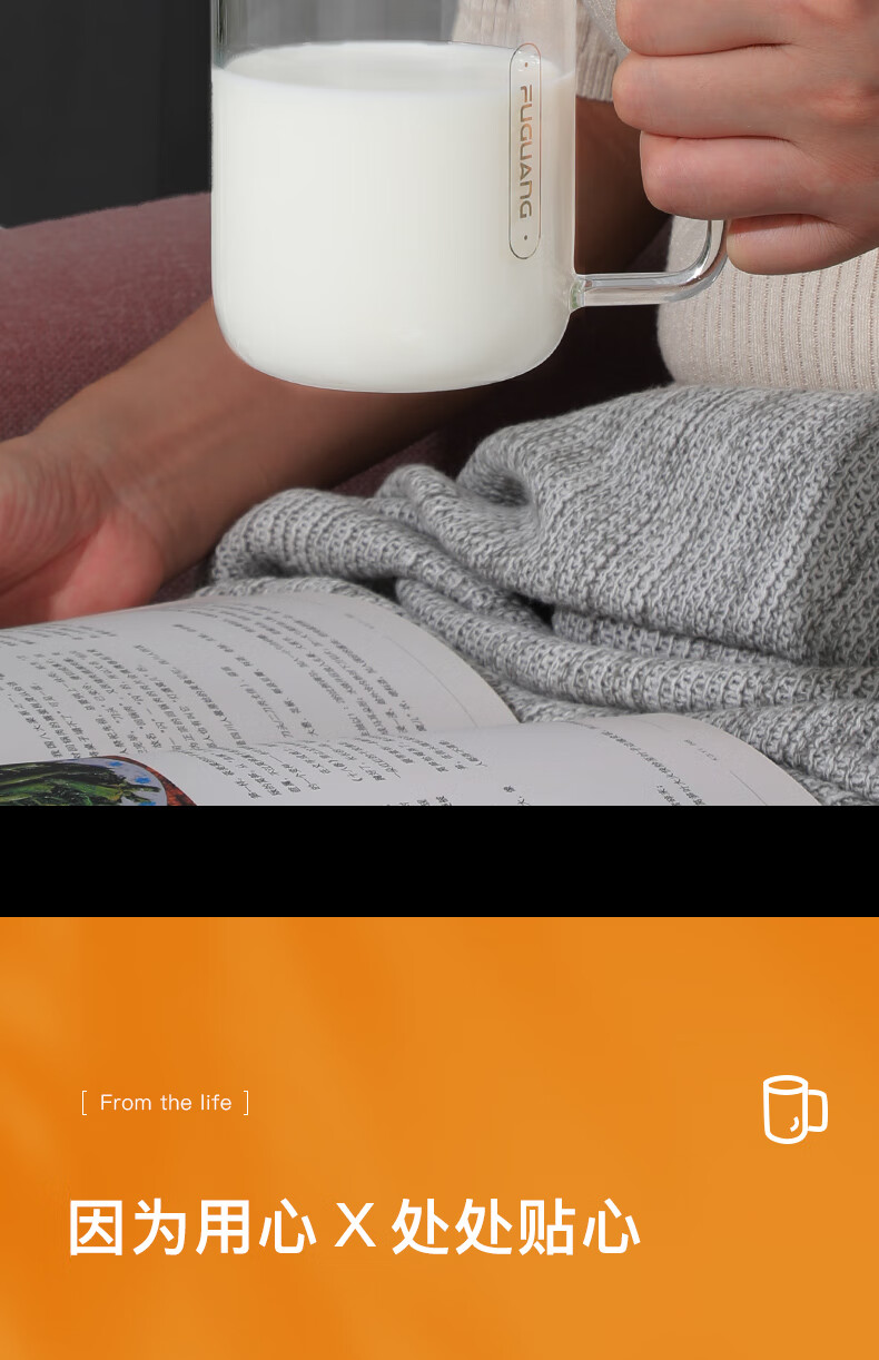 富光高硼硅玻璃杯花茶杯子单层果汁杯牛奶杯带把带刻度水杯男女