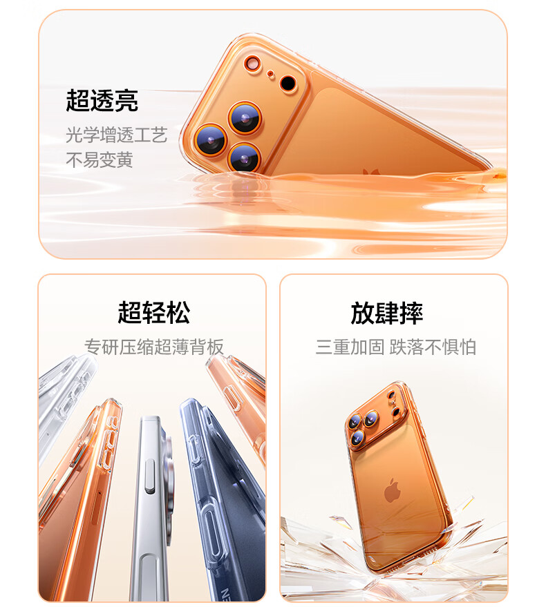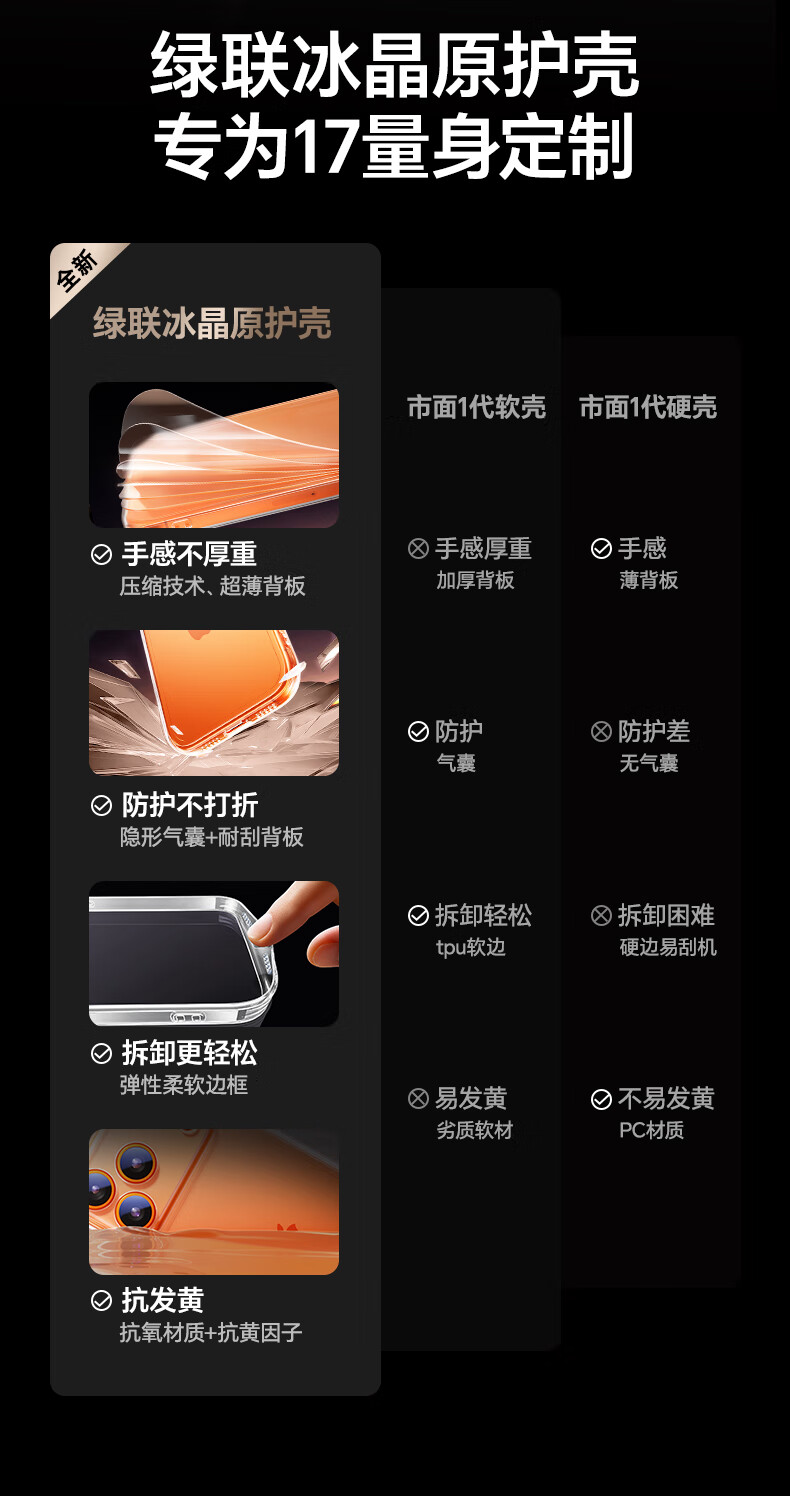 绿联【相机键全包|软边不伤机】适用iphone17Pro手机壳苹果17Pro保护套超薄散热气囊防摔全包透明抗黄