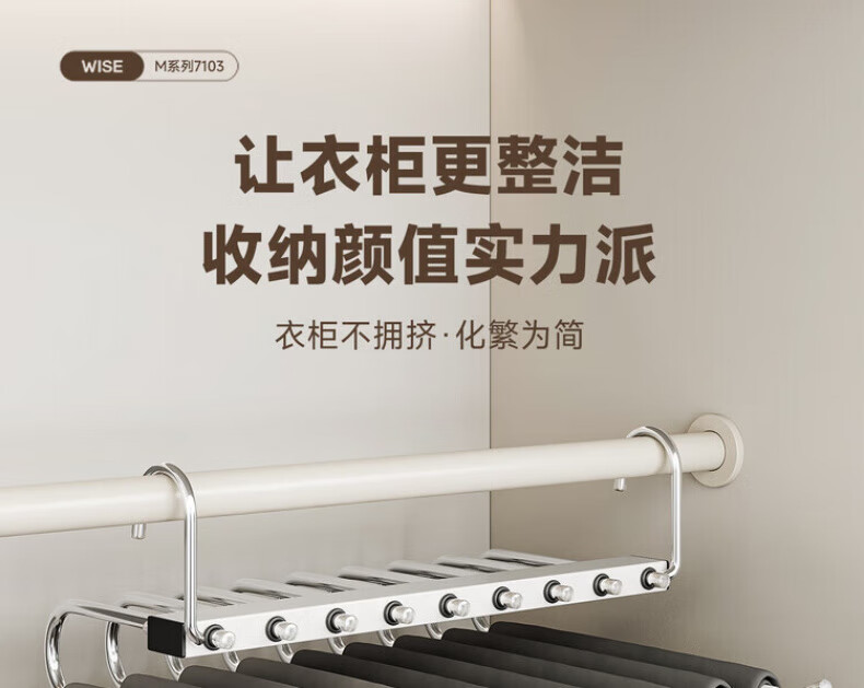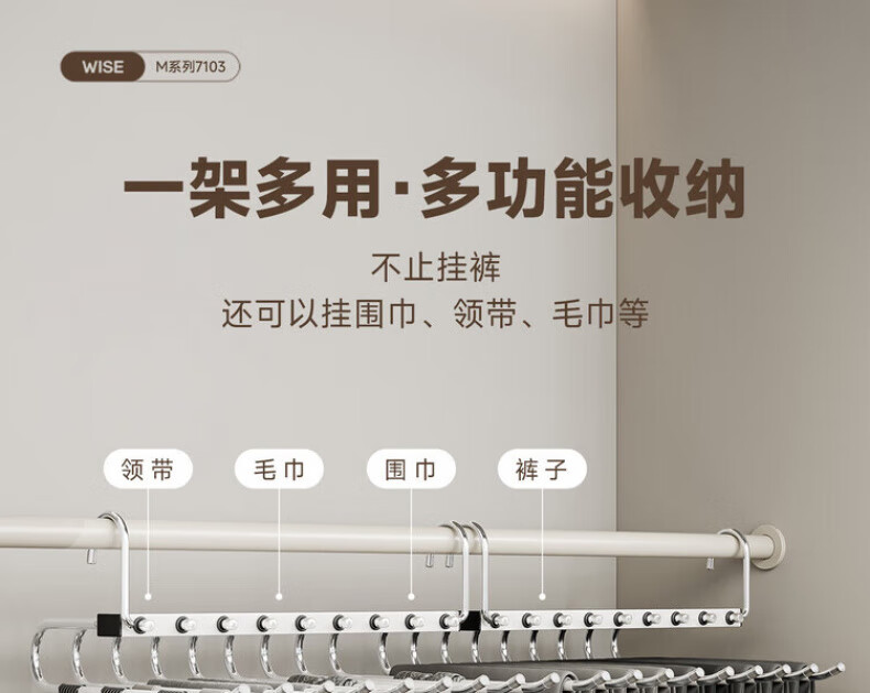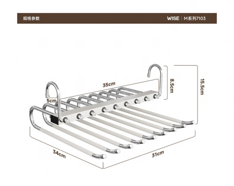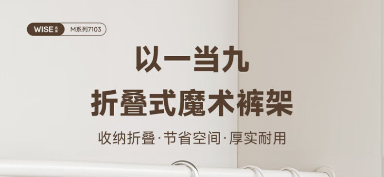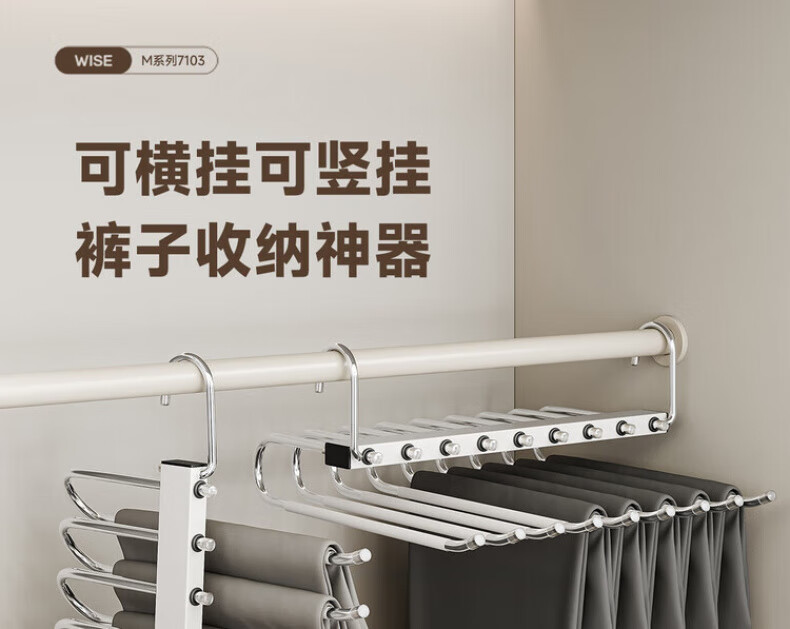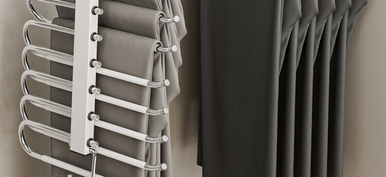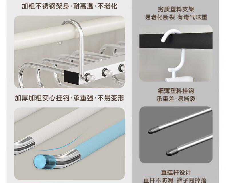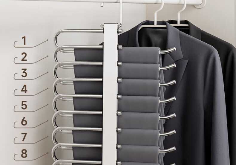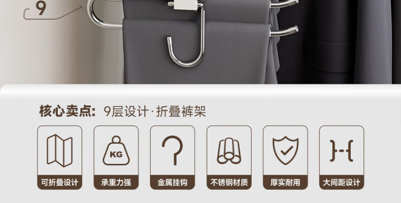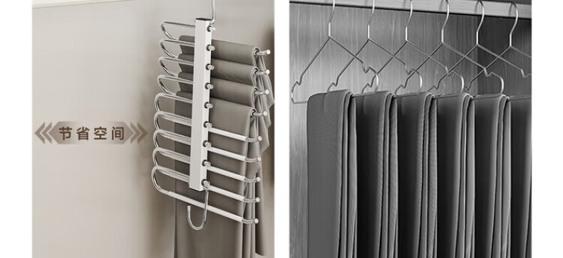 DEATKN德国裤子收纳神器折叠裤架多功能家用多层裤挂裤夹衣架专用架无痕 实心挂钩 全不锈钢材质 9杆 横竖可挂9件 奶油白 25新 2个