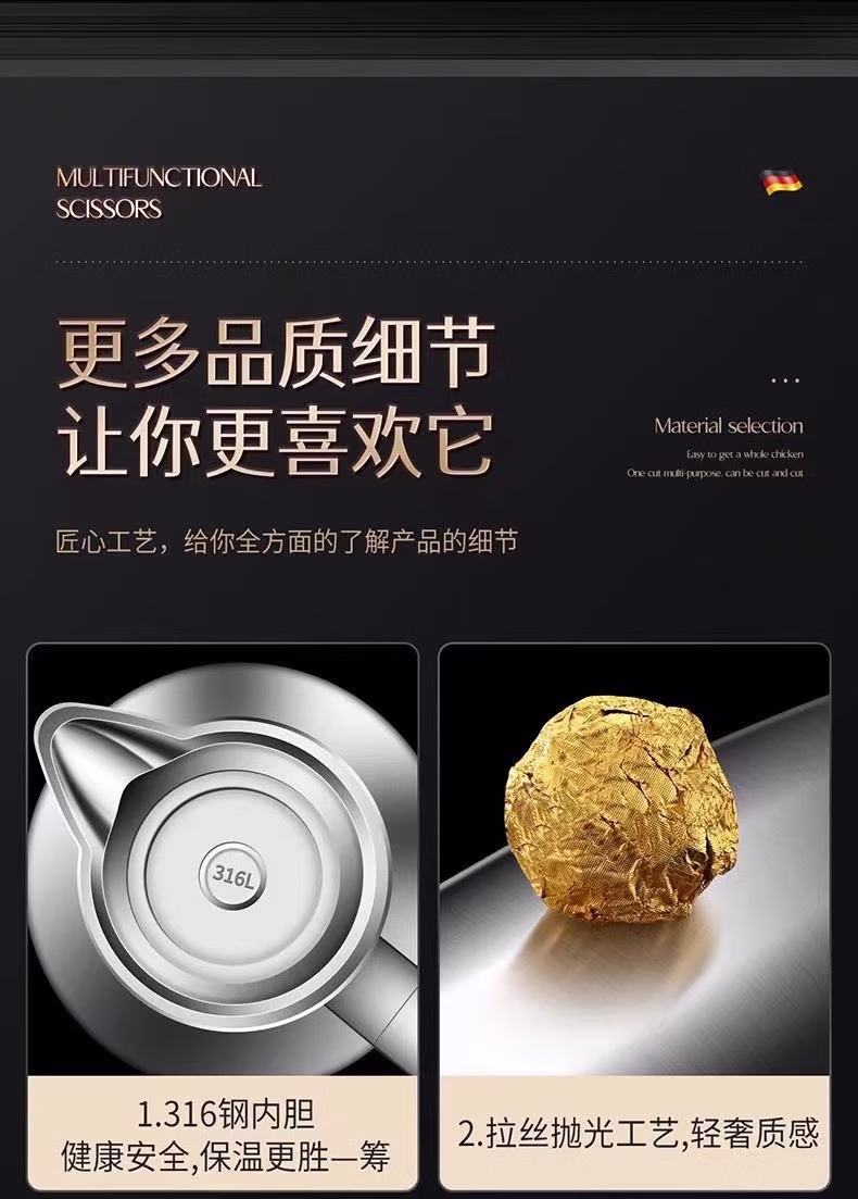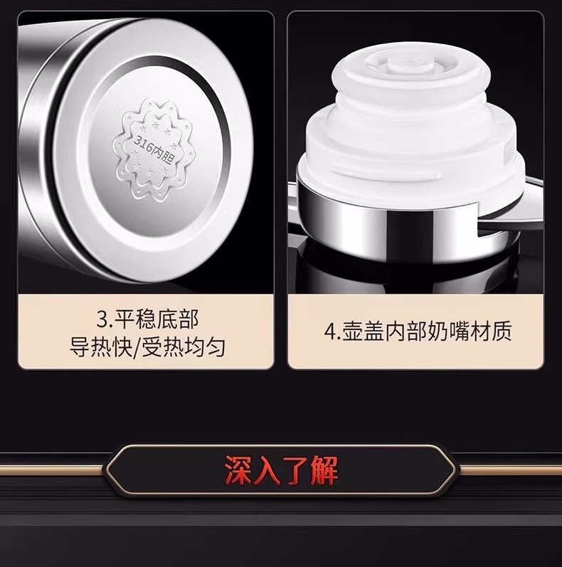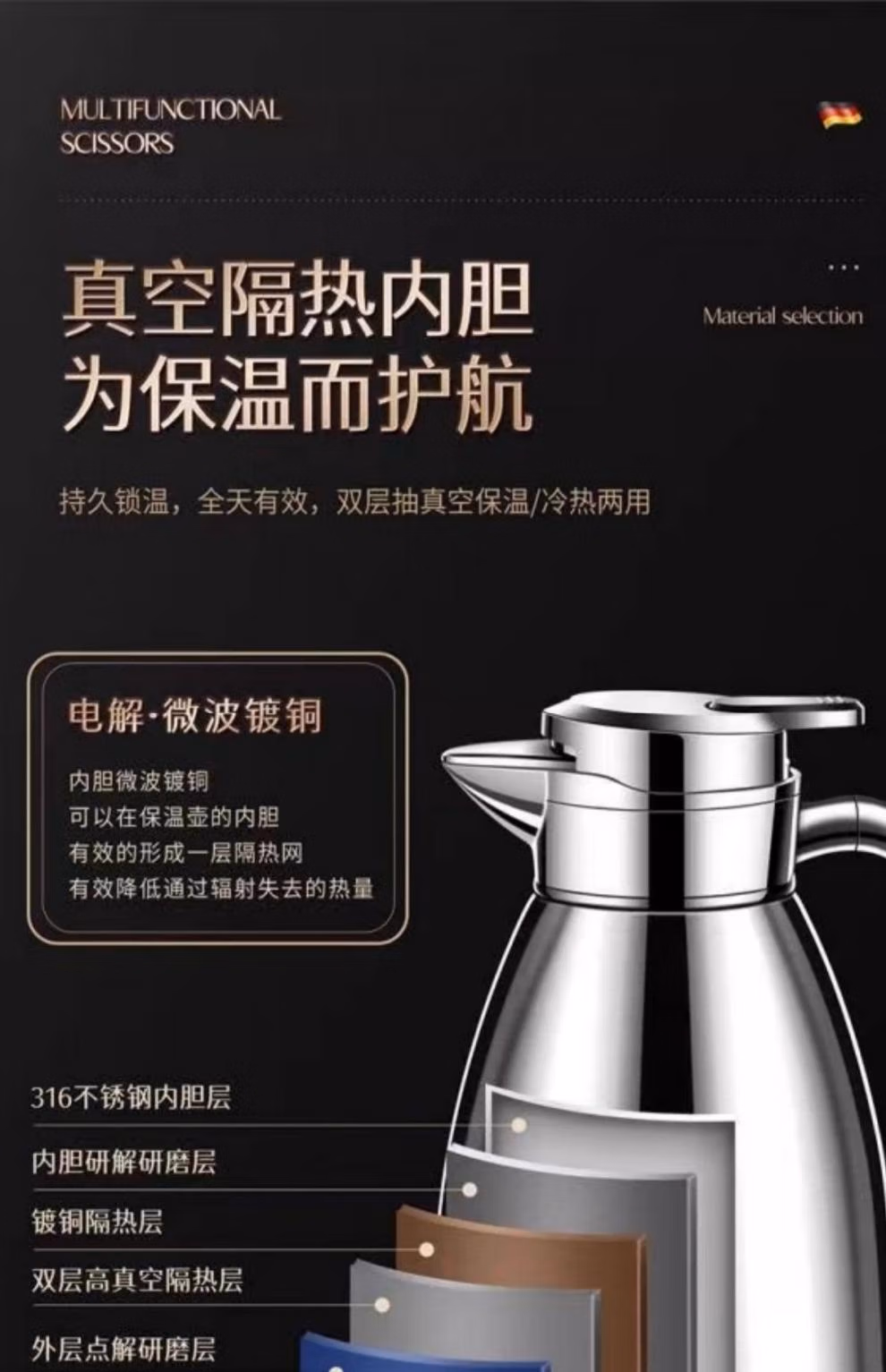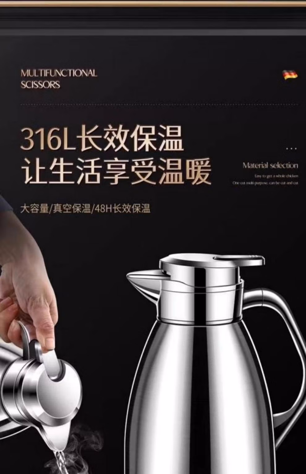 DEATKN热水保温水壶不锈钢内胆暖水瓶2025新款家用大容量72小时长效保温 宝石红316材质*长效保温24 2.3L