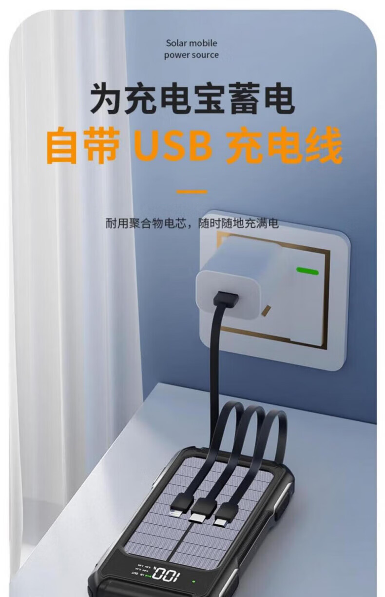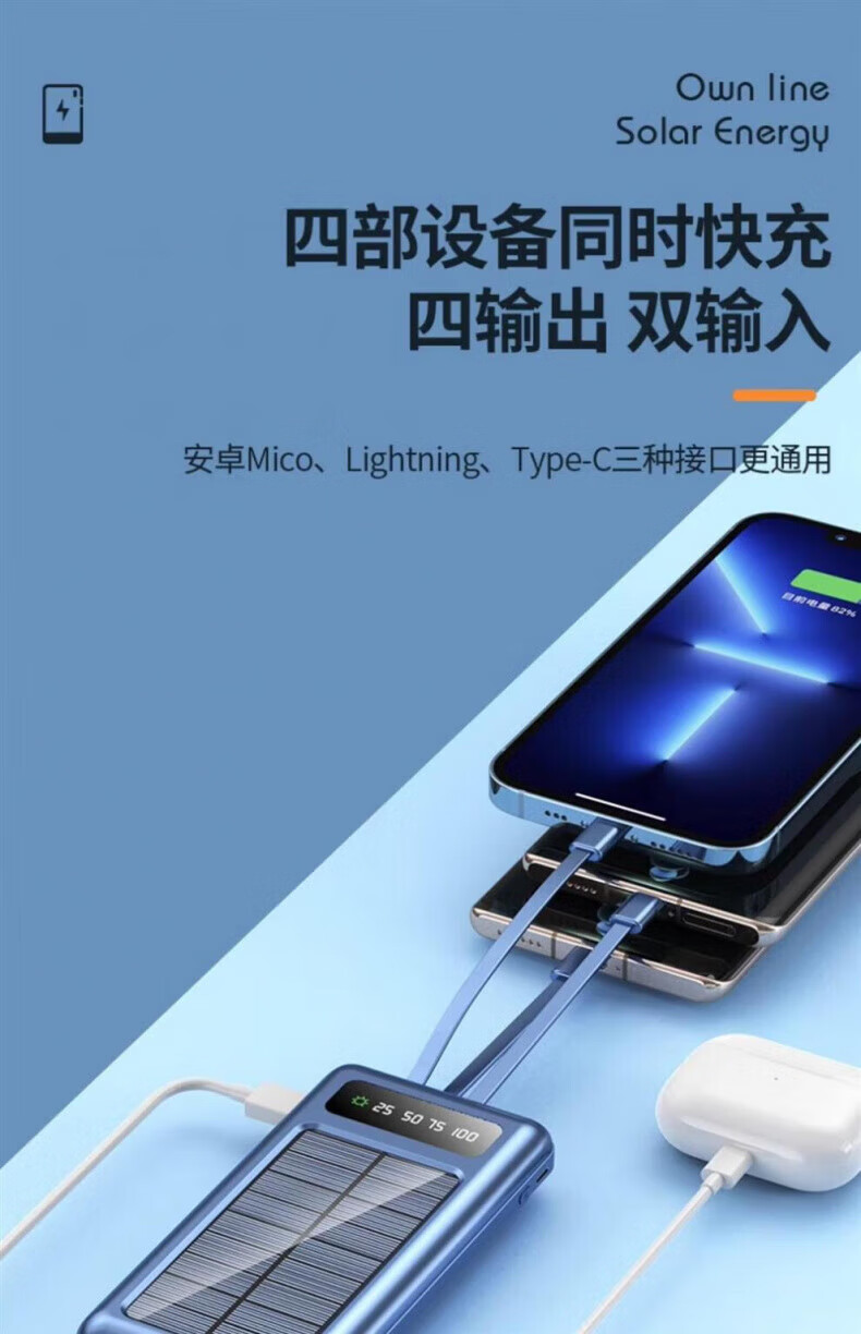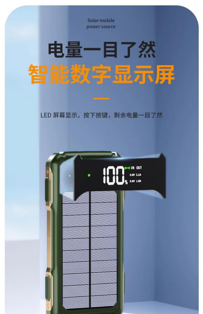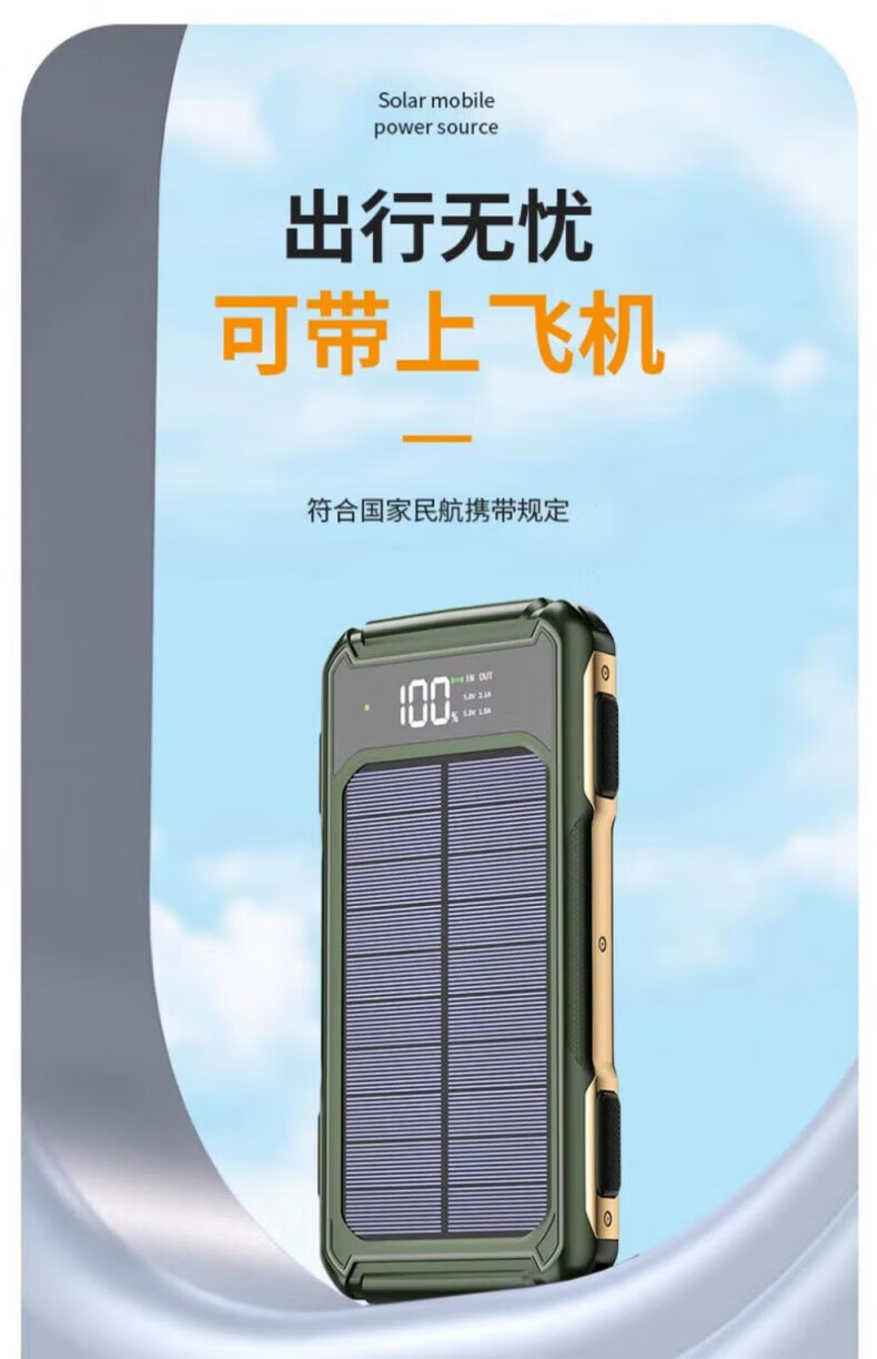 DEATKN德国高端【国家3c认证】太阳能充电宝快充超大容量50000毫 [版]晴天白(90天包退换+五年 20000mAh