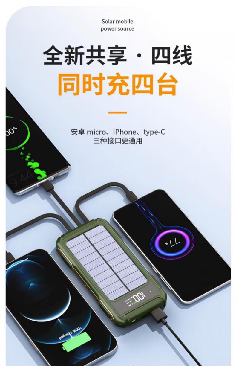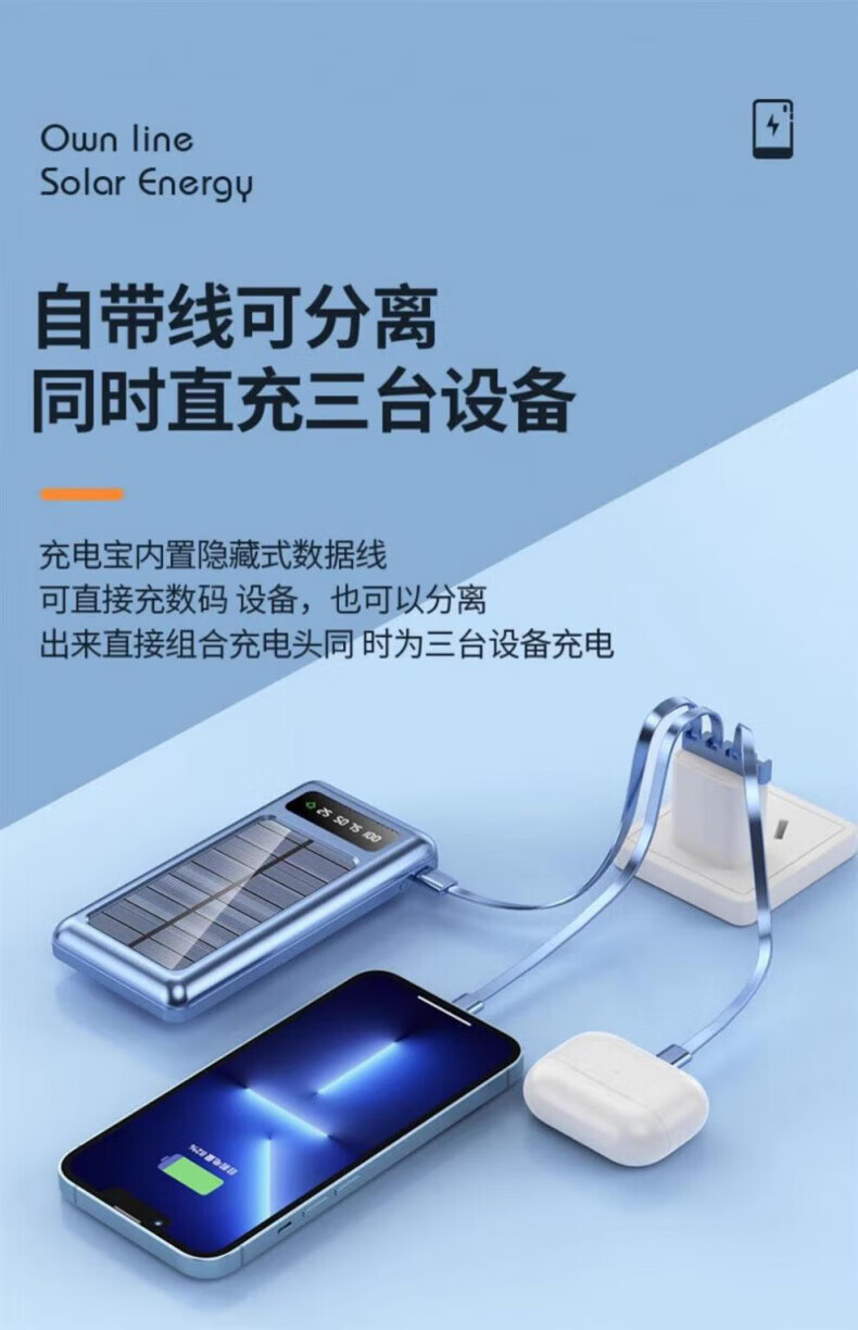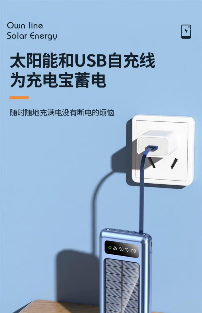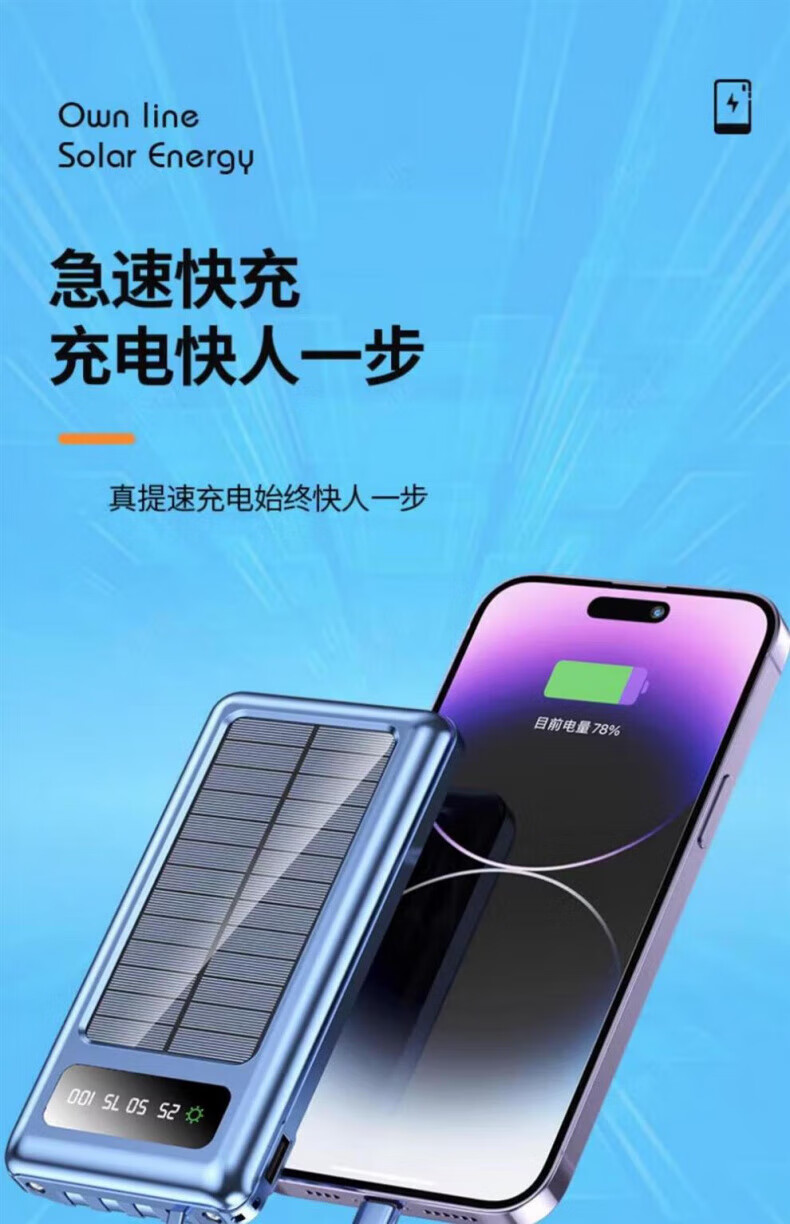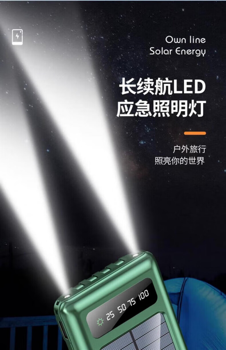 DEATKN德国高端【国家3c认证】太阳能充电宝快充超大容量50000毫 [版]晴天白(90天包退换+五年 20000mAh