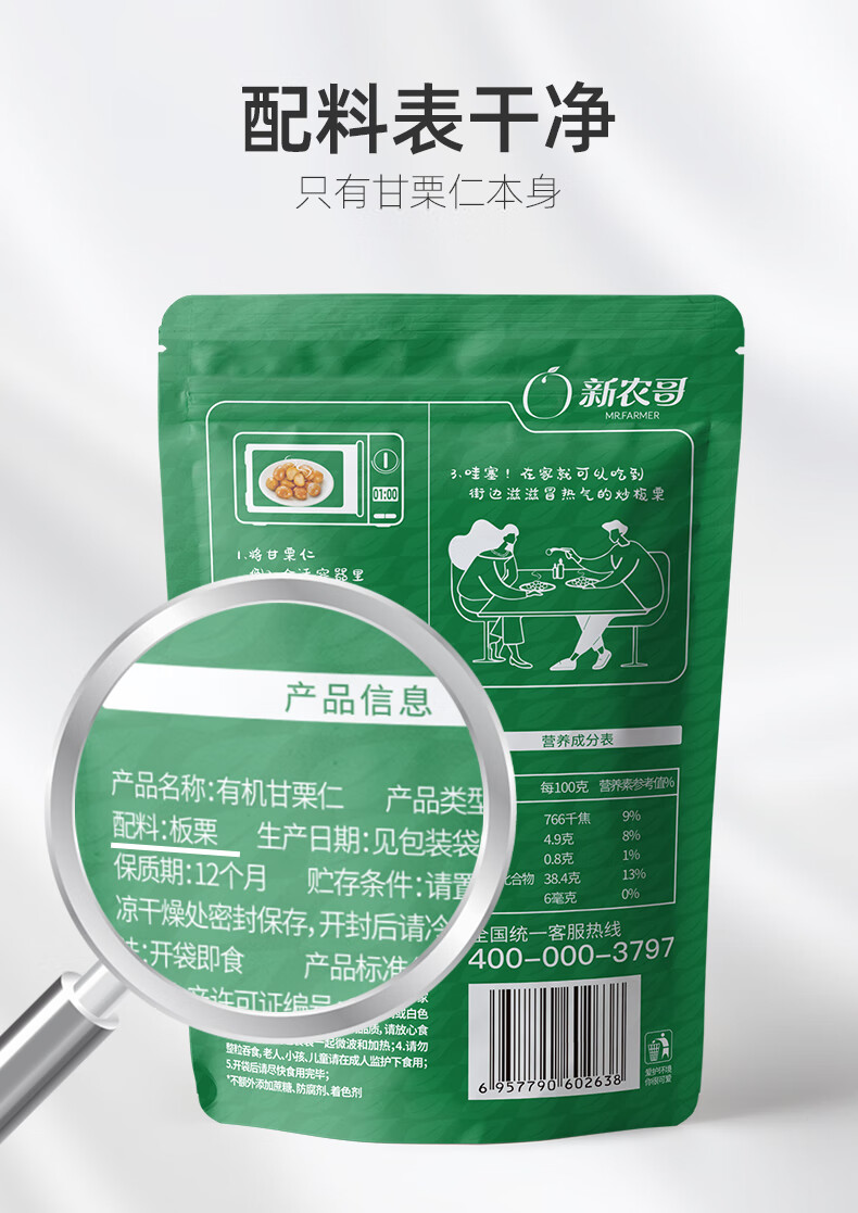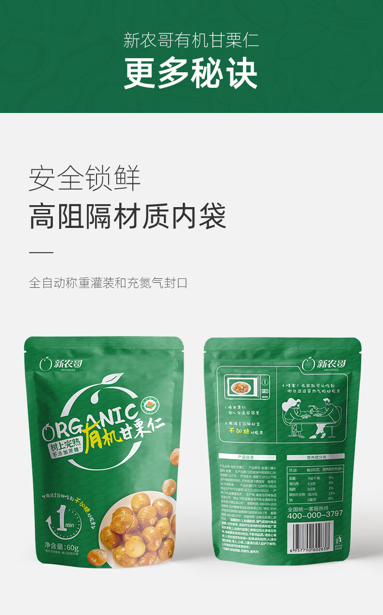 新农哥燕山青龙有机板栗仁去壳栗子即食小包装坚果零食干果 【有机认证】60g*3袋
