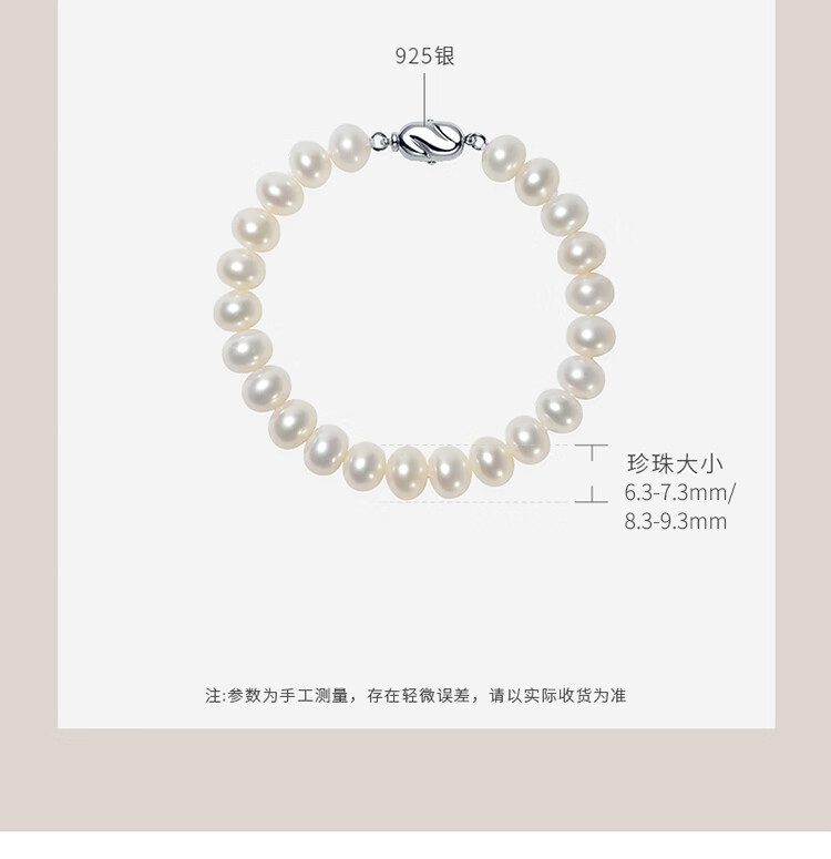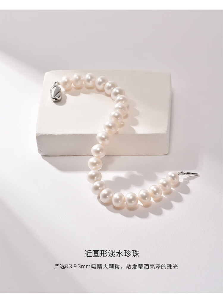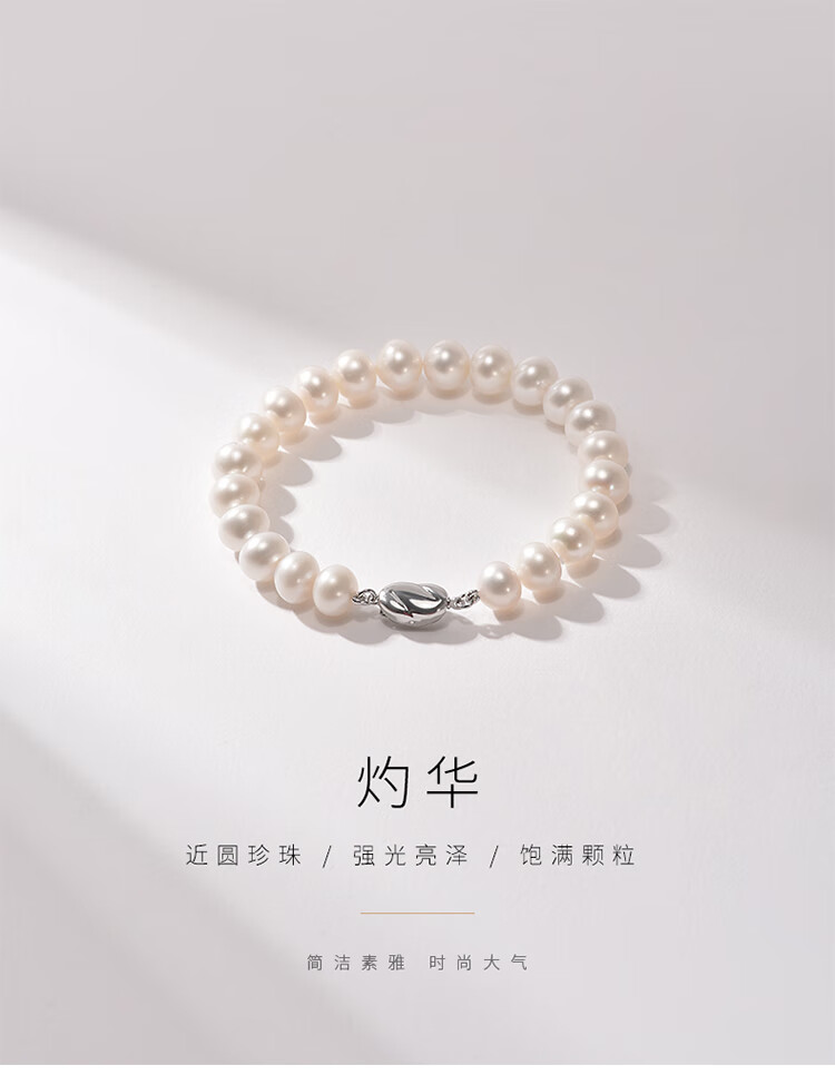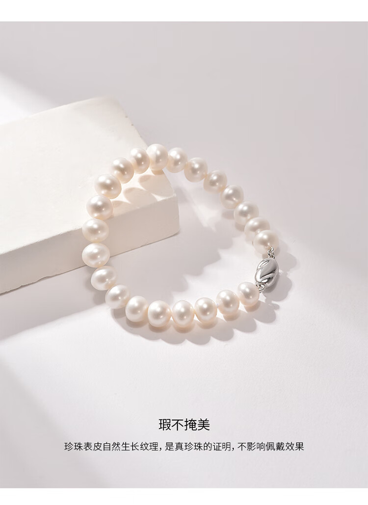 京润珍珠手链灼华S925银淡水珍珠手链女大颗粒简约年轻款送女友礼物