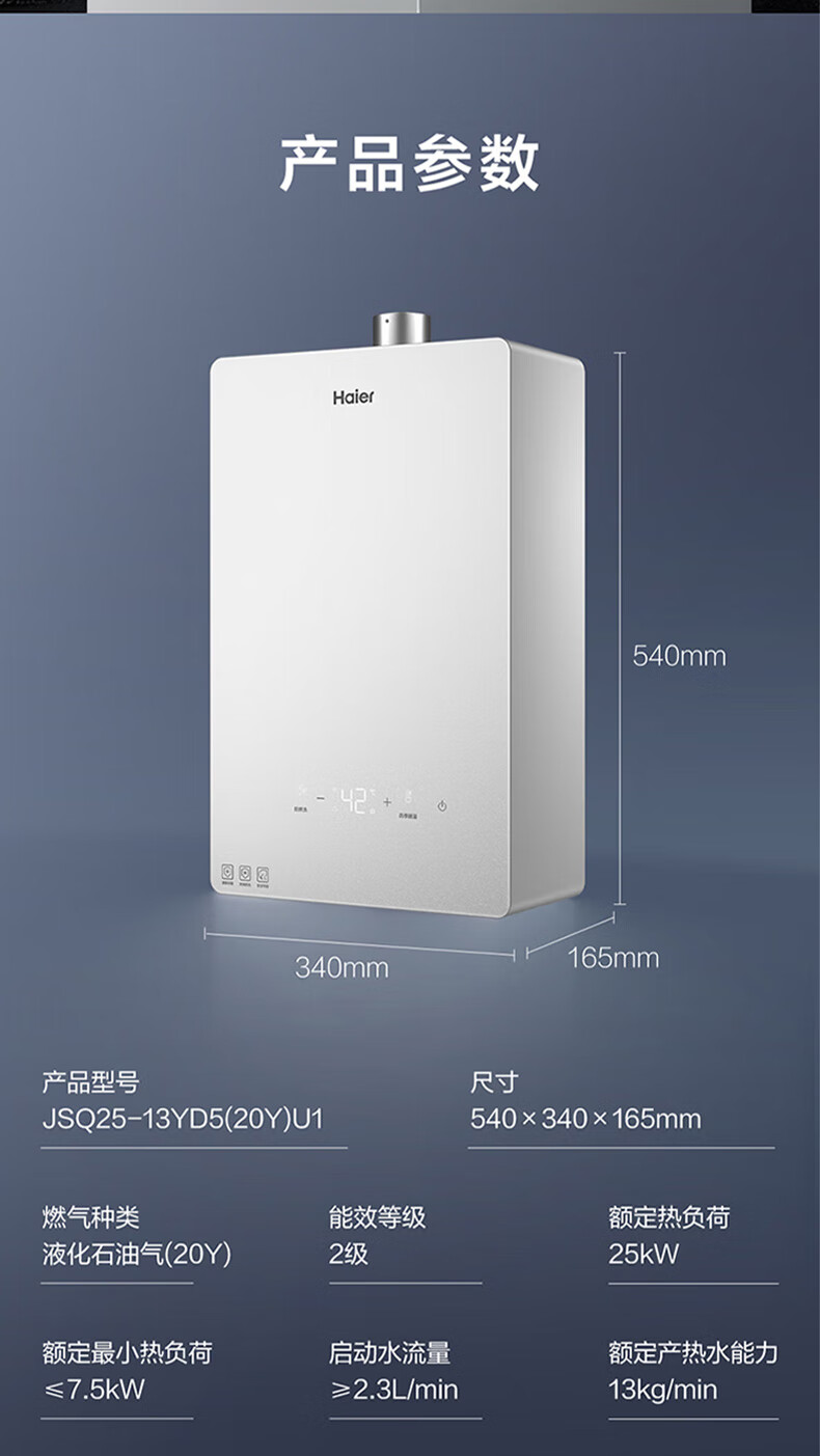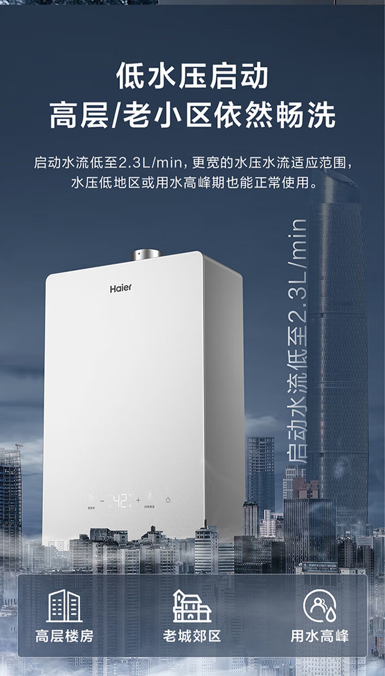 海尔(Haier)智家出品Leader系列液化气热水器家用大水量燃气热水器直流变频低水压启动节能恒温煤气热水器LVS 12L 液化气款热卖榜TOP【LVS】