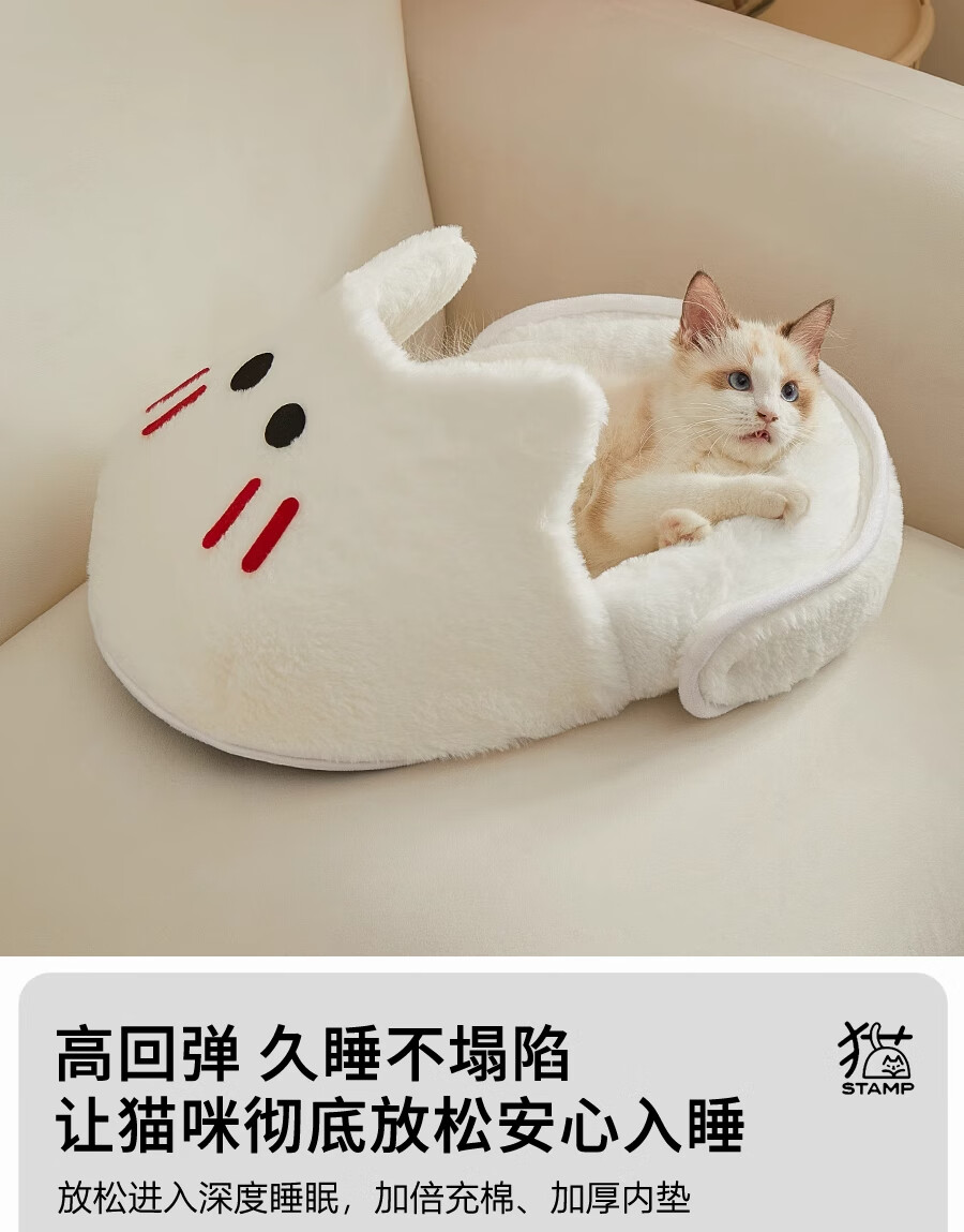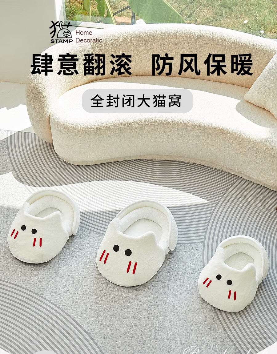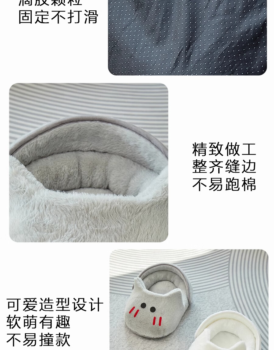 瓜洲牧拖鞋猫窝四季通用半封闭式冬季保暖狗窝宠物睡觉床猫咪垫子沙发床 兔绒拖鞋窝【云朵白】 M 50*34*21 10斤内