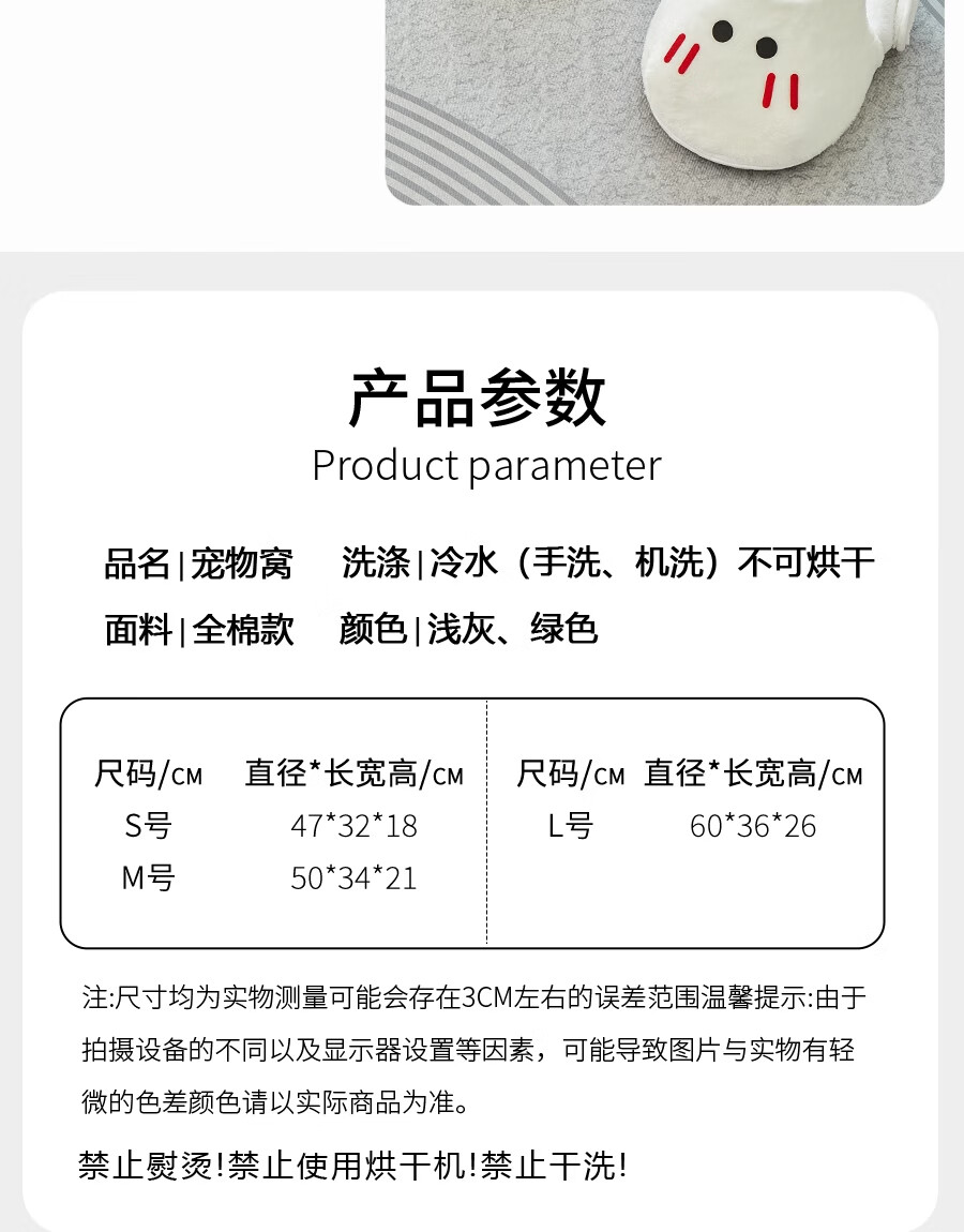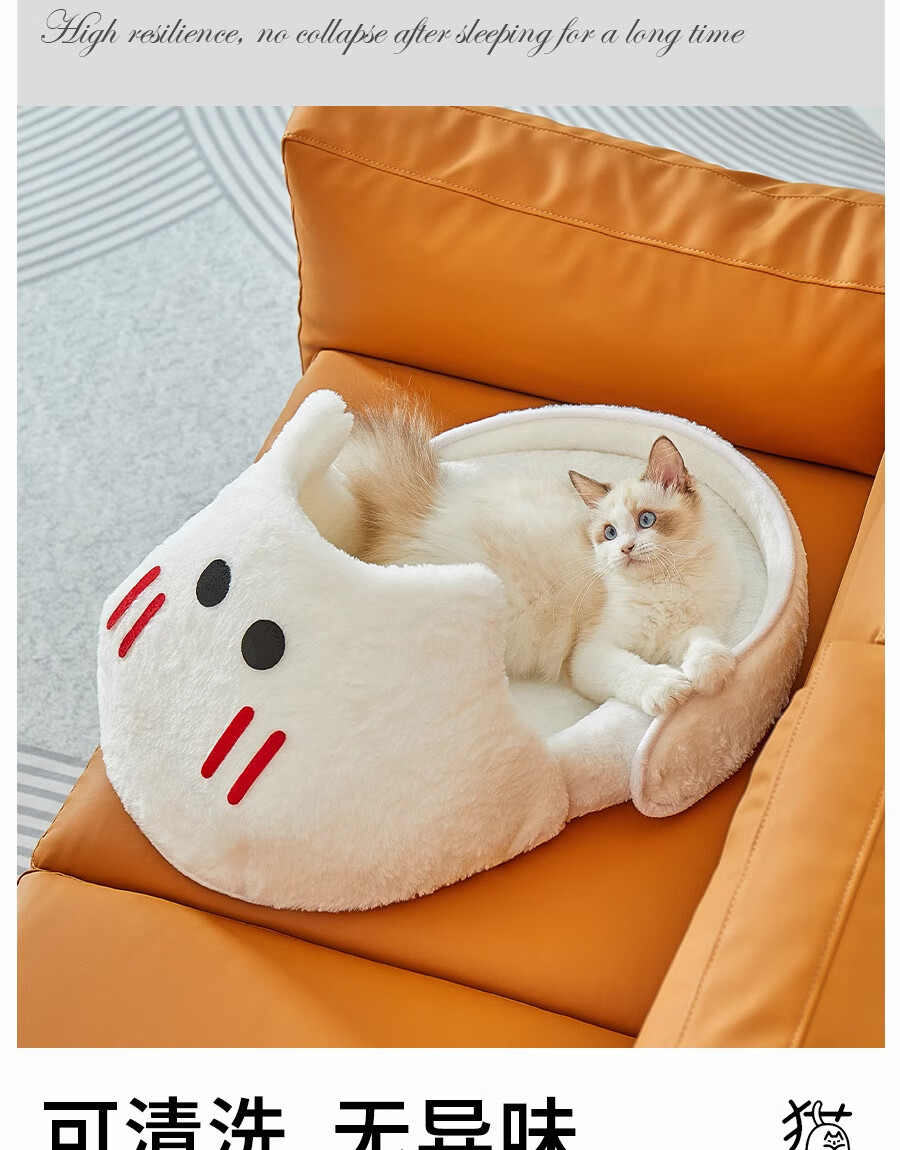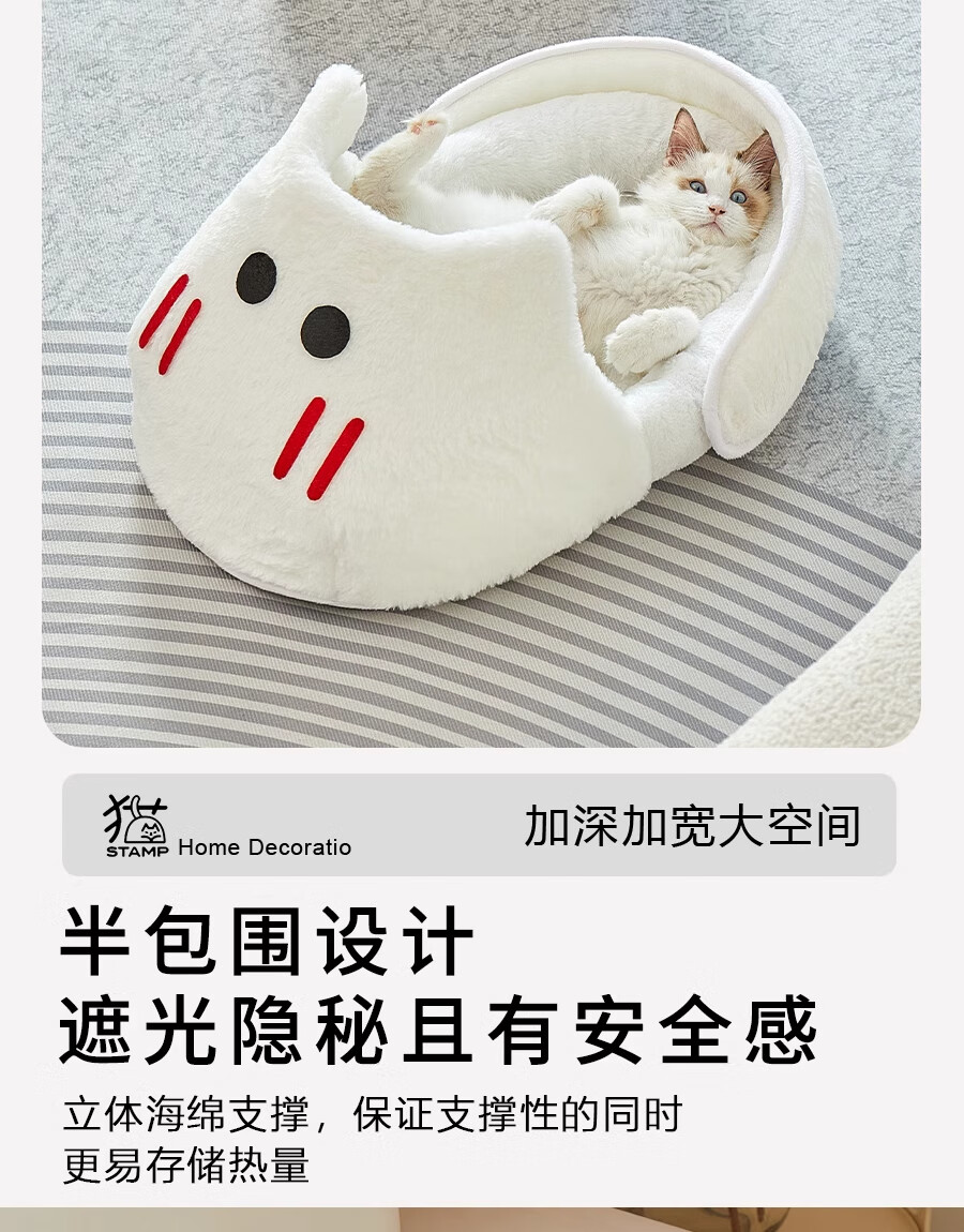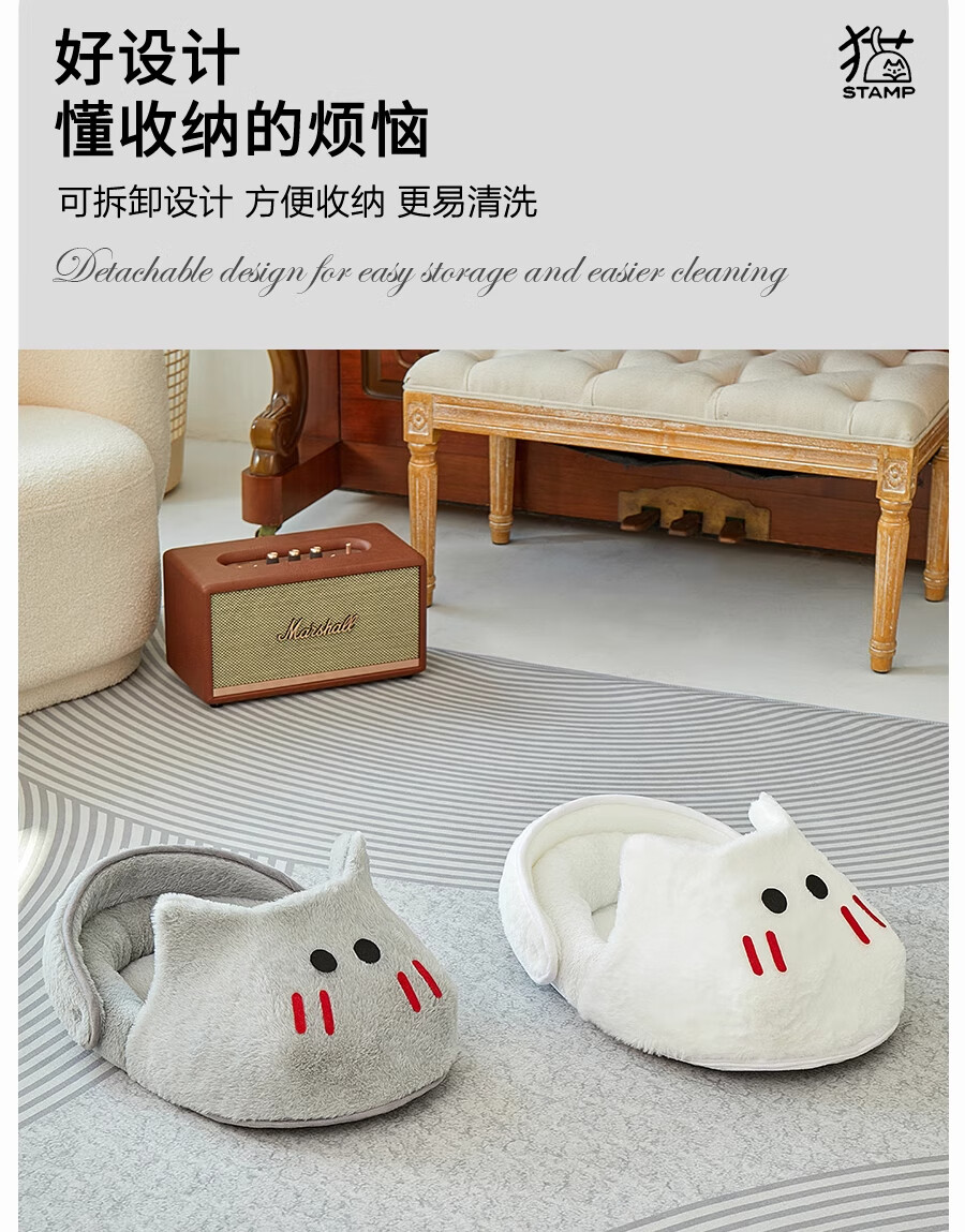 瓜洲牧拖鞋猫窝四季通用半封闭式冬季保暖狗窝宠物睡觉床猫咪垫子沙发床 兔绒拖鞋窝【云朵白】 M 50*34*21 10斤内