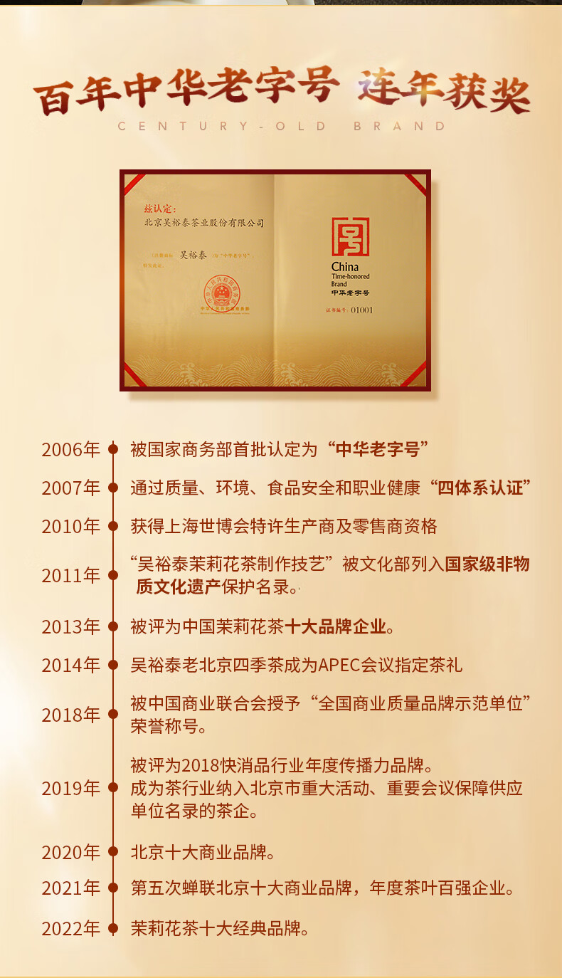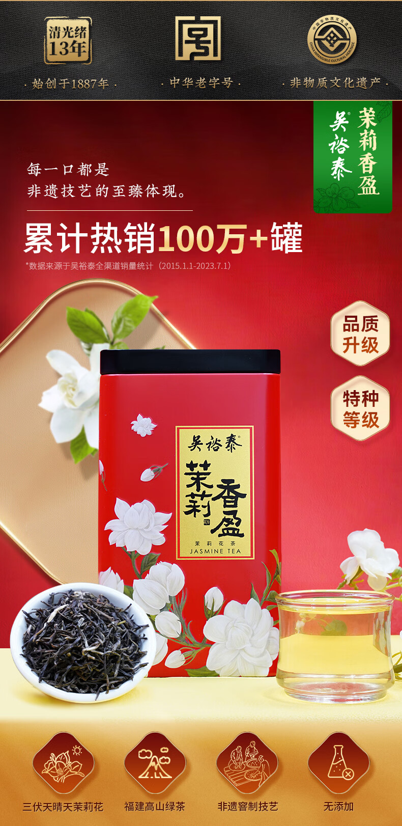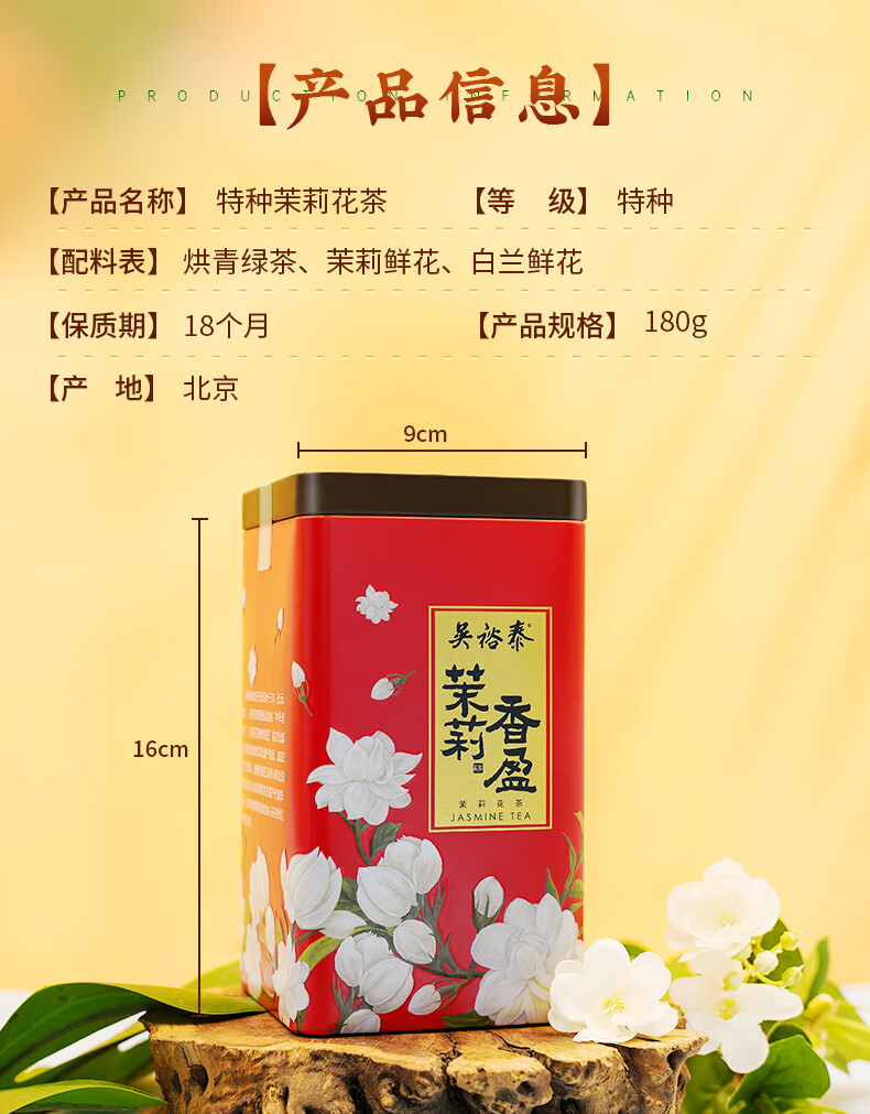 吴裕泰【专享】茉莉花茶特种浓香型六窨含芽口粮茶茉莉香盈180g*4罐组合