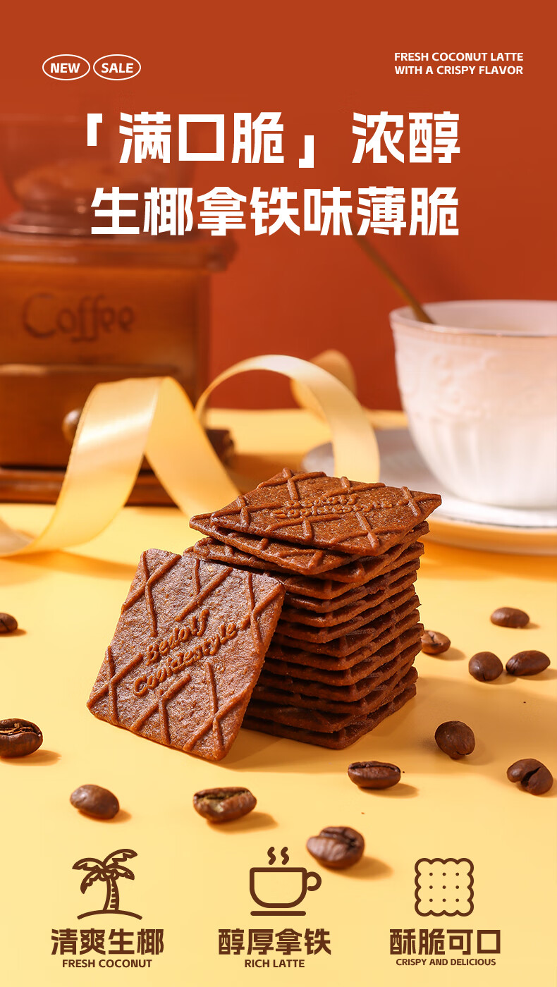 永得利(WIDELY)生椰拿铁薄脆饼干咖啡巧克力味305g 办公室休闲零食品代餐饱腹