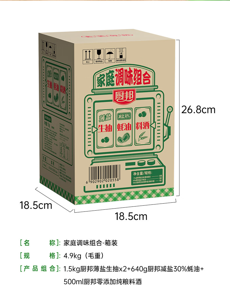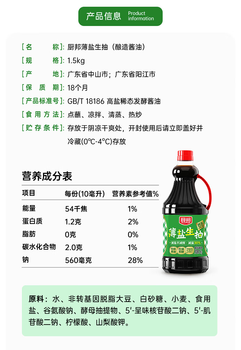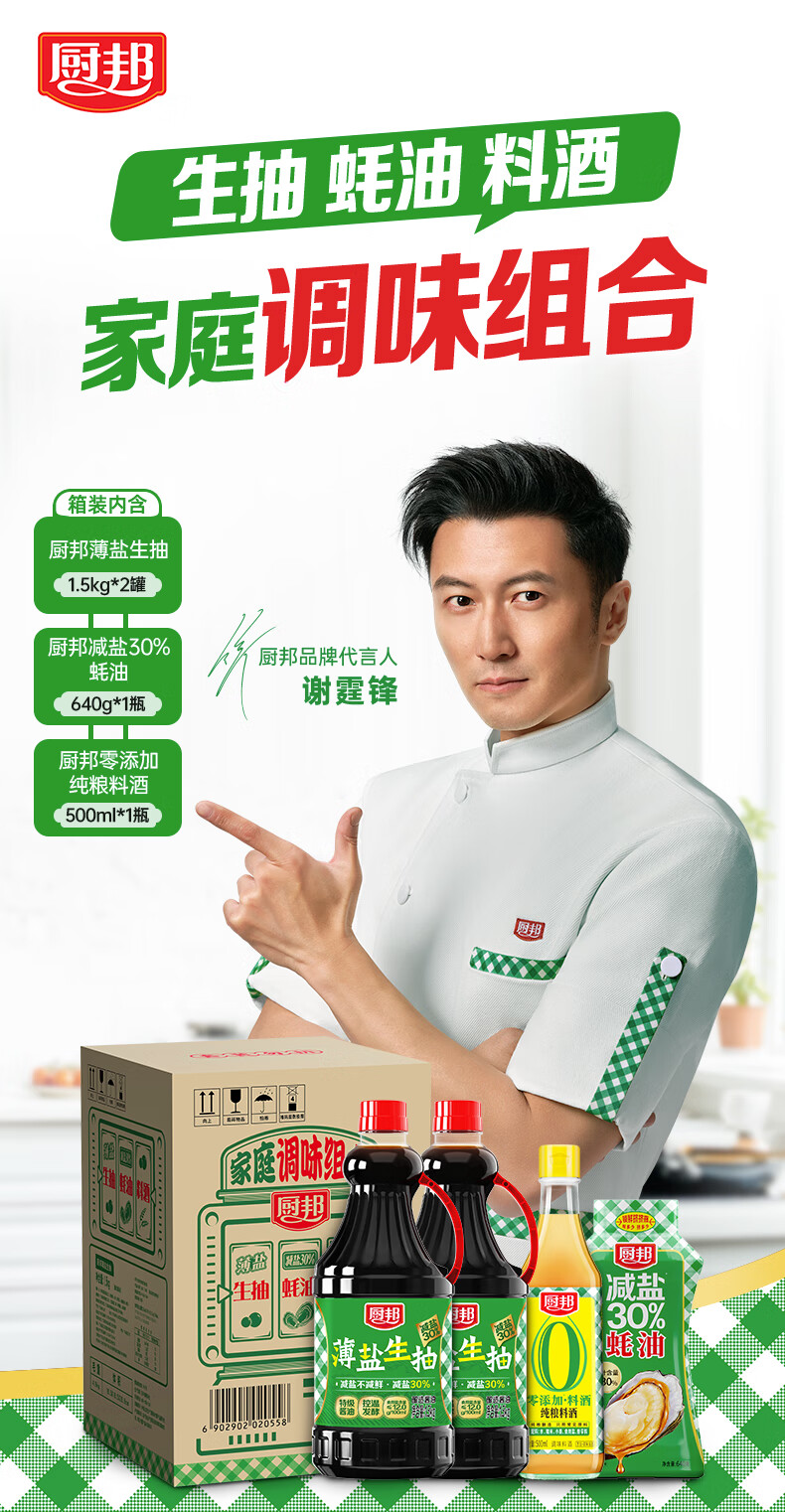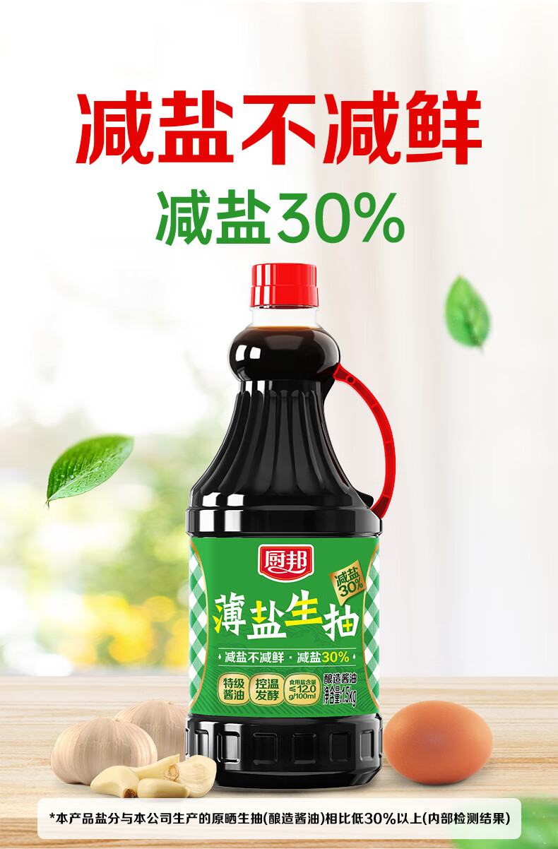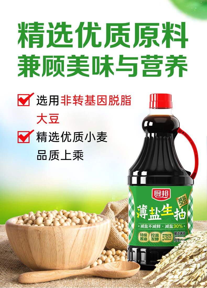 厨邦酱油 薄盐系列 1.5kg薄盐生抽*2+640g减盐蚝油+500ml纯粮料酒