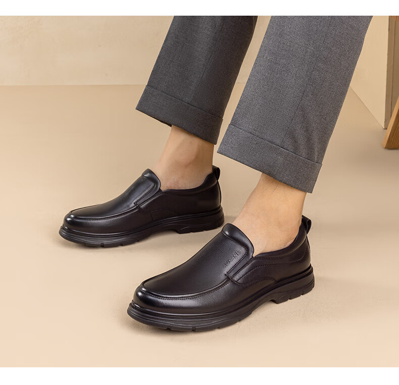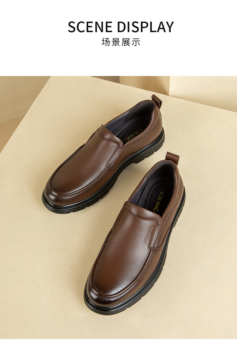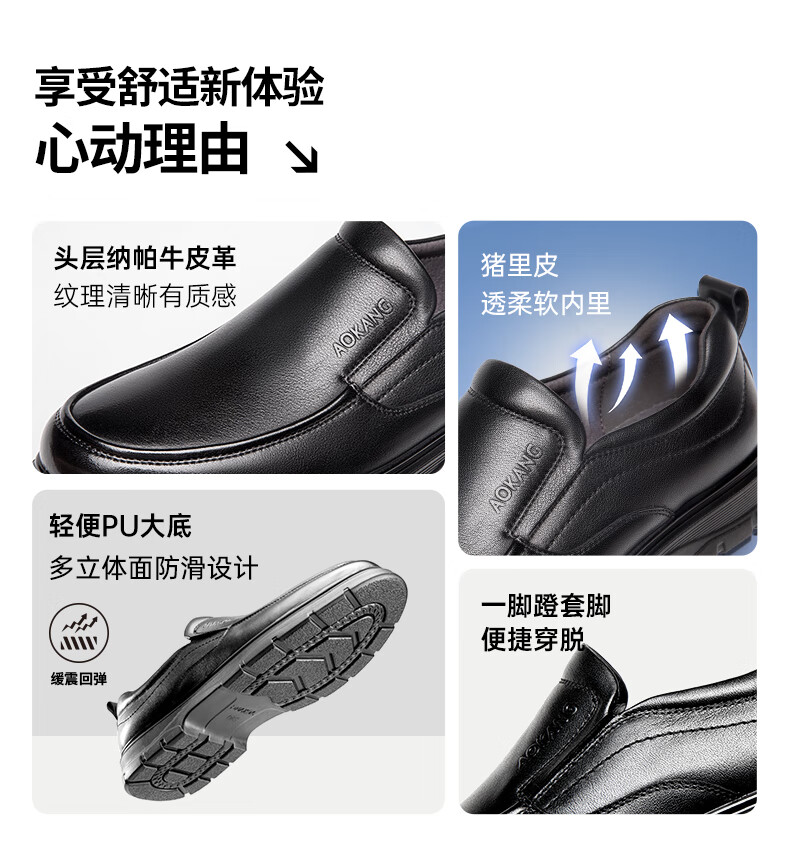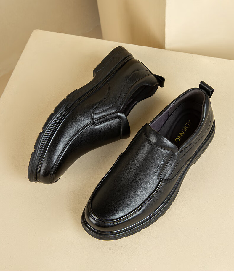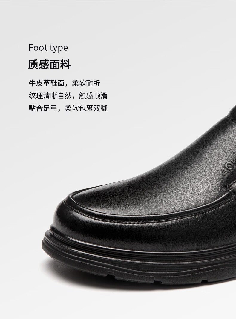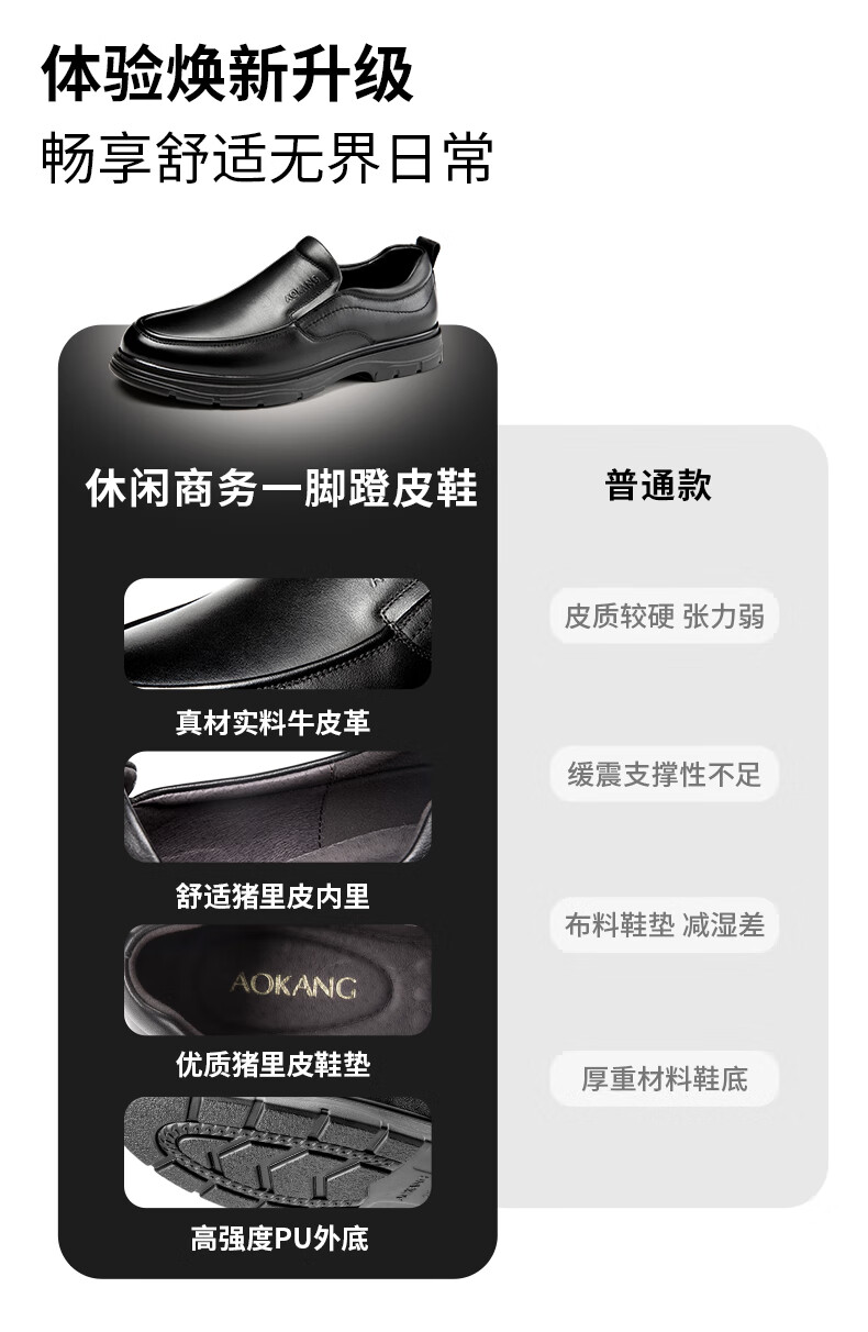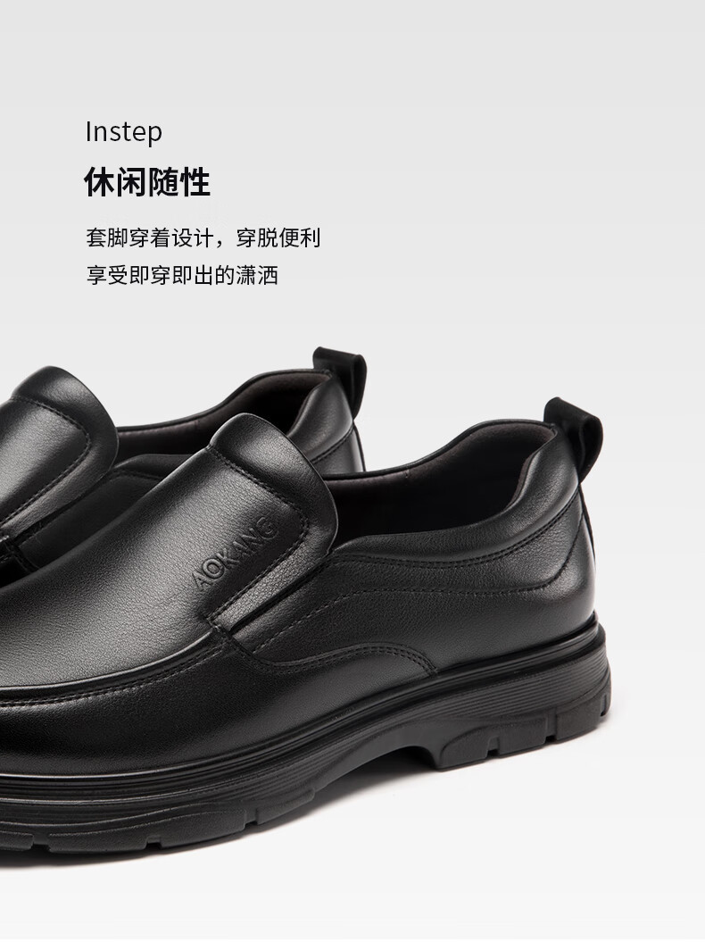 奥康(Aokang)男鞋套脚商务休闲皮鞋男士牛皮软底一脚蹬皮鞋黑色42码