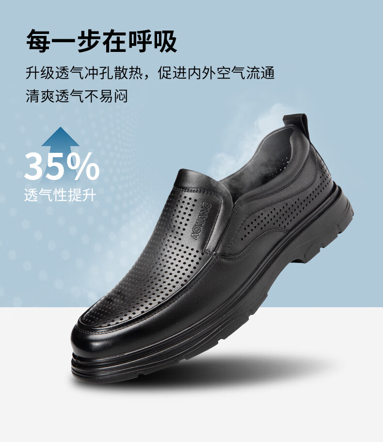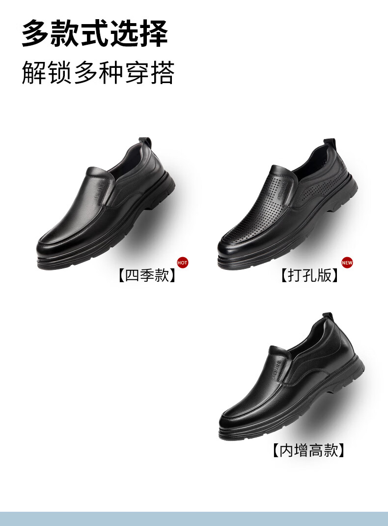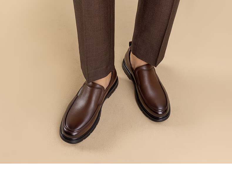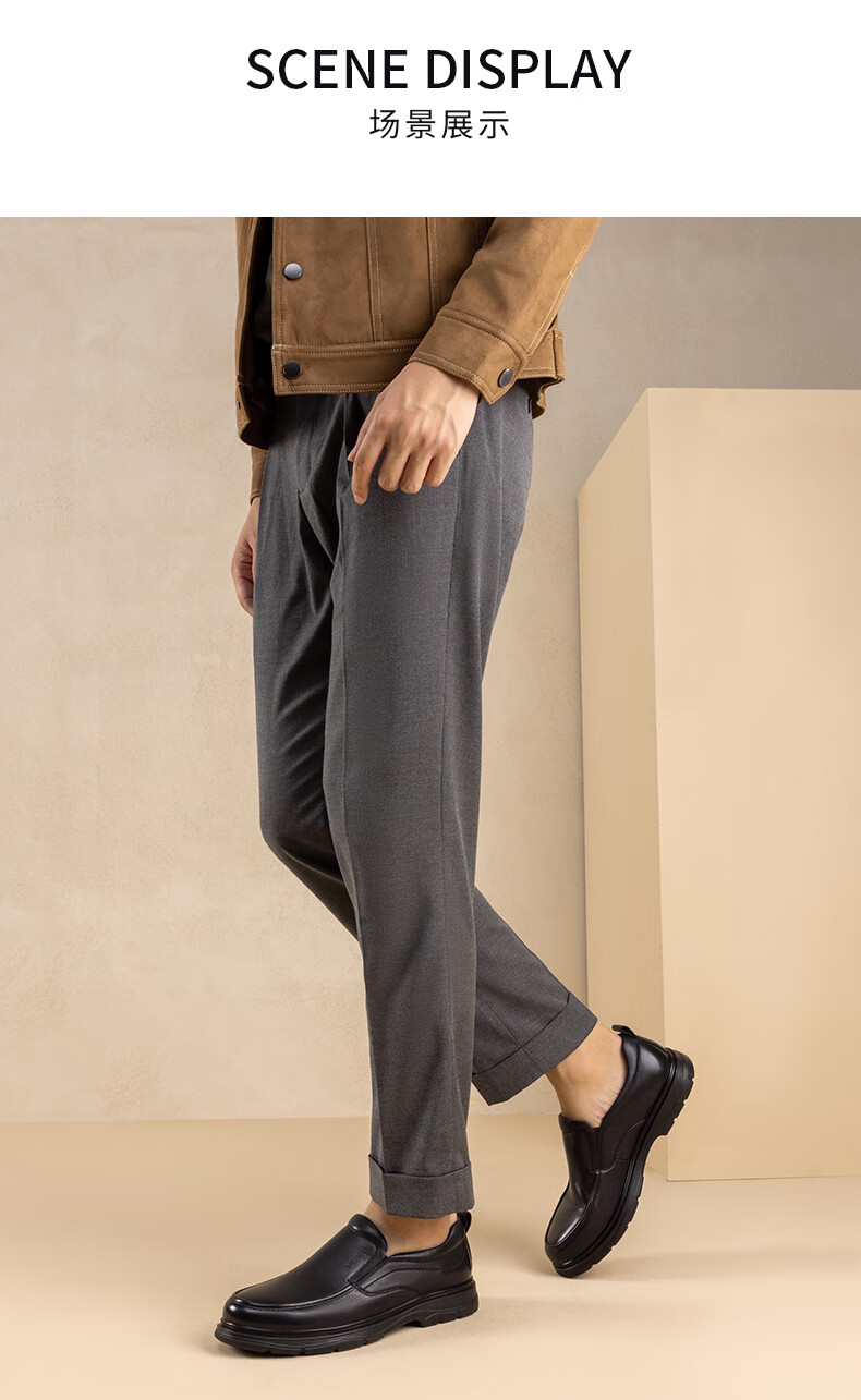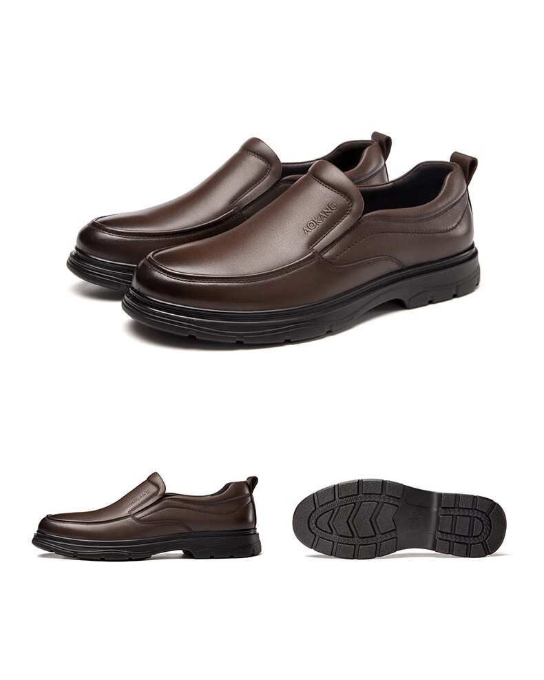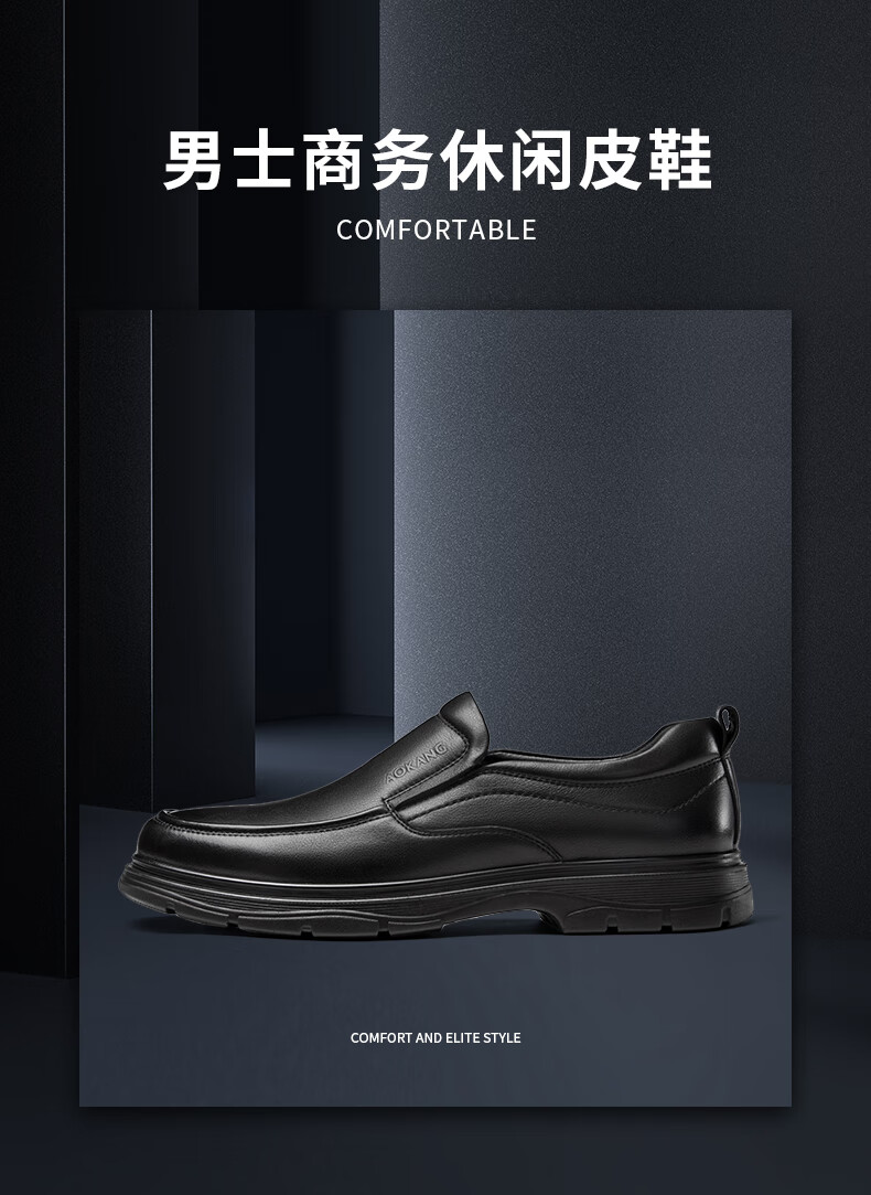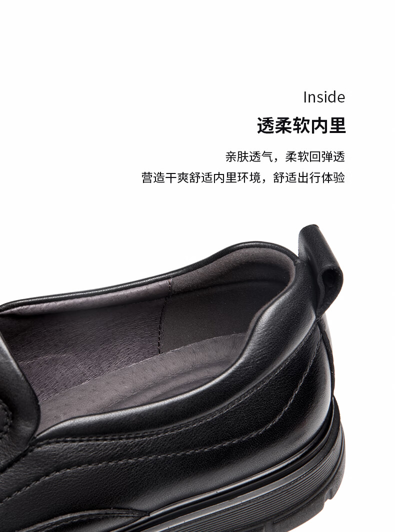 奥康(Aokang)男鞋套脚商务休闲皮鞋男士牛皮软底一脚蹬皮鞋黑色42码