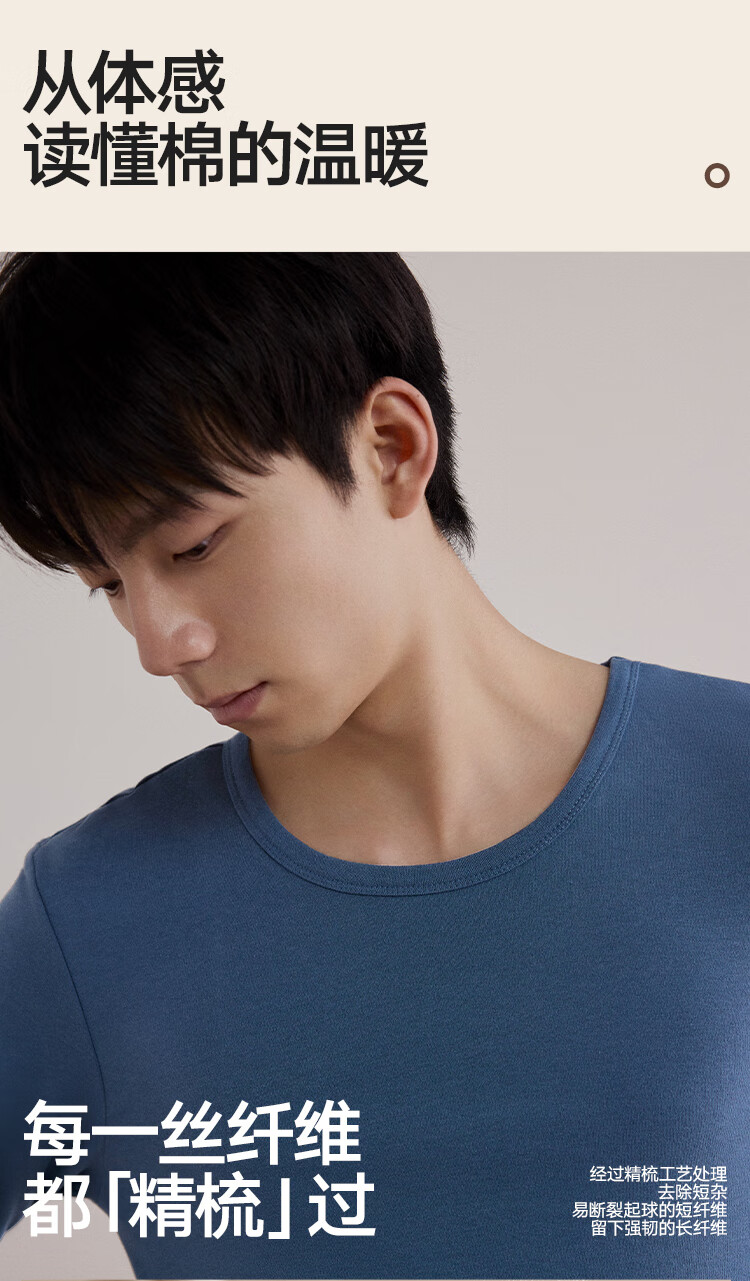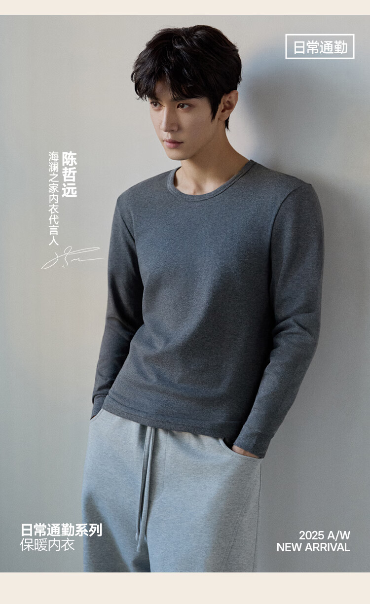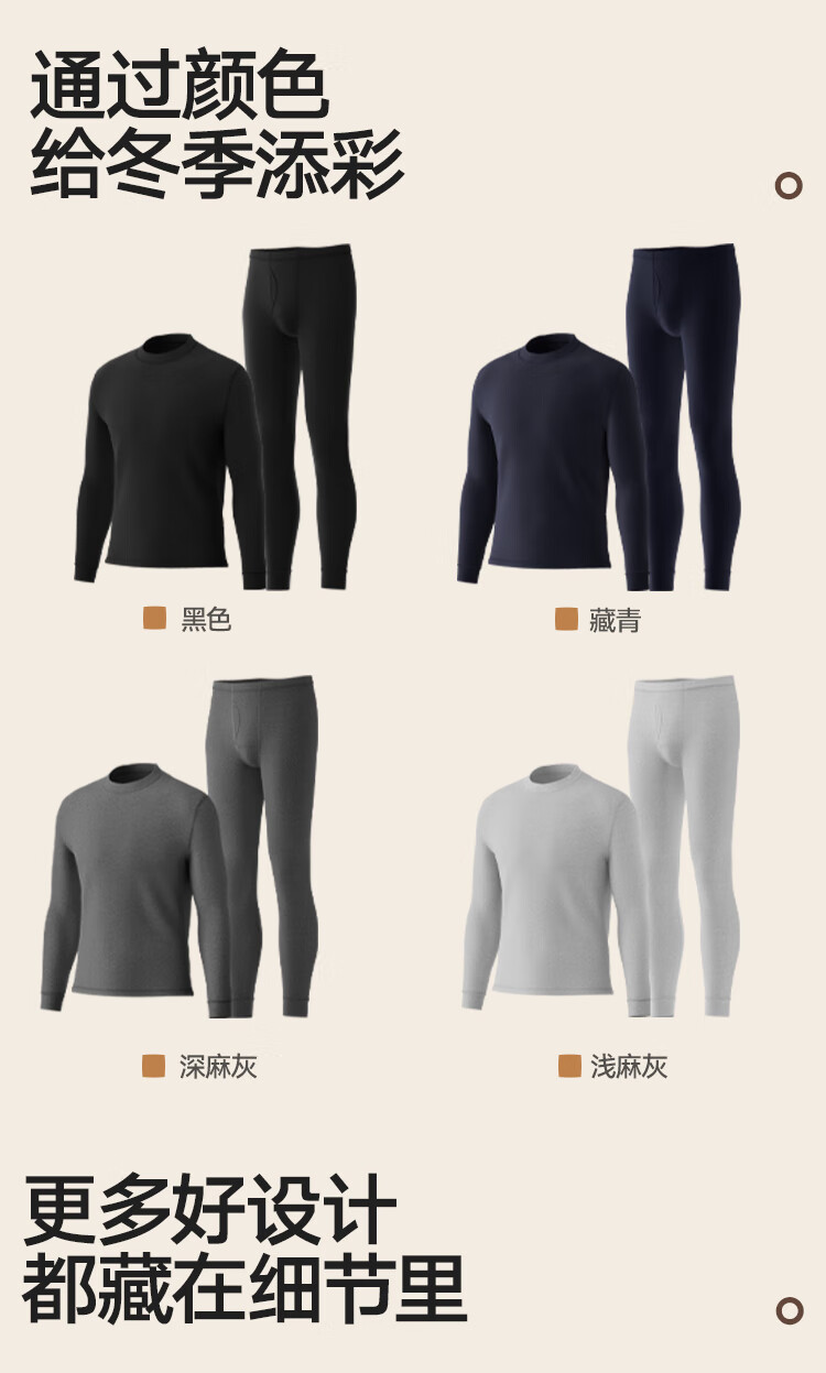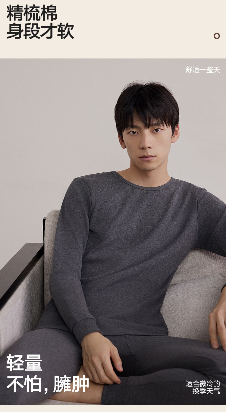 海澜之家男士秋衣秋裤男25新品纯棉210g10A抗菌防螨棉毛衫薄保暖内衣套装
