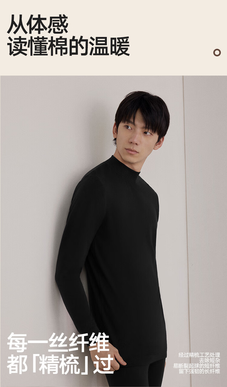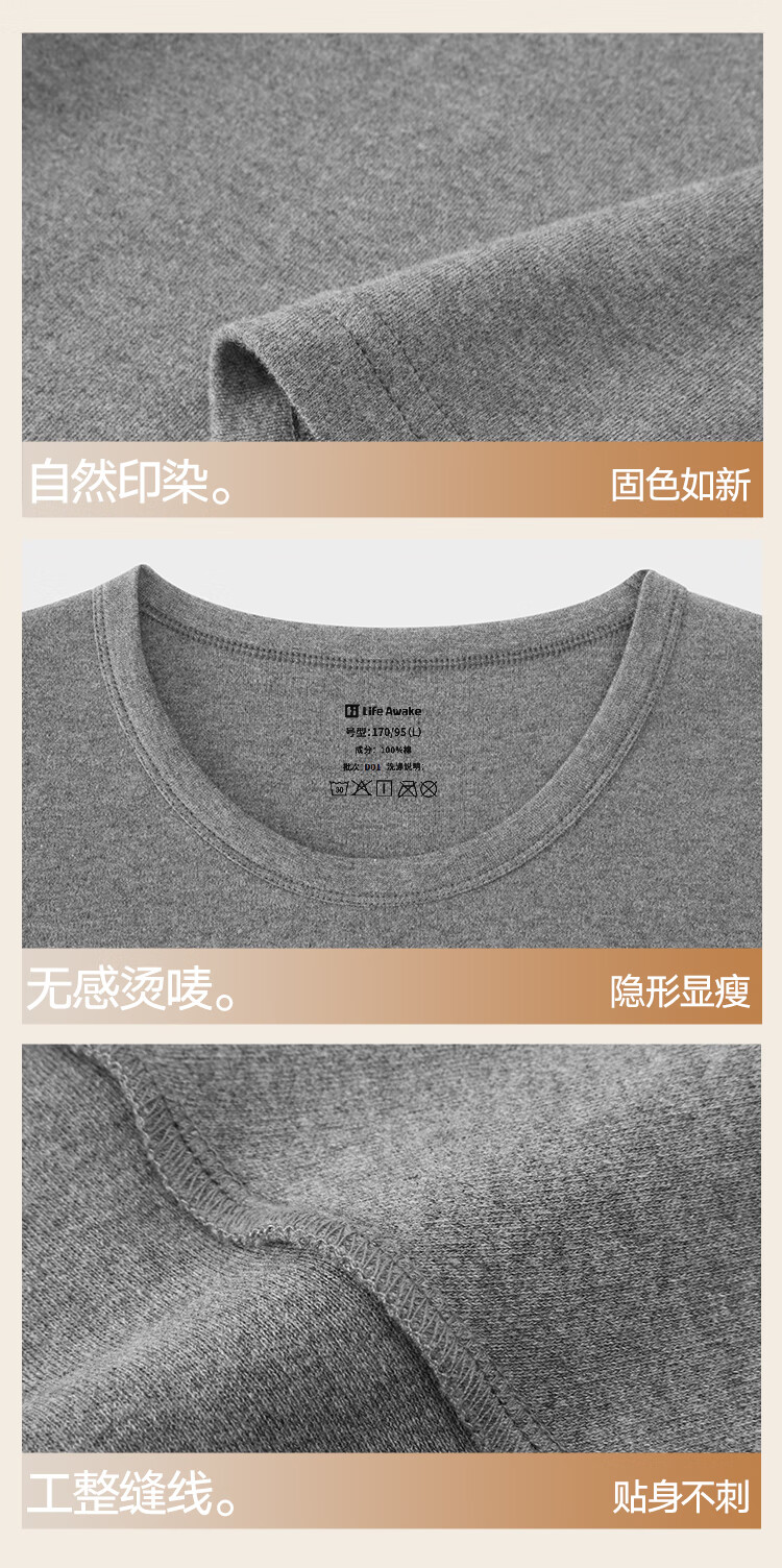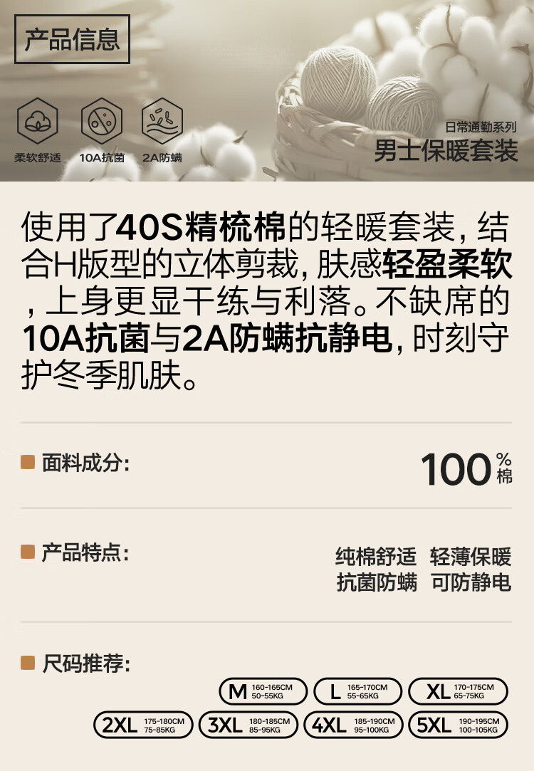 海澜之家男士秋衣秋裤男25新品纯棉210g10A抗菌防螨棉毛衫薄保暖内衣套装