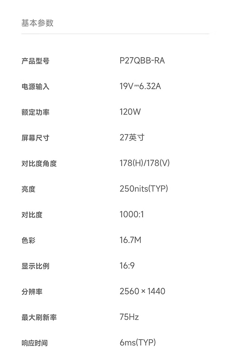 小米Redmi 27英寸2K显示器 A27Q旋转升降支架 IPS技术 Type-C反向充电 低蓝光爱眼 电脑办公显示器