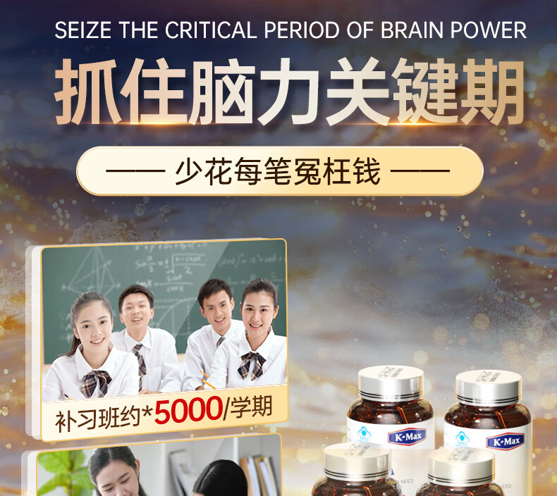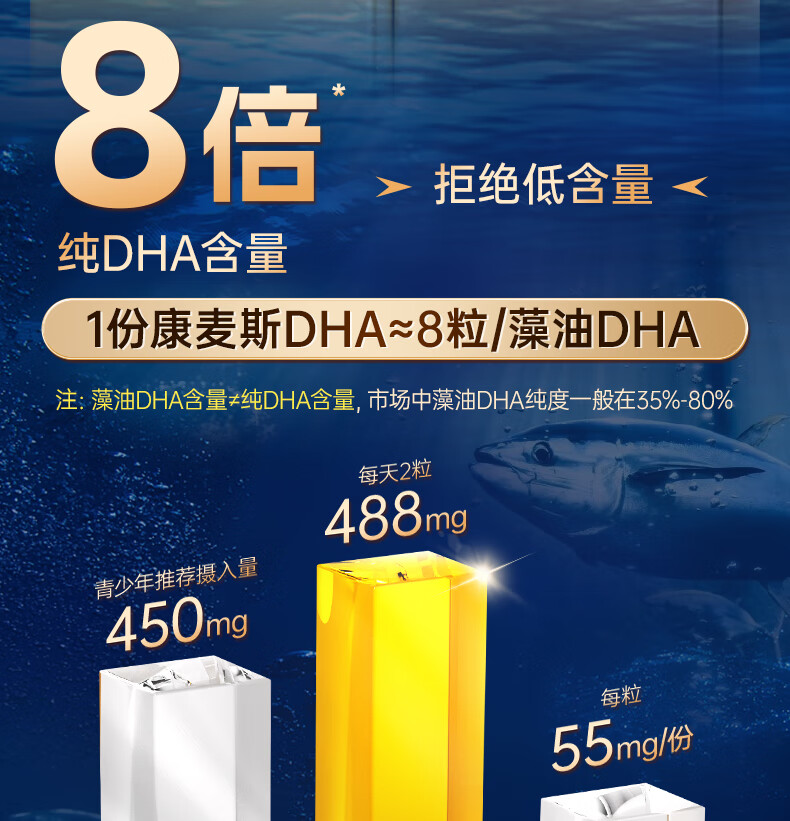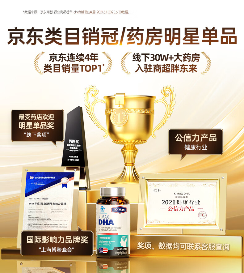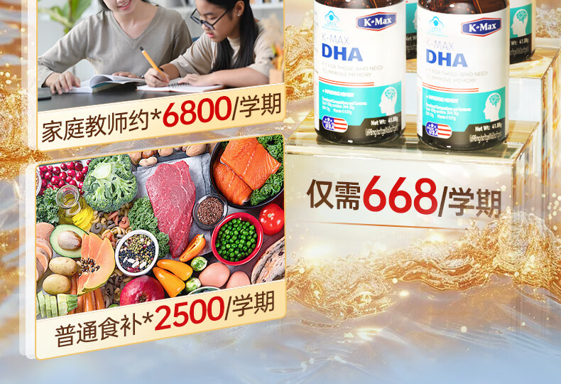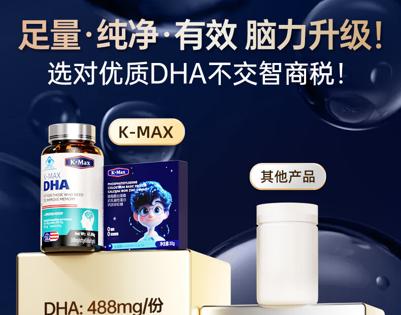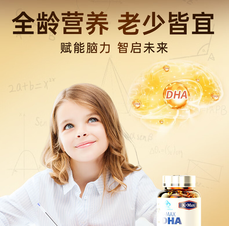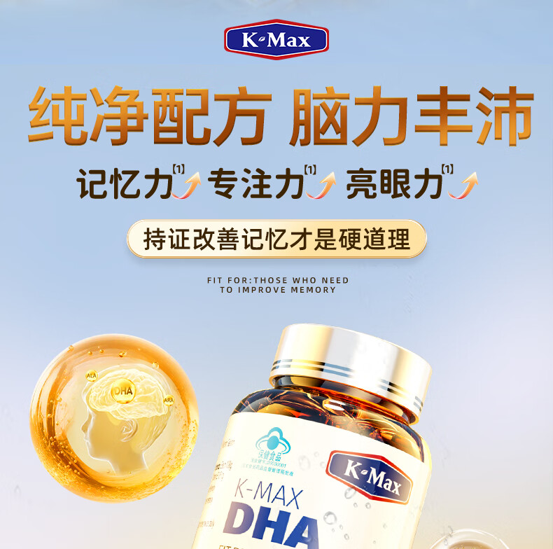 康麦斯(K-Max)dha学生补脑青少年增强记忆力增加提神高中生儿童专注鱼油鱼肝油 2瓶周期装【购2件立减168元】脑力素抗疲劳送藻油