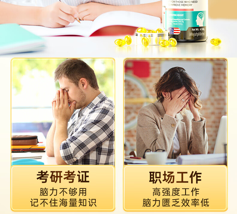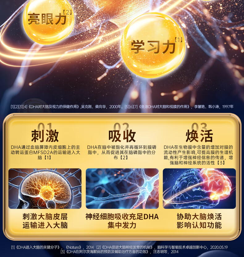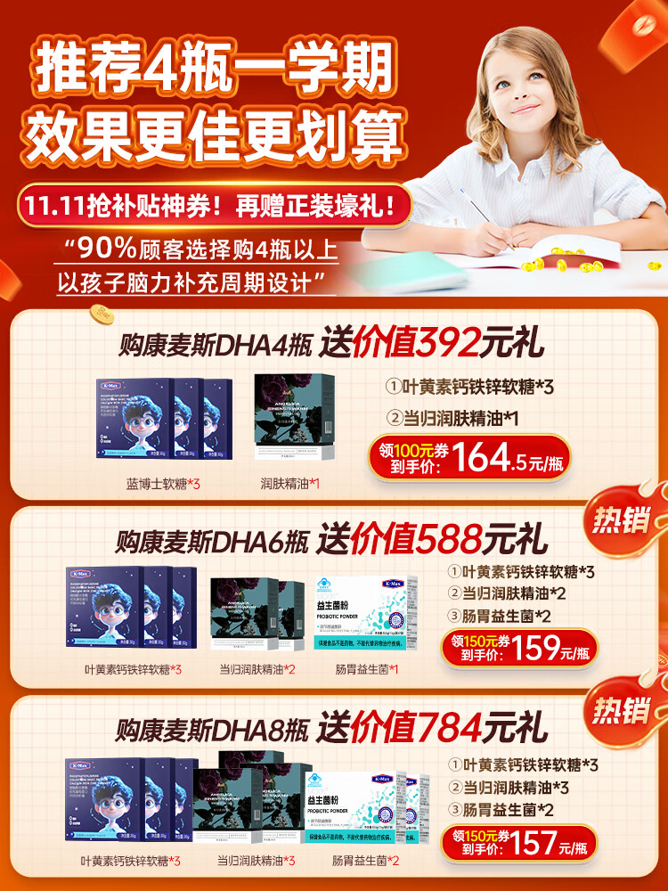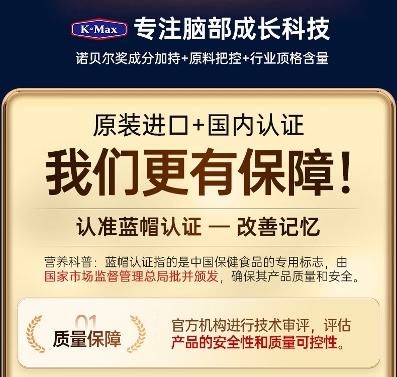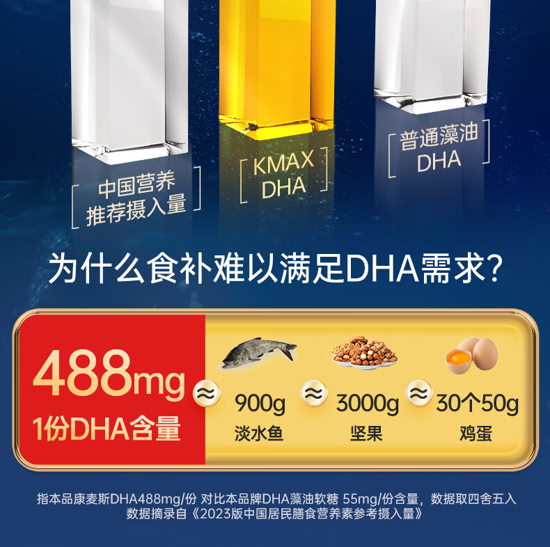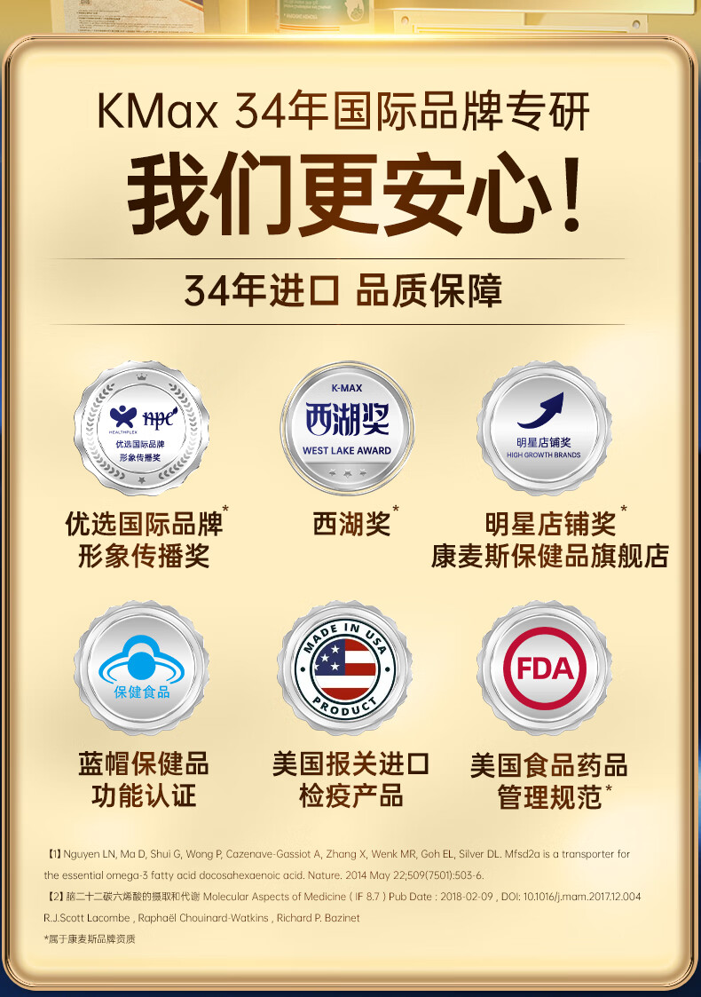 康麦斯(K-Max)dha学生补脑青少年增强记忆力增加提神高中生儿童专注鱼油鱼肝油 2瓶周期装【购2件立减168元】脑力素抗疲劳送藻油