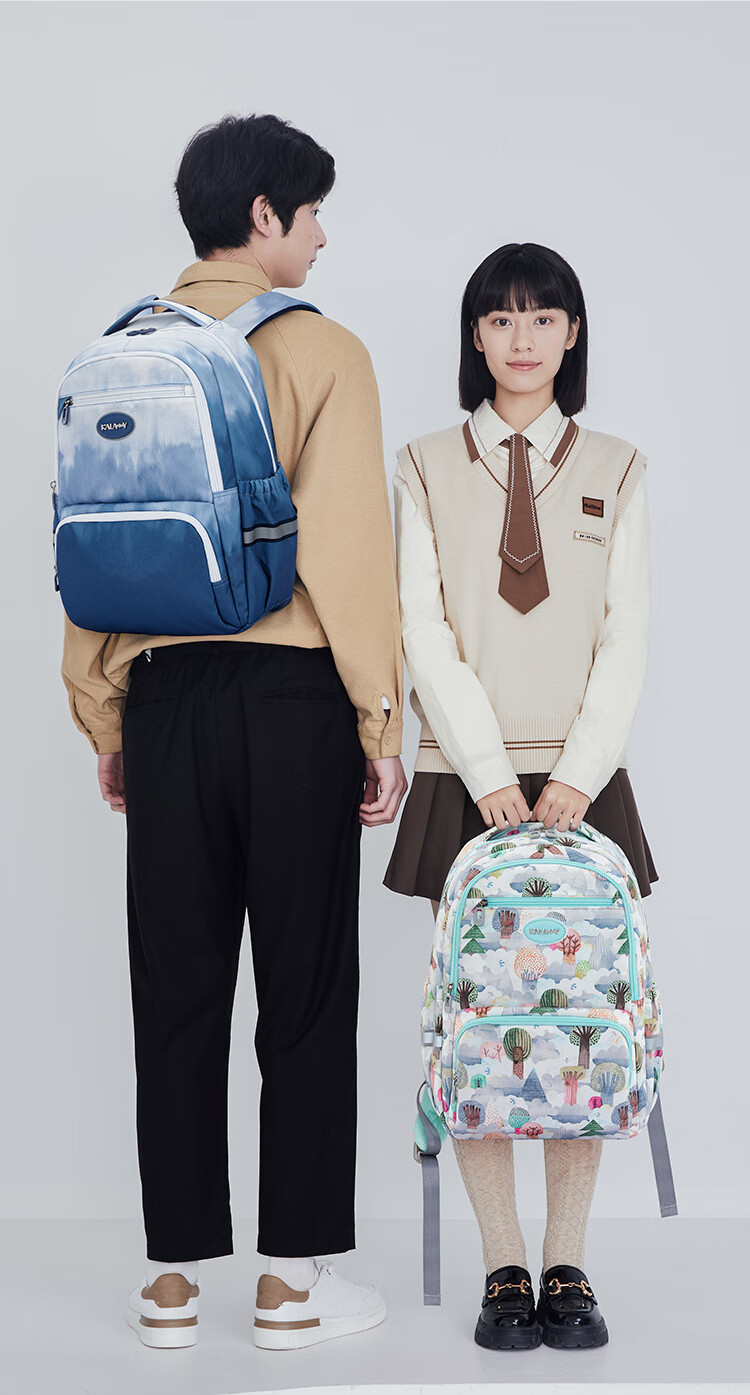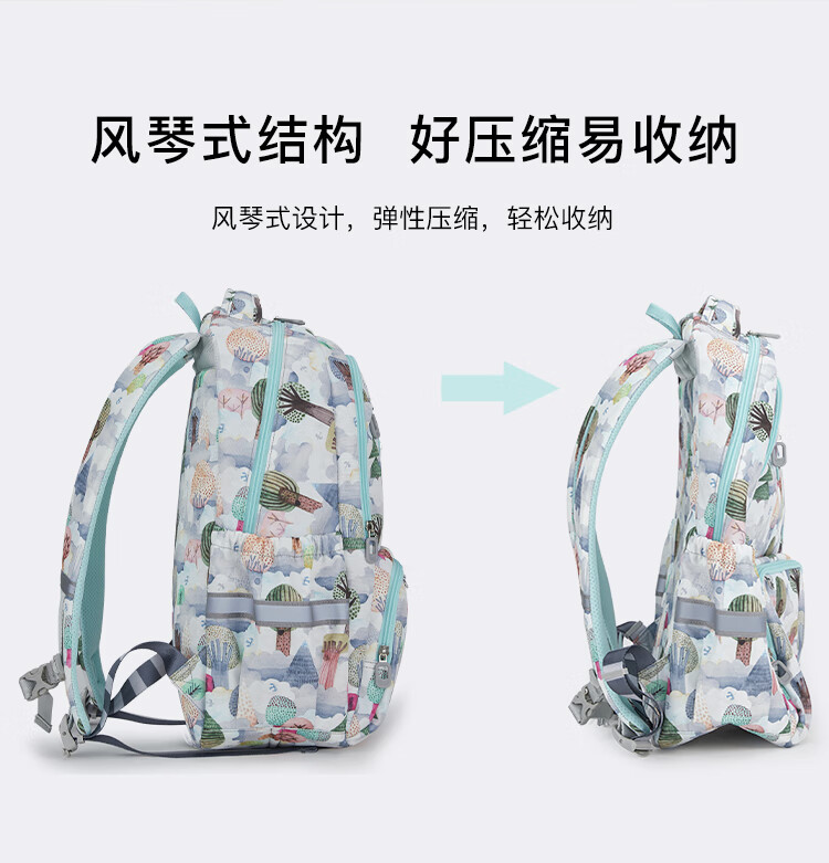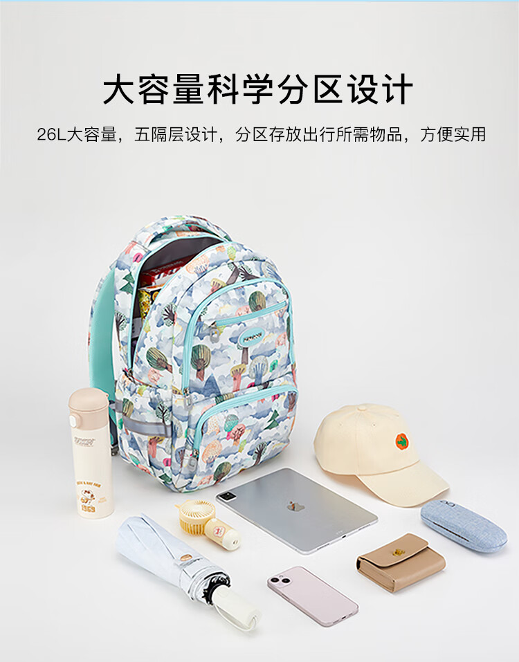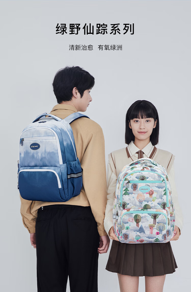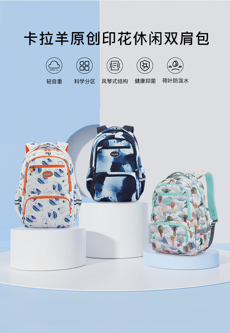 卡拉羊(KALA·Y)中学生休闲书包大容量游学旅行双肩包高颜值印花男女背包 薰衣草紫