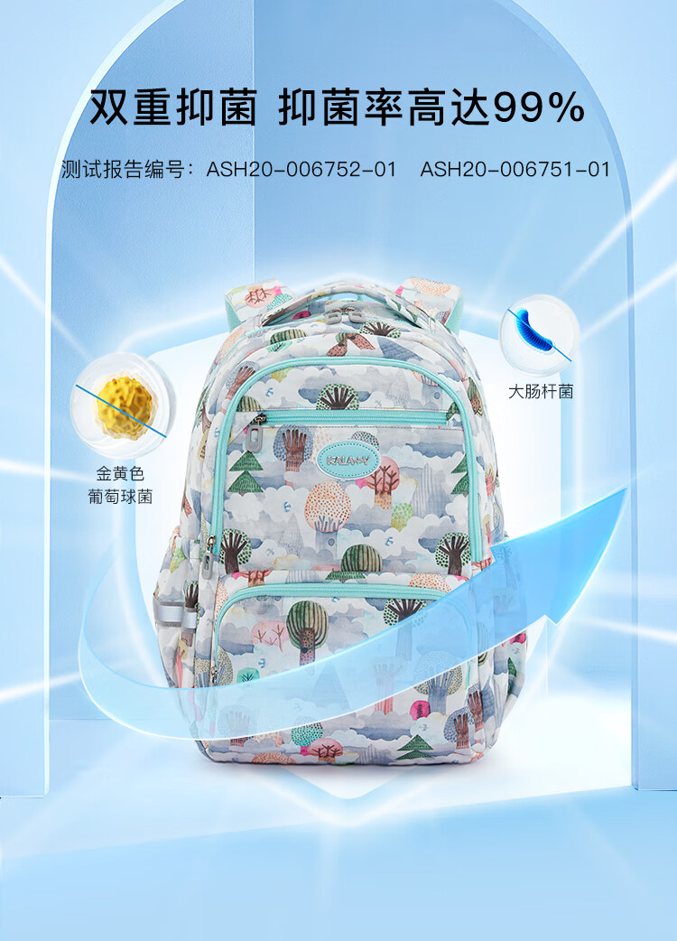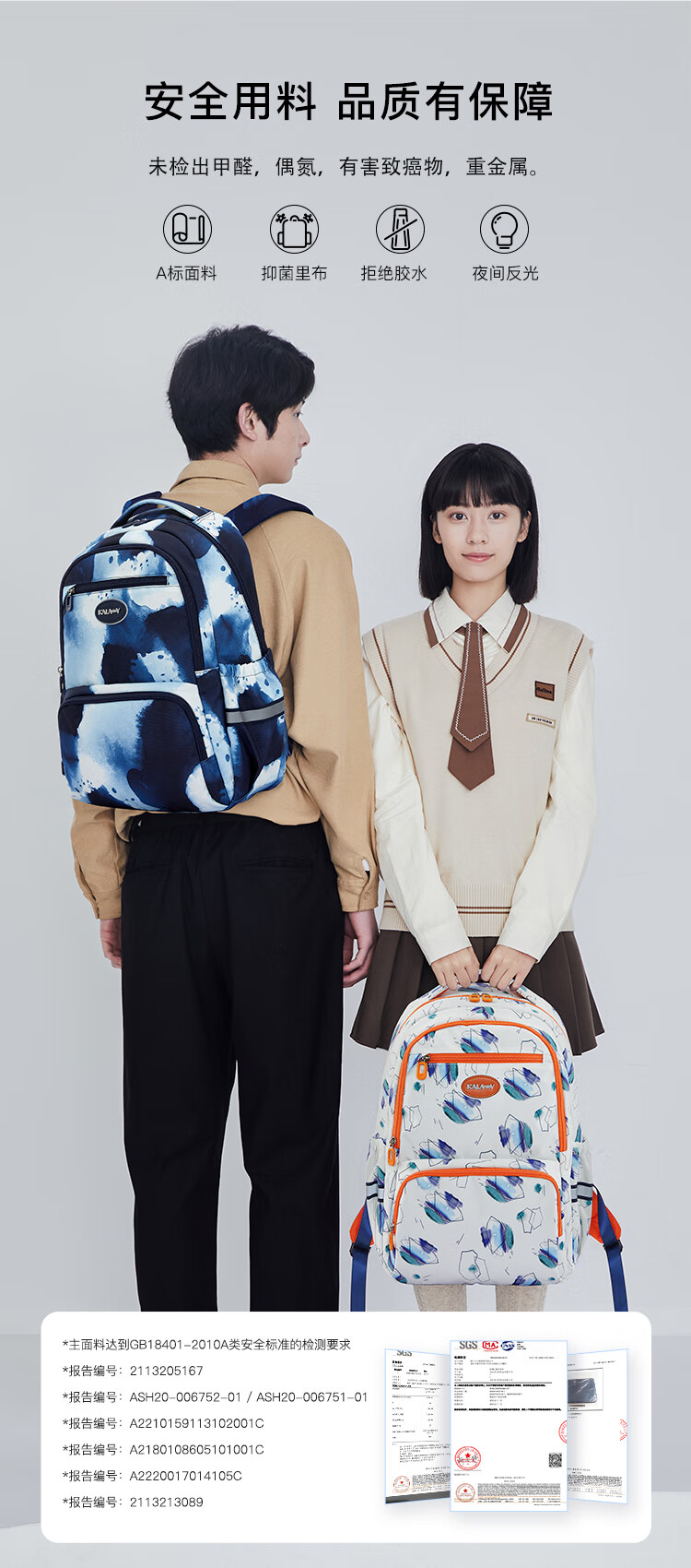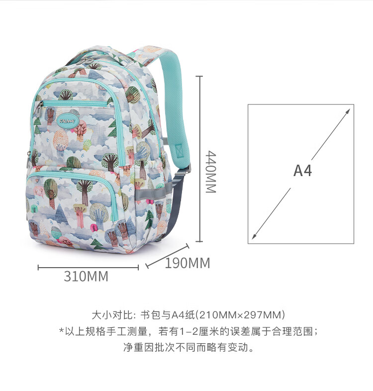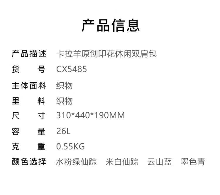 卡拉羊(KALA·Y)中学生休闲书包大容量游学旅行双肩包高颜值印花男女背包 薰衣草紫