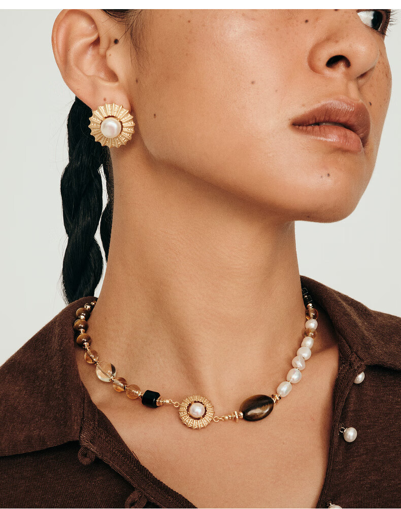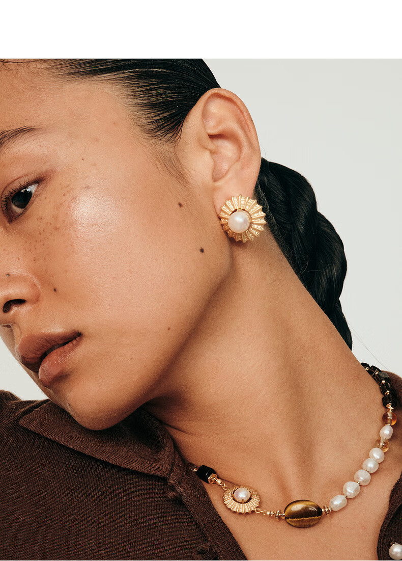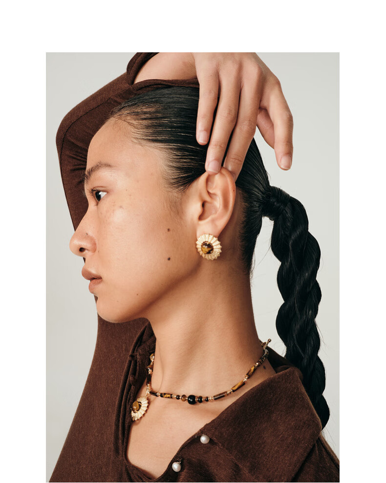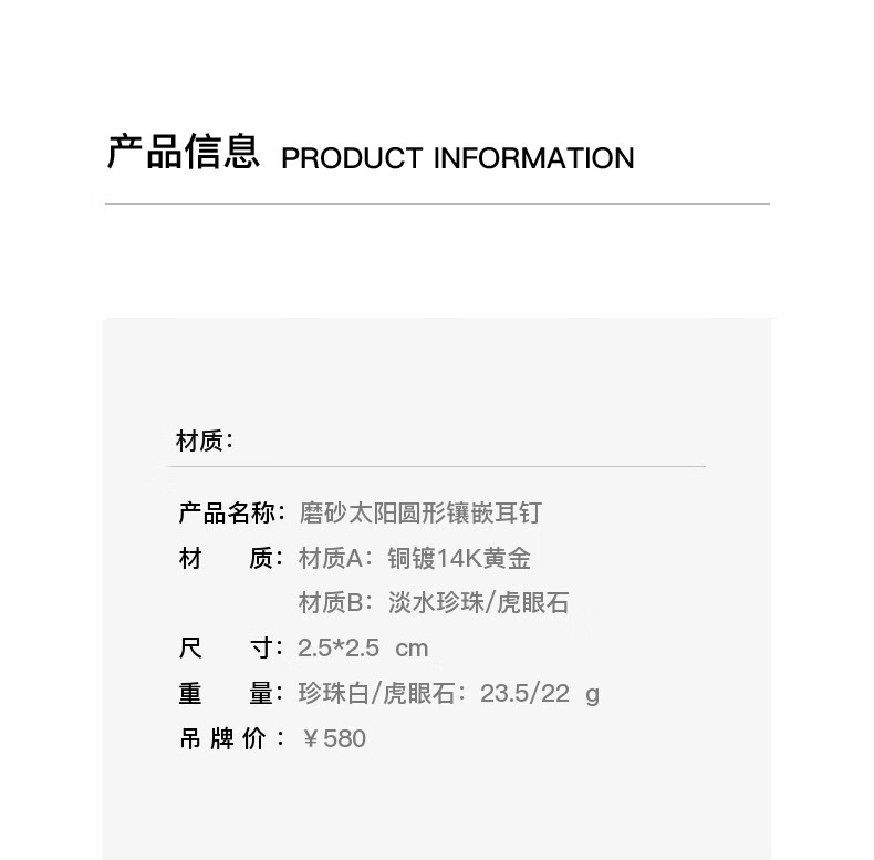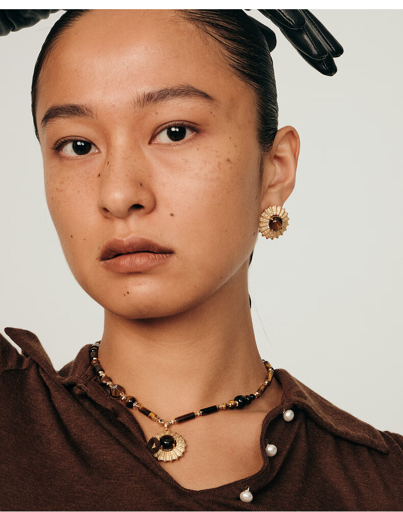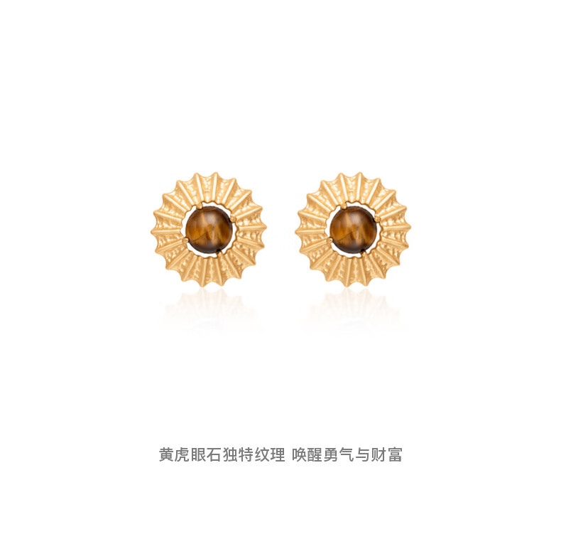 lost in echo送女友2025早秋新款异域独特复古太阳珍珠耳钉耳饰 虎眼石 2个