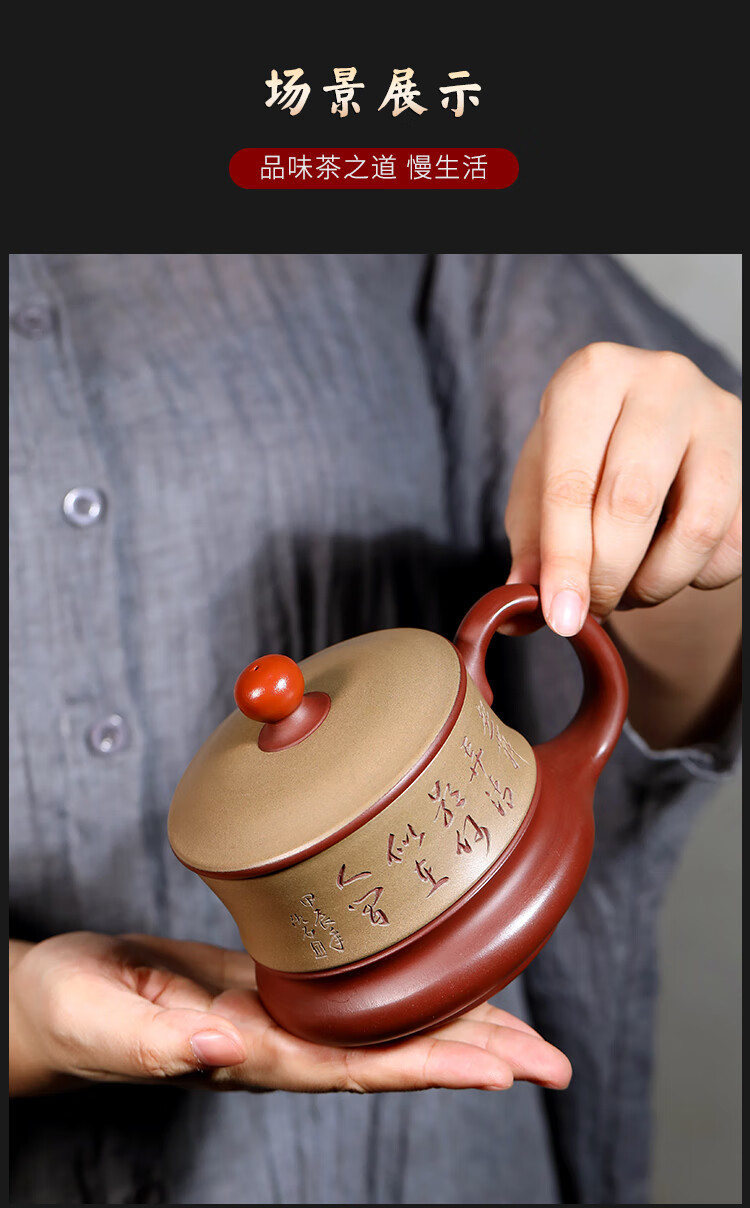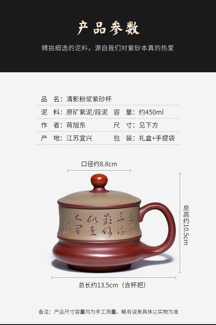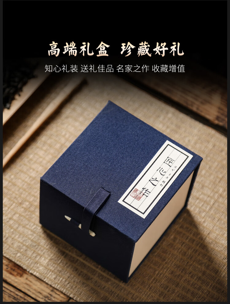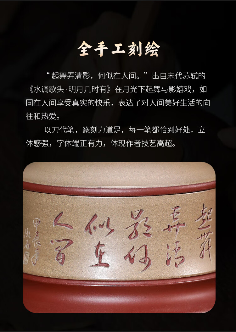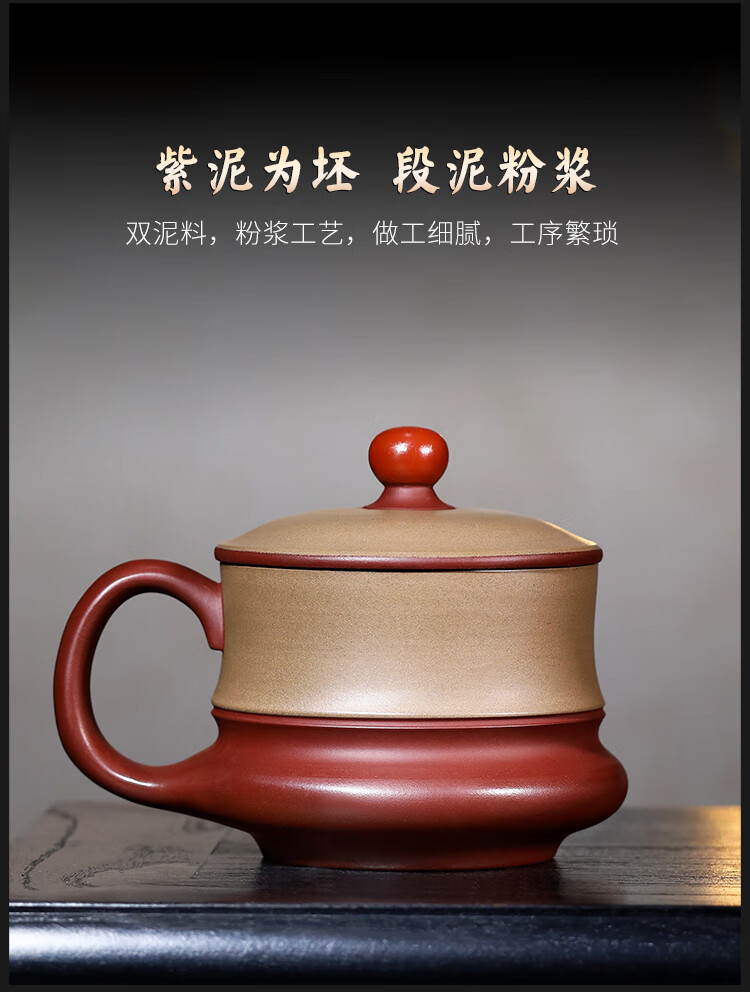 千寿堂紫砂杯宜兴原矿紫泥手工茶杯段泥粉浆手工刻字礼盒送礼清影紫砂杯