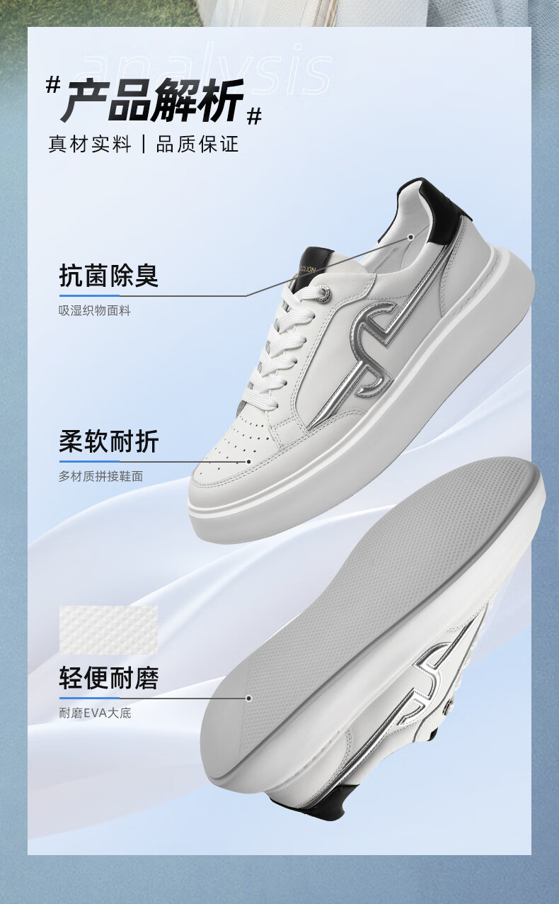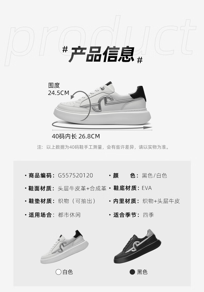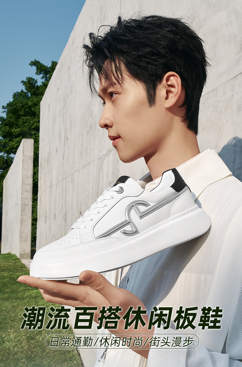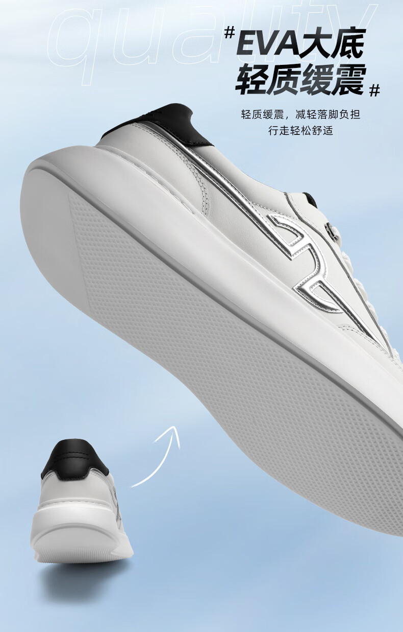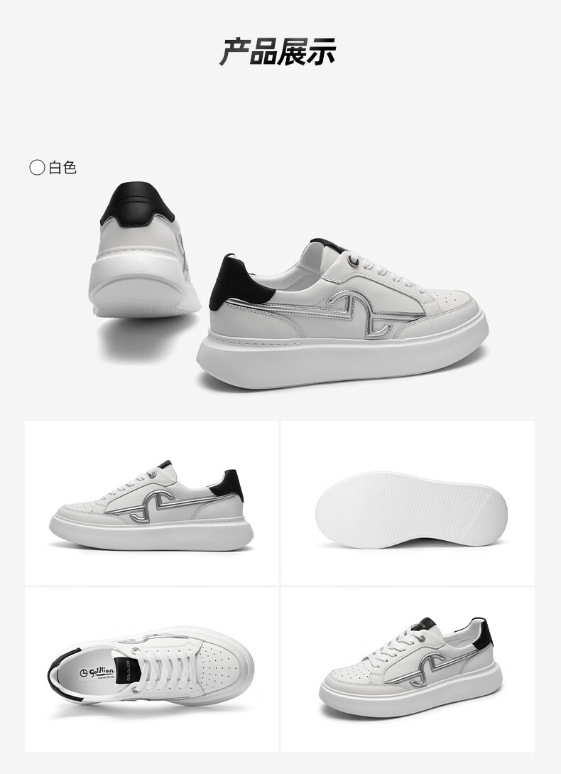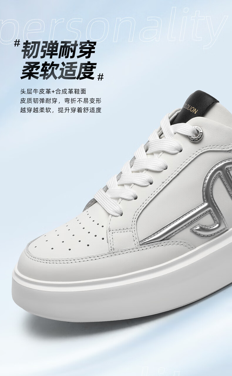 金利来(Goldlion)男鞋百搭板鞋男25年秋季厚底增高休闲鞋男皮鞋男户外运动鞋小白鞋 白色 41