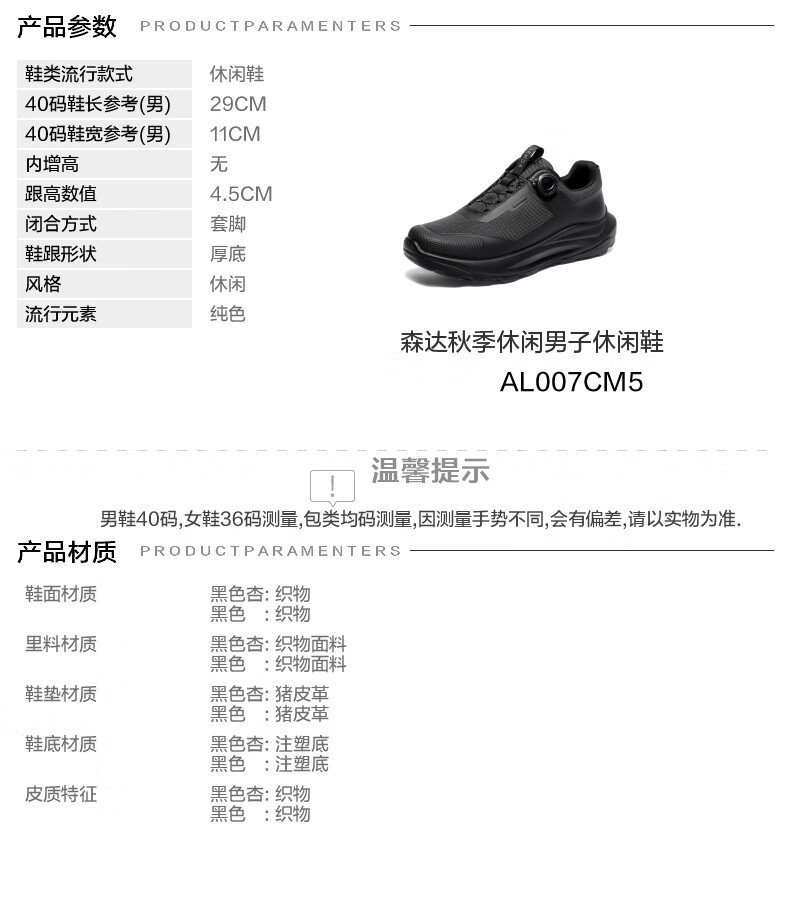 森达健步鞋男2025秋季新款商场同款运动风厚底休闲鞋AL007CM5 黑色 40