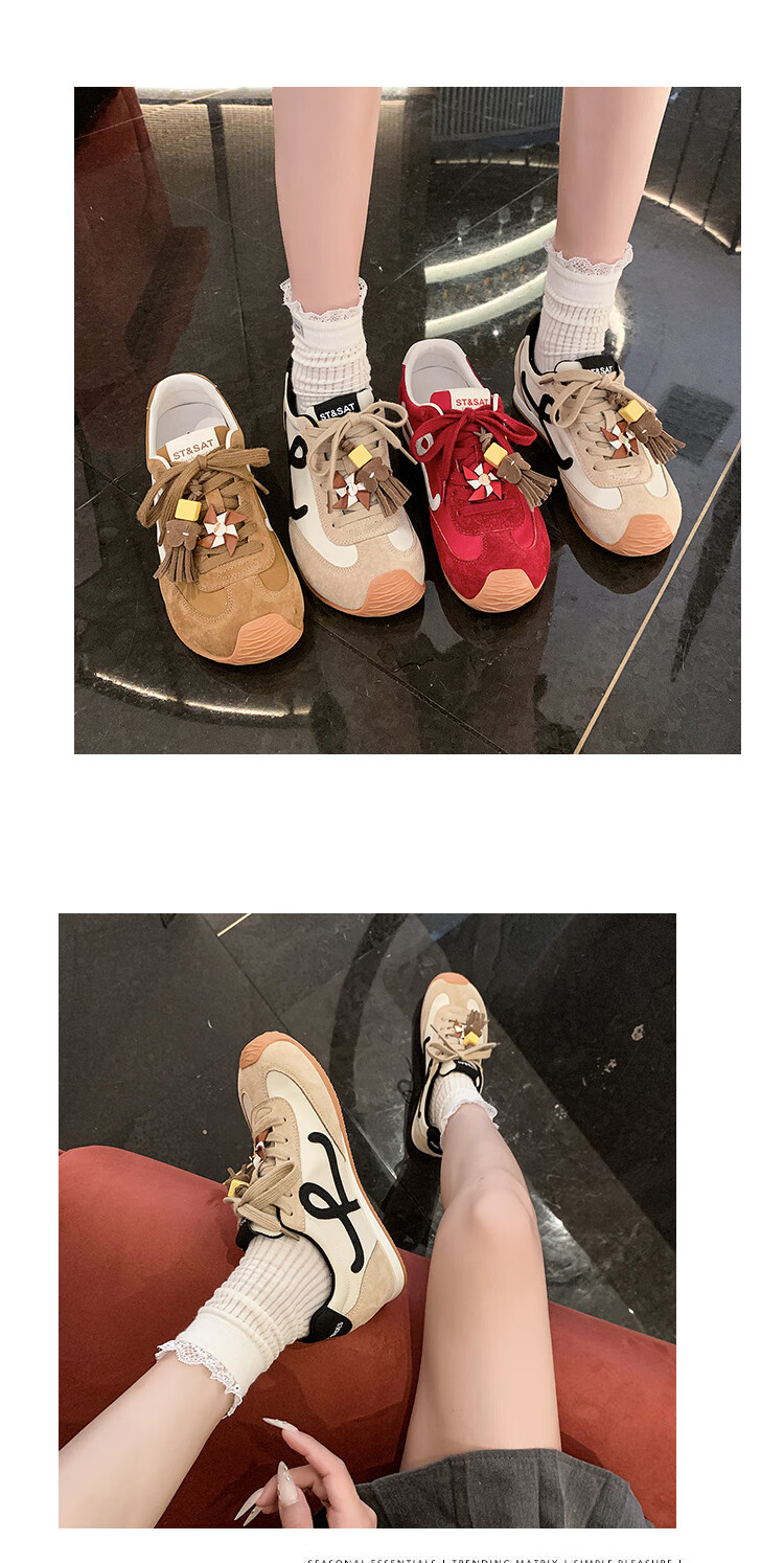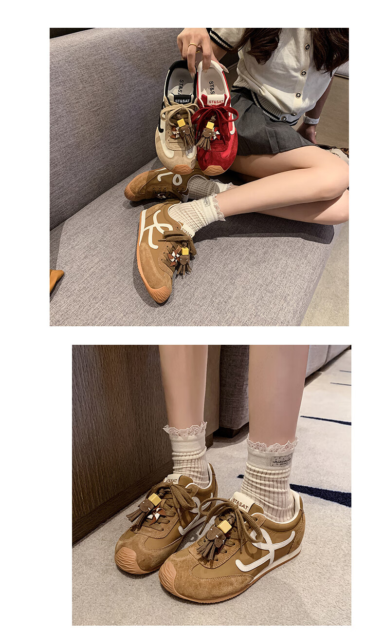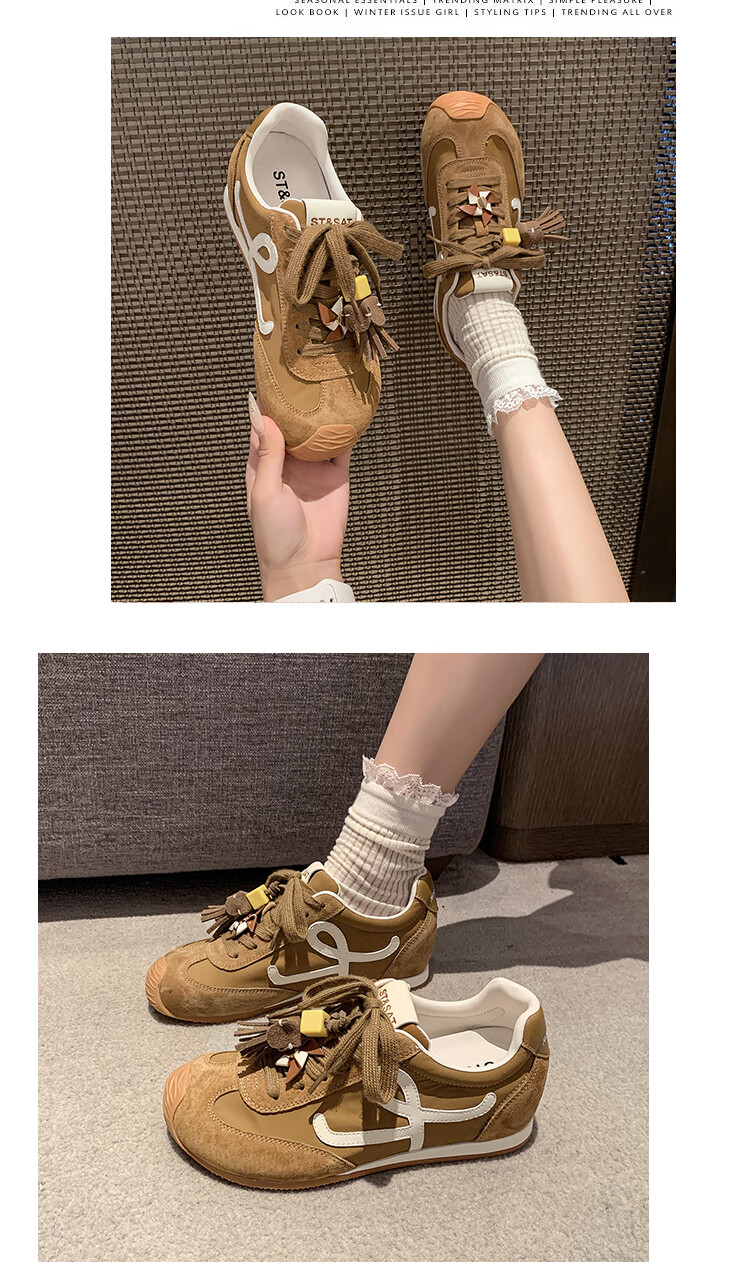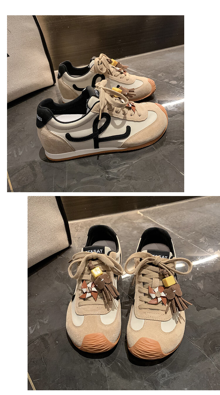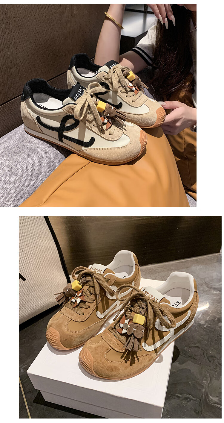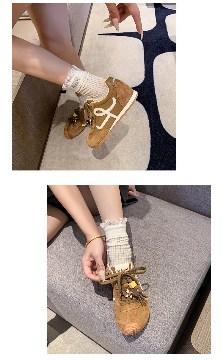 星期六(St&Sat)复古百搭厚底德训鞋女休闲运动鞋内增高流苏轻奢板鞋JXSSD3112C4Q 卡其色 35