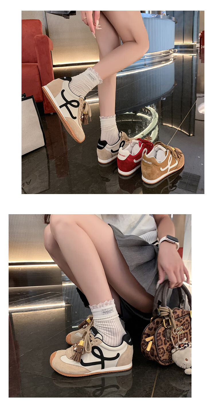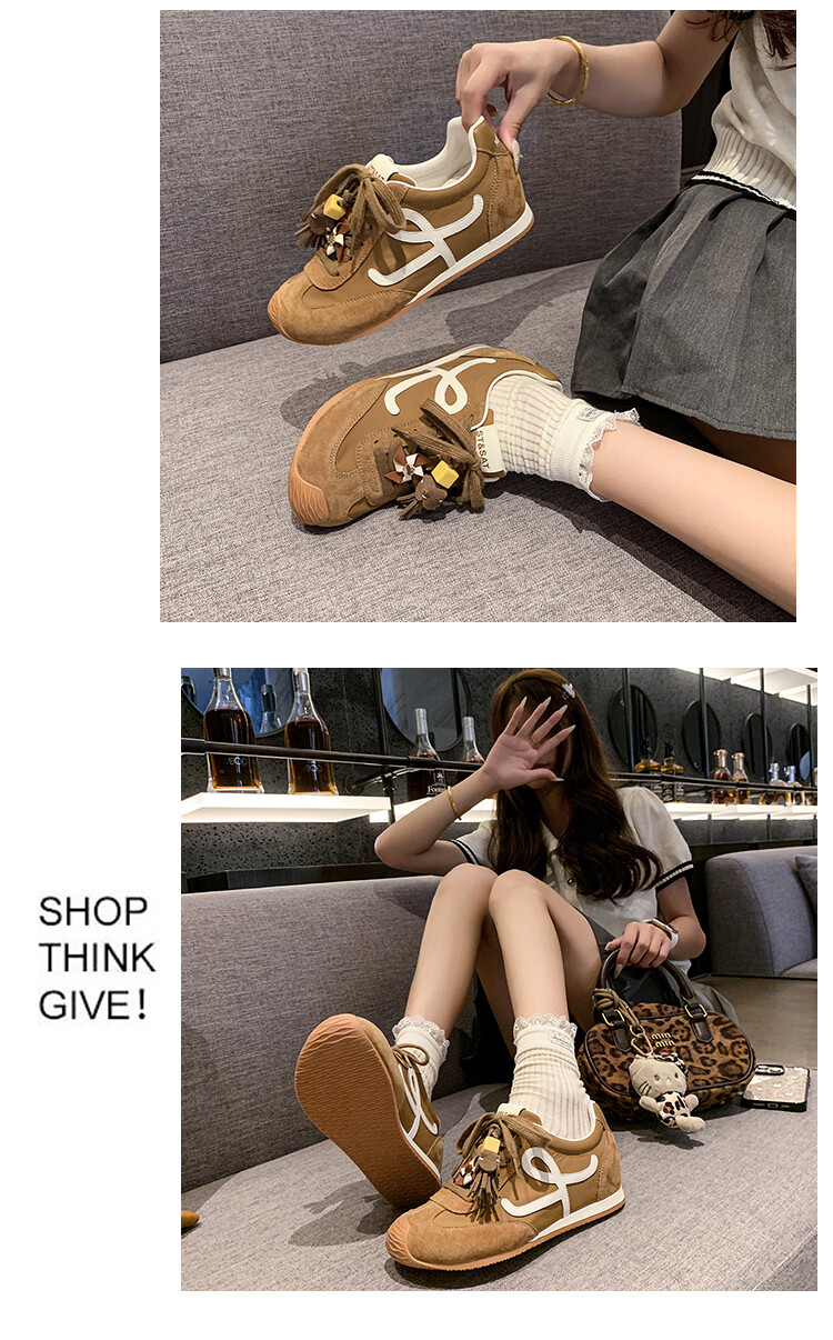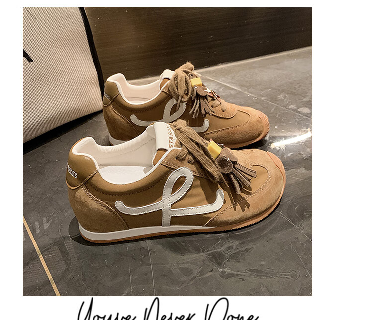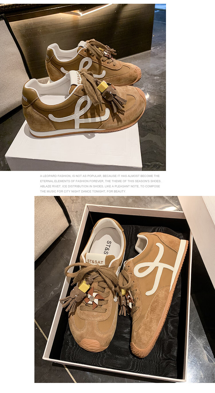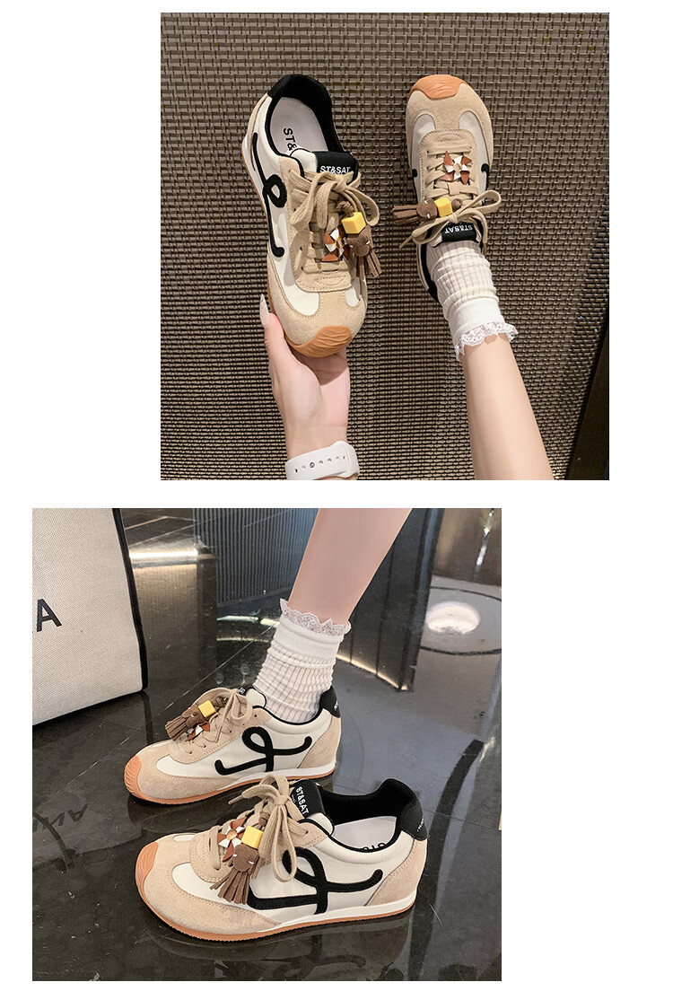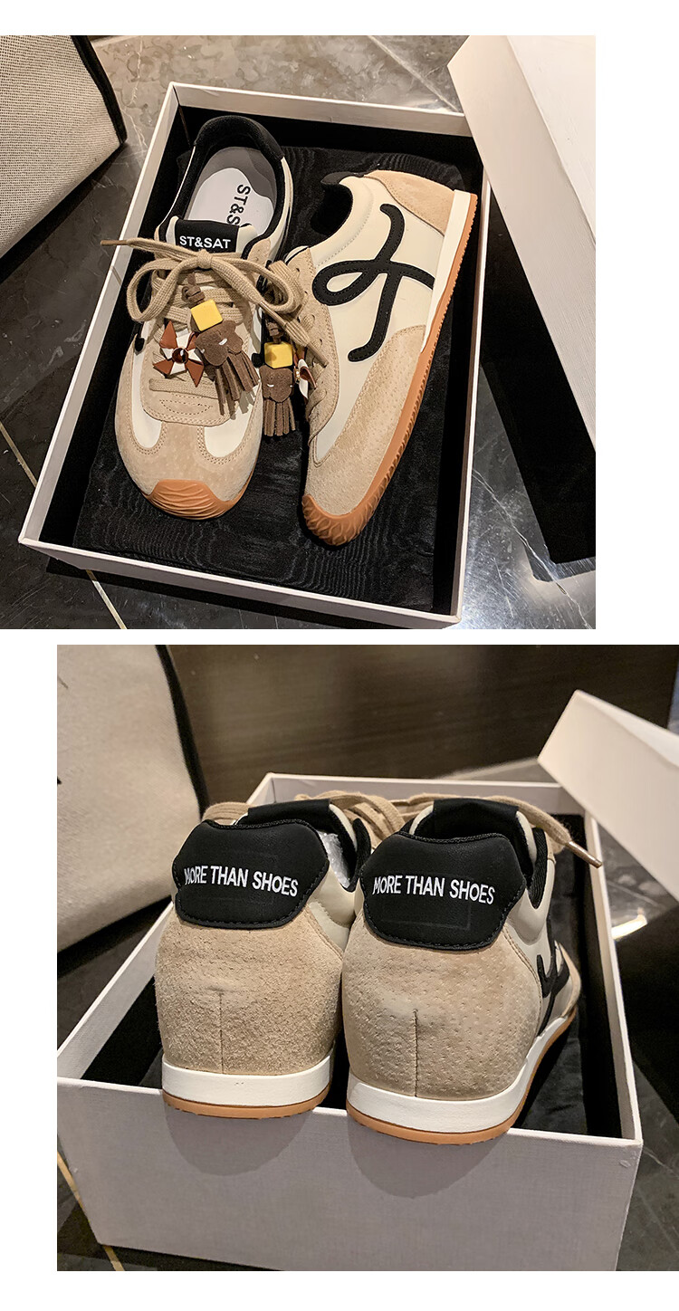 星期六(St&Sat)复古百搭厚底德训鞋女休闲运动鞋内增高流苏轻奢板鞋JXSSD3112C4Q 卡其色 35