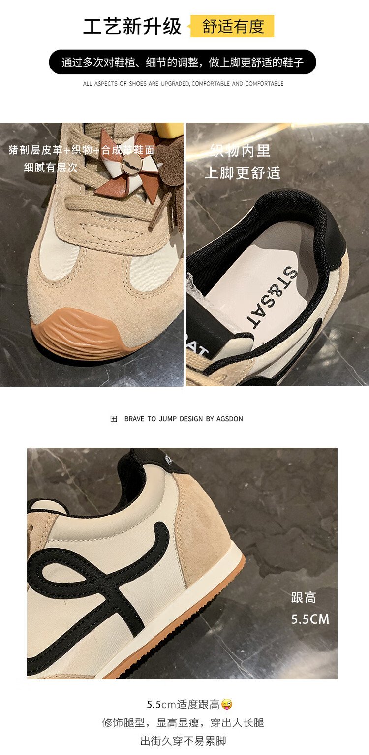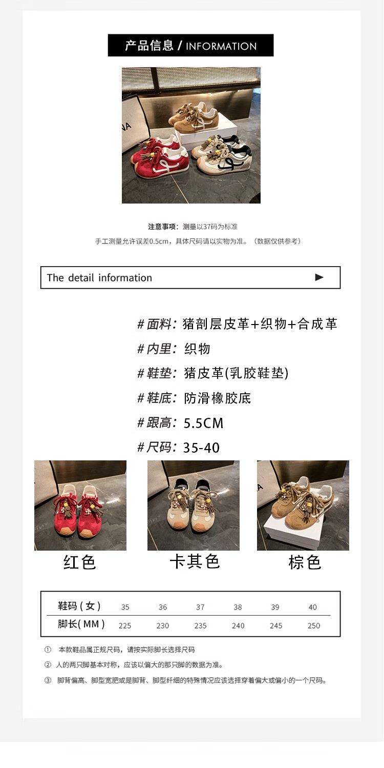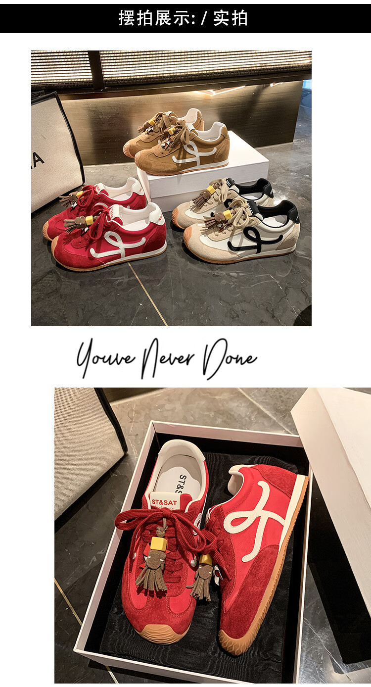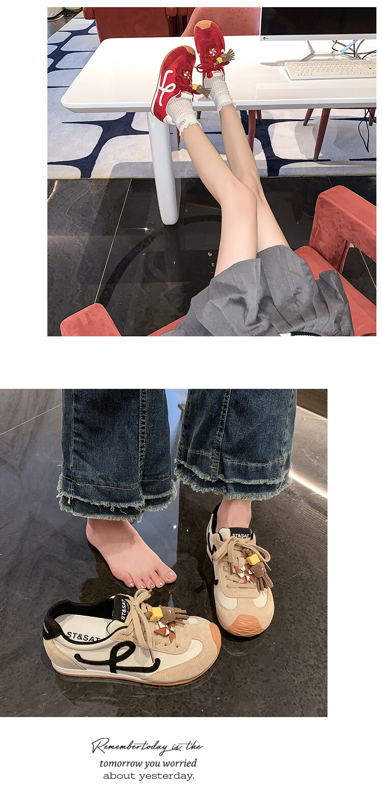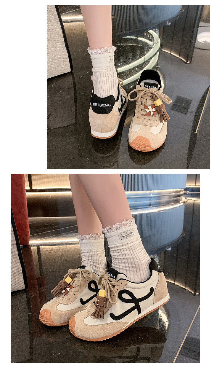 星期六(St&Sat)复古百搭厚底德训鞋女休闲运动鞋内增高流苏轻奢板鞋JXSSD3112C4Q 卡其色 35