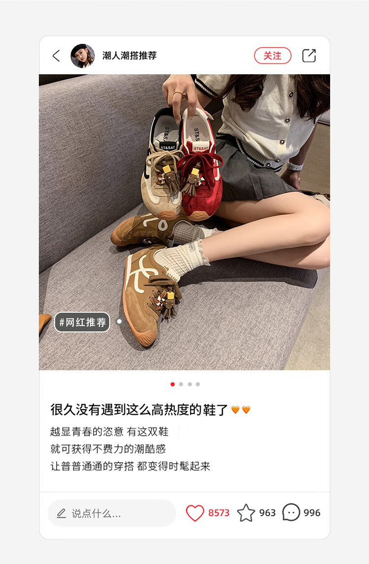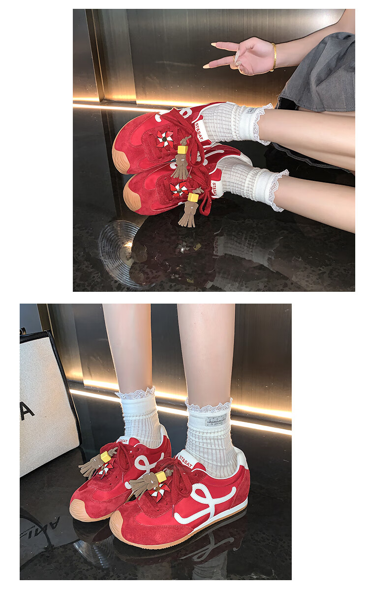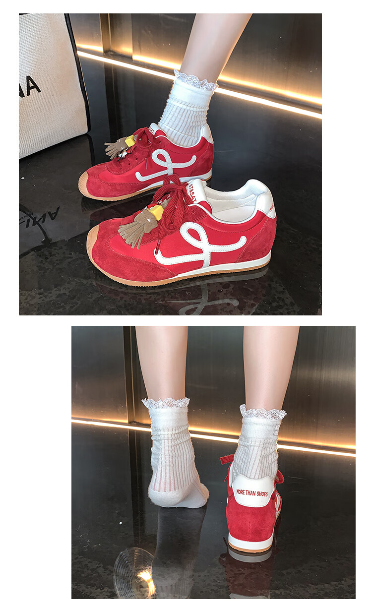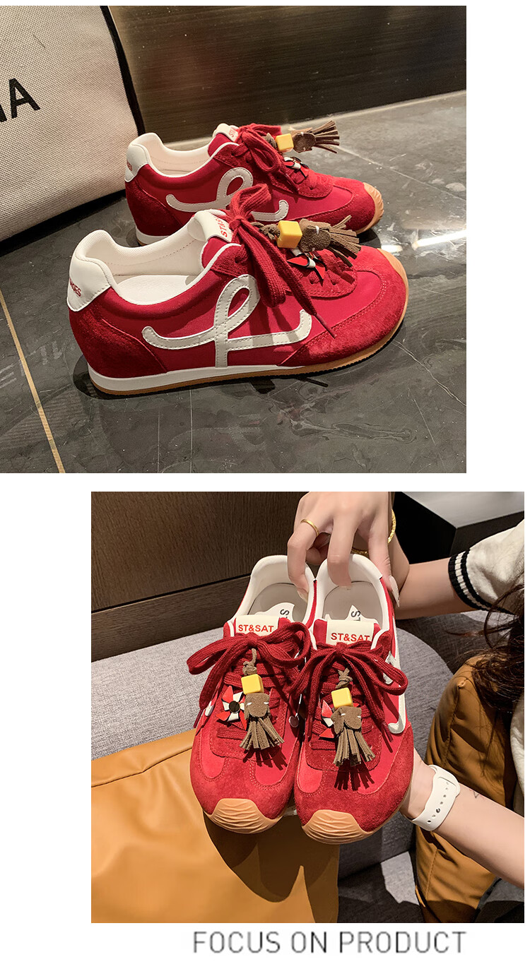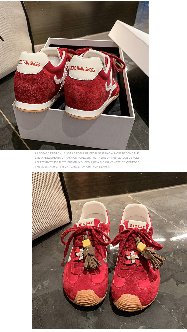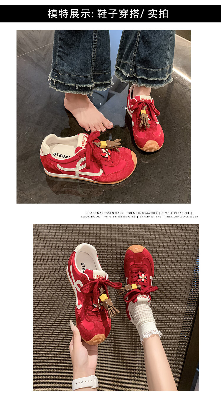 星期六(St&Sat)复古百搭厚底德训鞋女休闲运动鞋内增高流苏轻奢板鞋JXSSD3112C4Q 卡其色 35